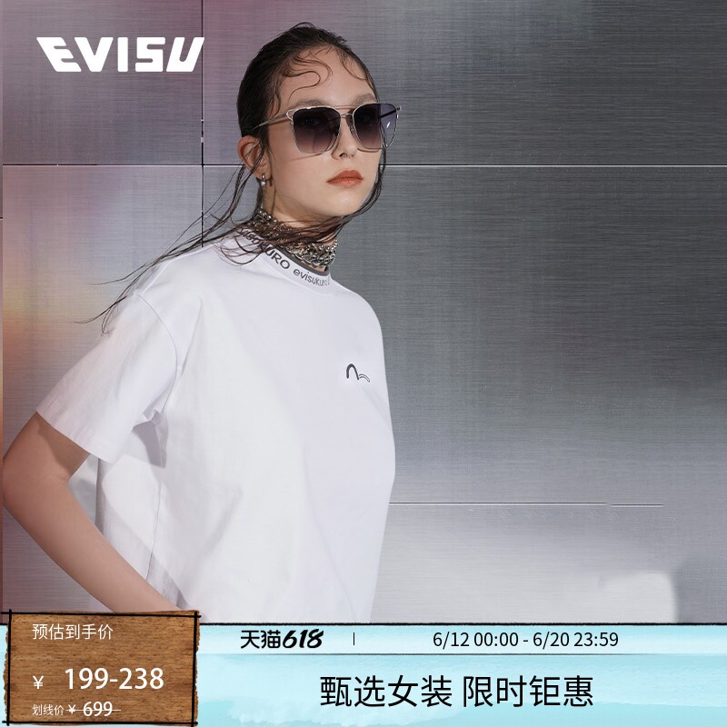 Женская повседневная модная свободная футболка с короткими рукавами EVISUKURO с буквенным принтом 2ESGNW2TS632DPCT