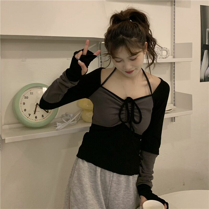 Базовая осенняя дизайнерская сексуальная футболка, большой размер, по фигуре, в корейском стиле, тренд сезона