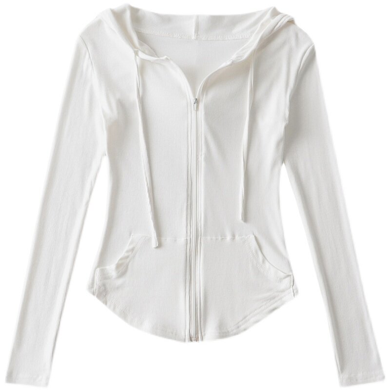 Весенний приталенный лонгслив с капюшоном, кардиган с молнией, футболка, европейский стиль