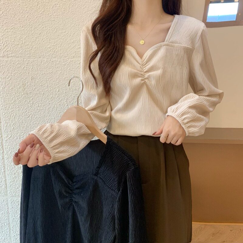 Осенняя рубашка, дизайнерский лонгслив, большой размер, французский стиль, V-образный вырез, по фигуре