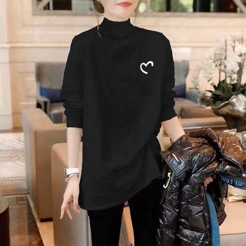 Черный цветной шерстяной базовый приятный телу осенний демисезонный хлопковый длинный утепленный лонгслив, высокий воротник, средней длины