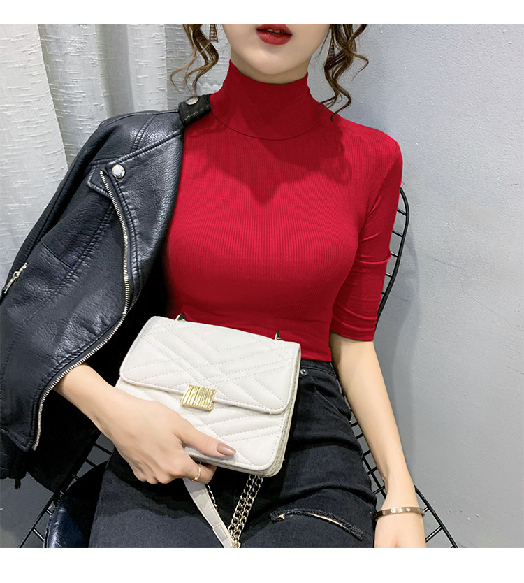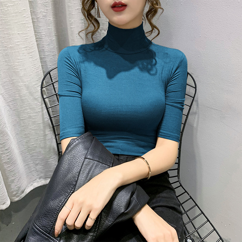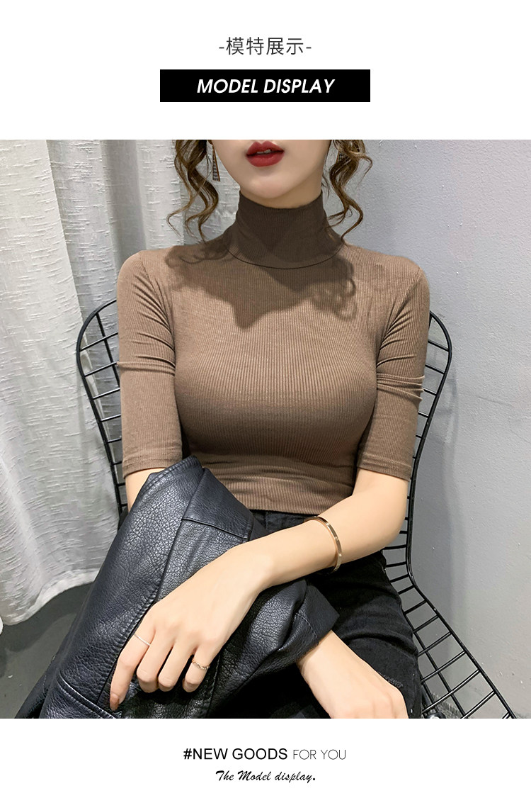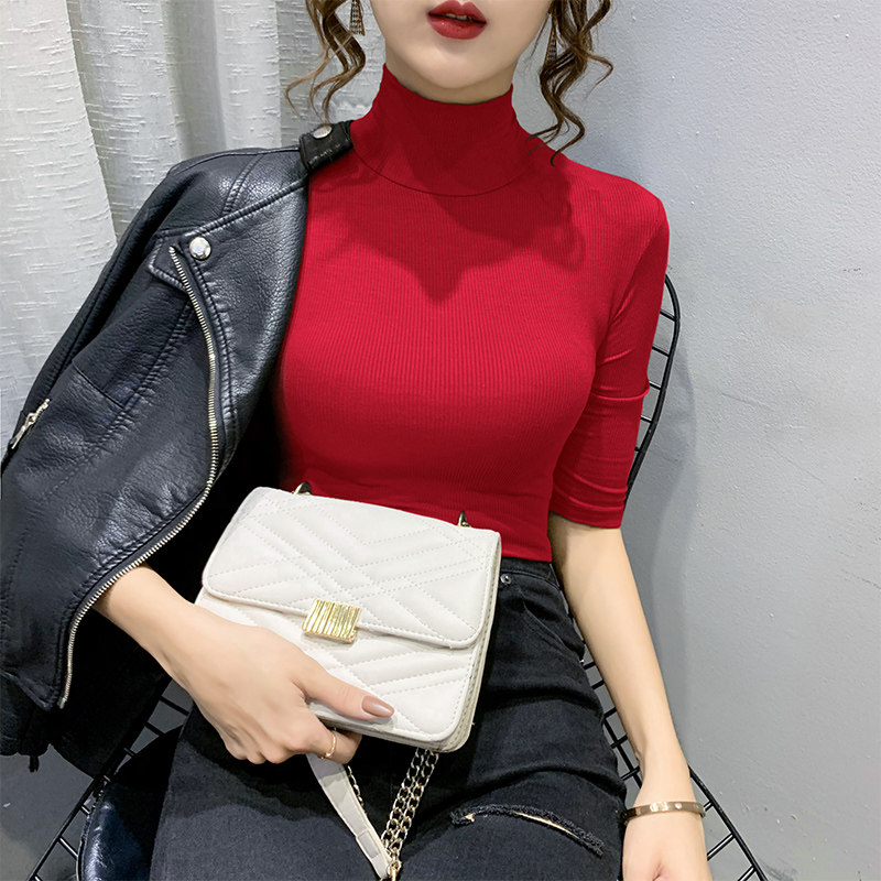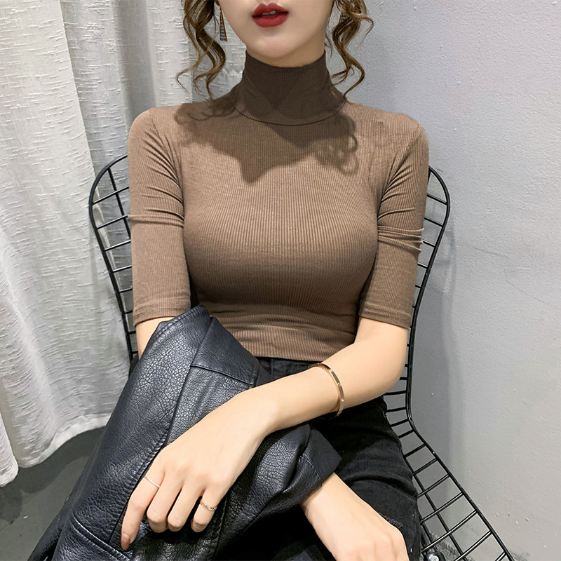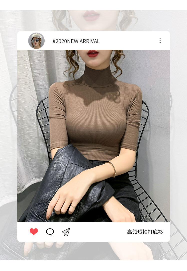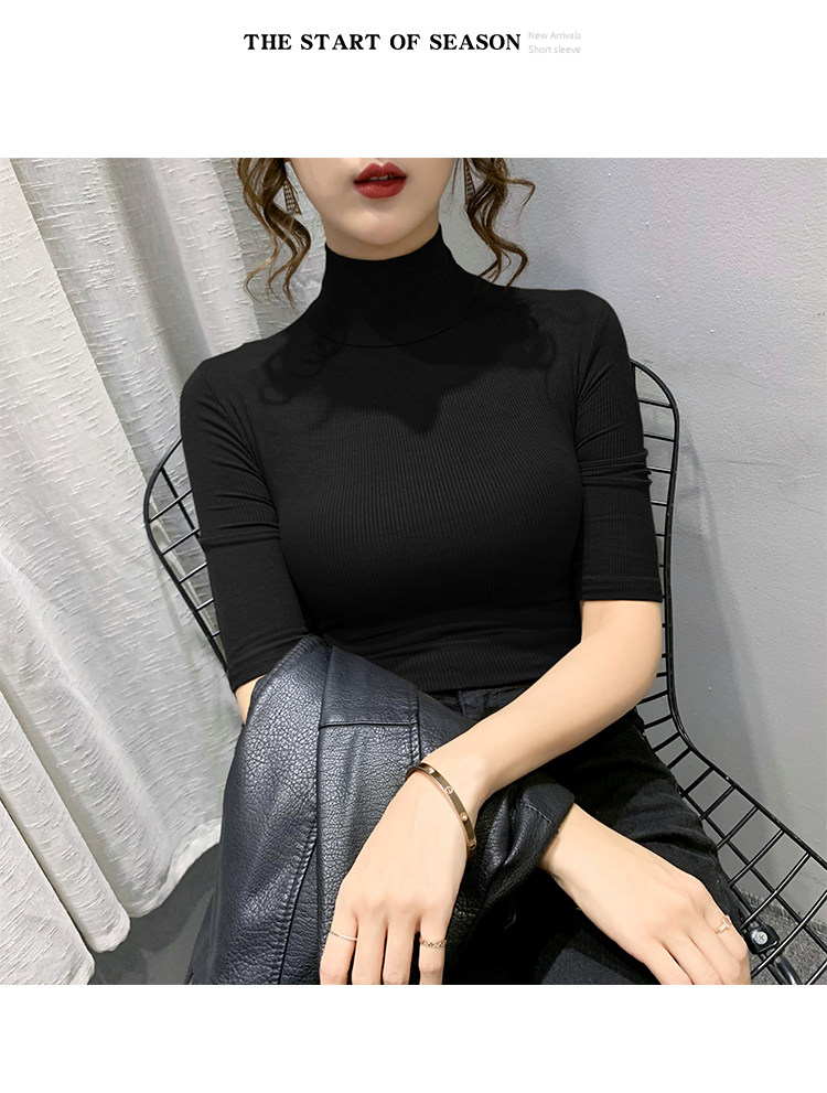 Весенняя осенняя базовая приятная телу эластичная футболка с коротким рукавом, 2025 года, популярно в интернете, высокий воротник, в обтяжку