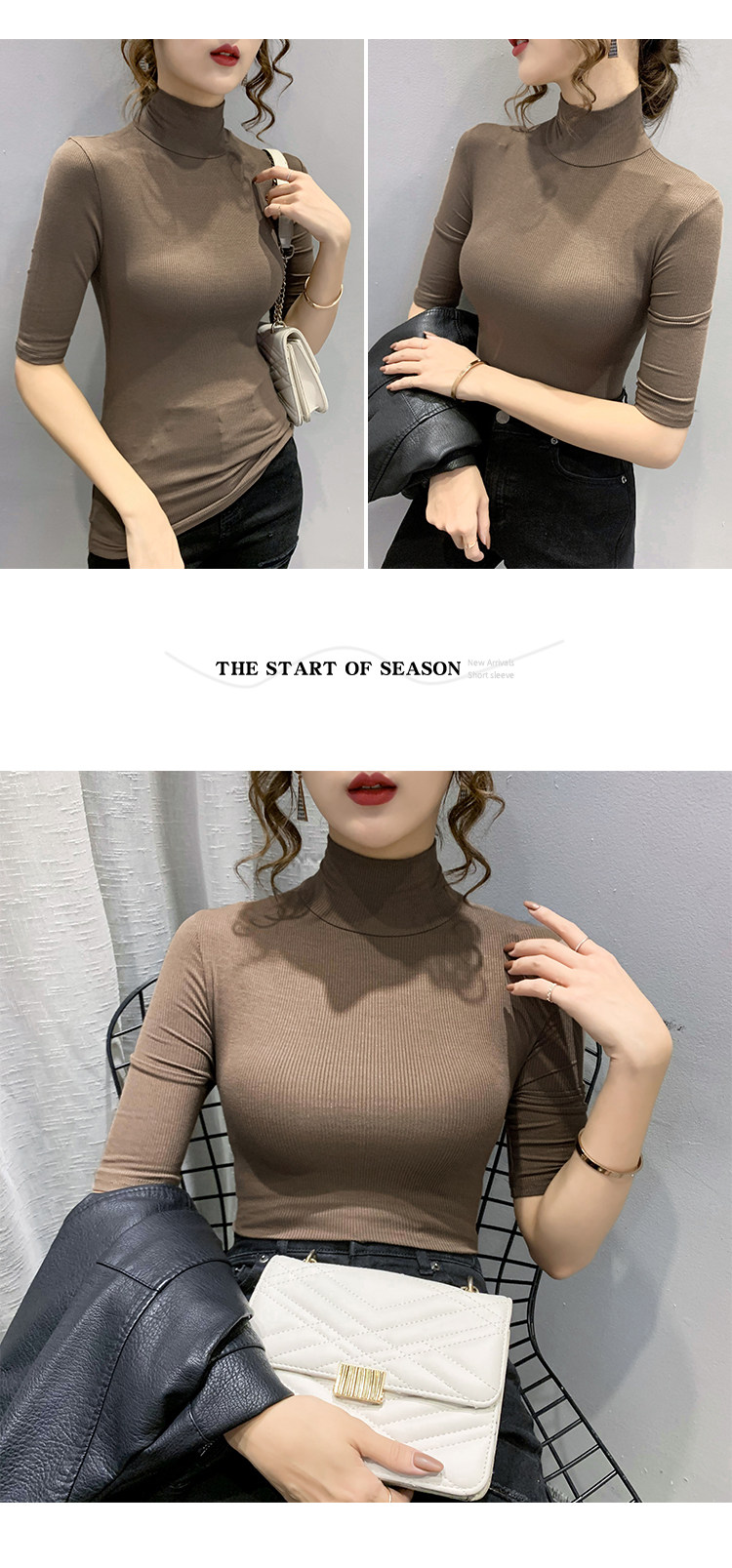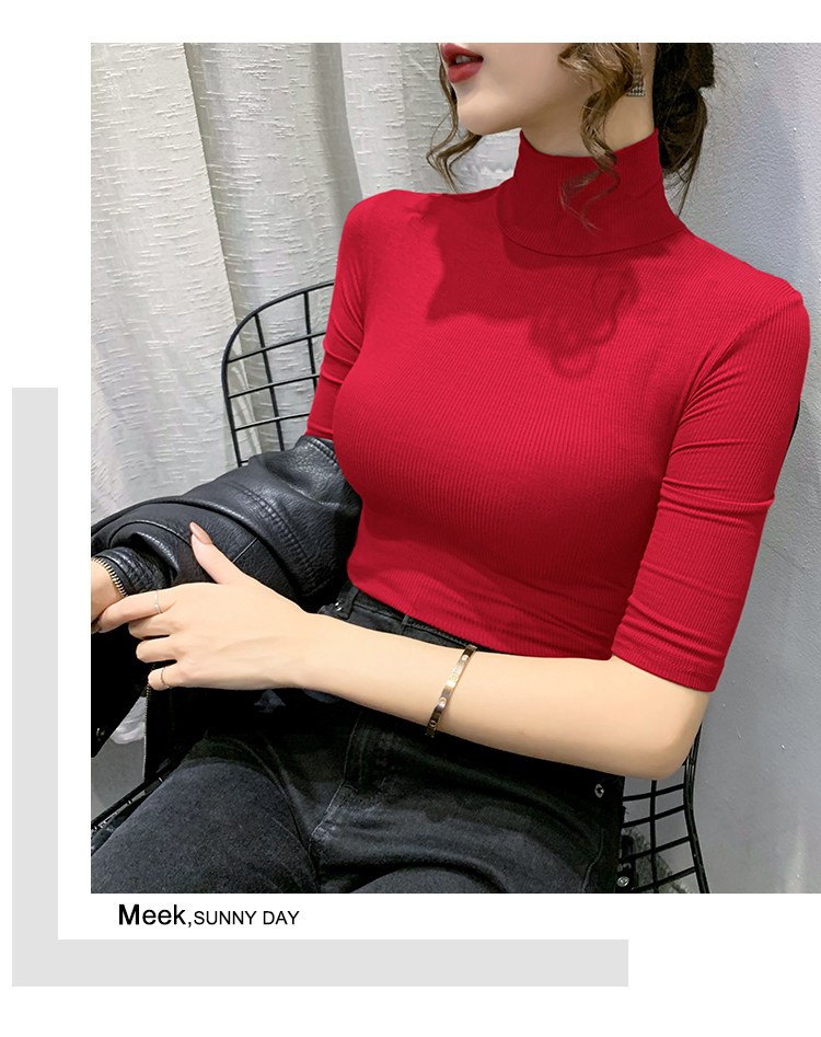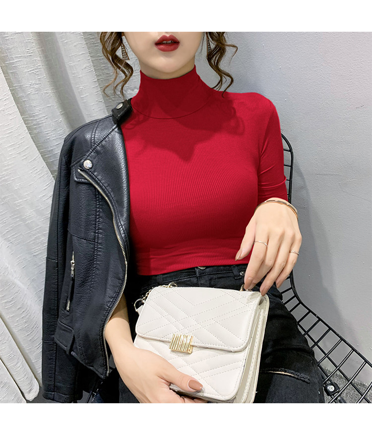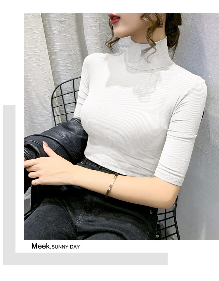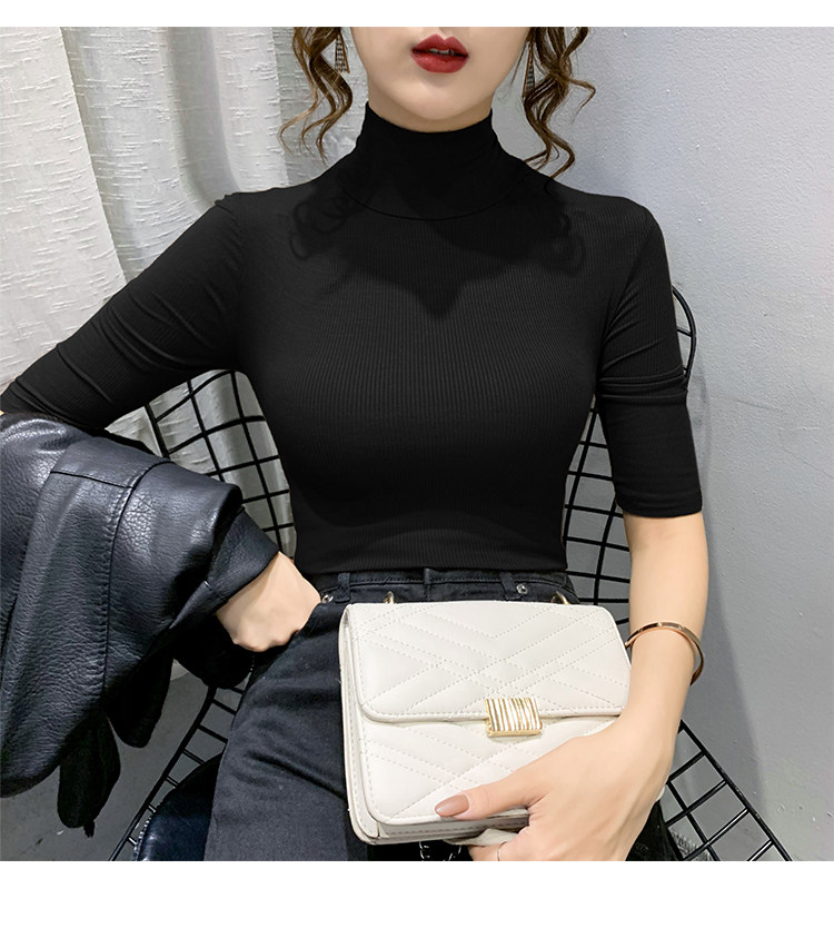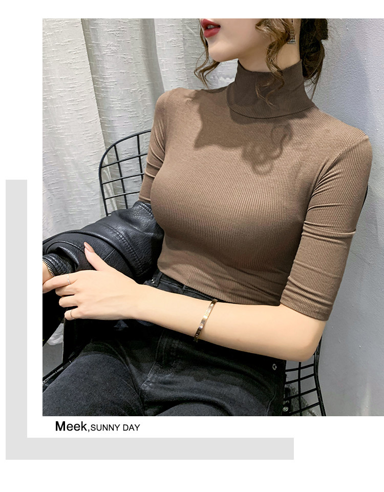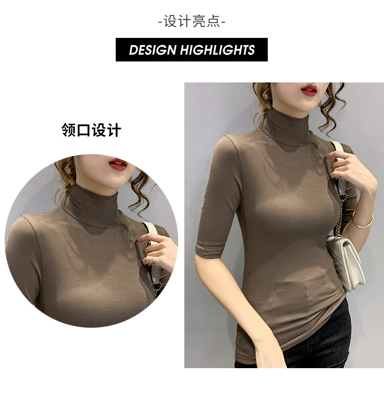 Весенняя осенняя базовая приятная телу эластичная футболка с коротким рукавом, 2025 года, популярно в интернете, высокий воротник, в обтяжку