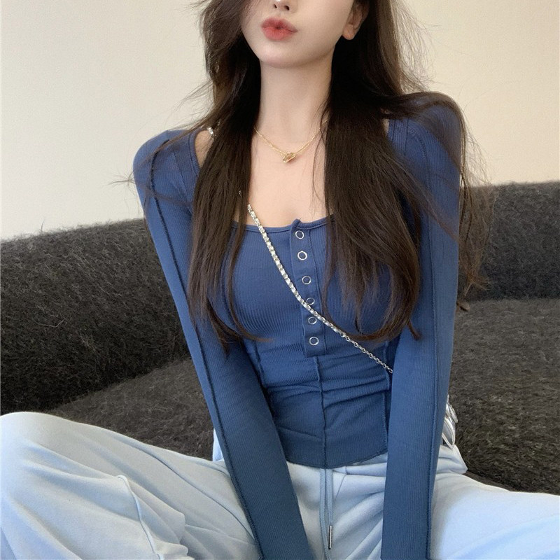 Осенняя дизайнерская футболка, короткий базовый приятный телу лонгслив, облегающий крой, тренд сезона