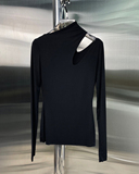 22 ранняя весна, новая нишевая модная женская футболка с длинными рукавами на одно плечо и вырезом, нерегулярный диагональный воротник