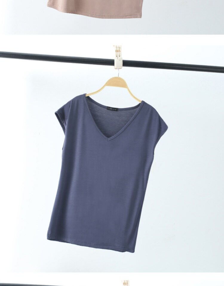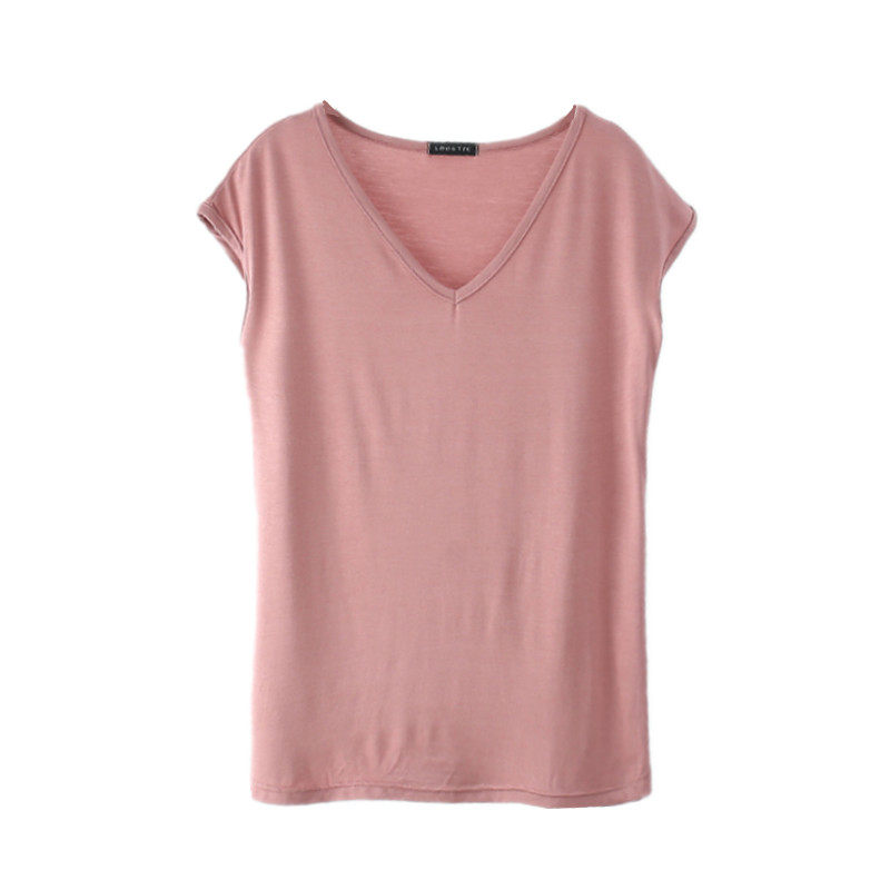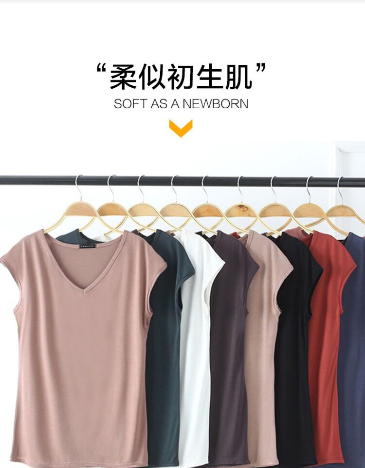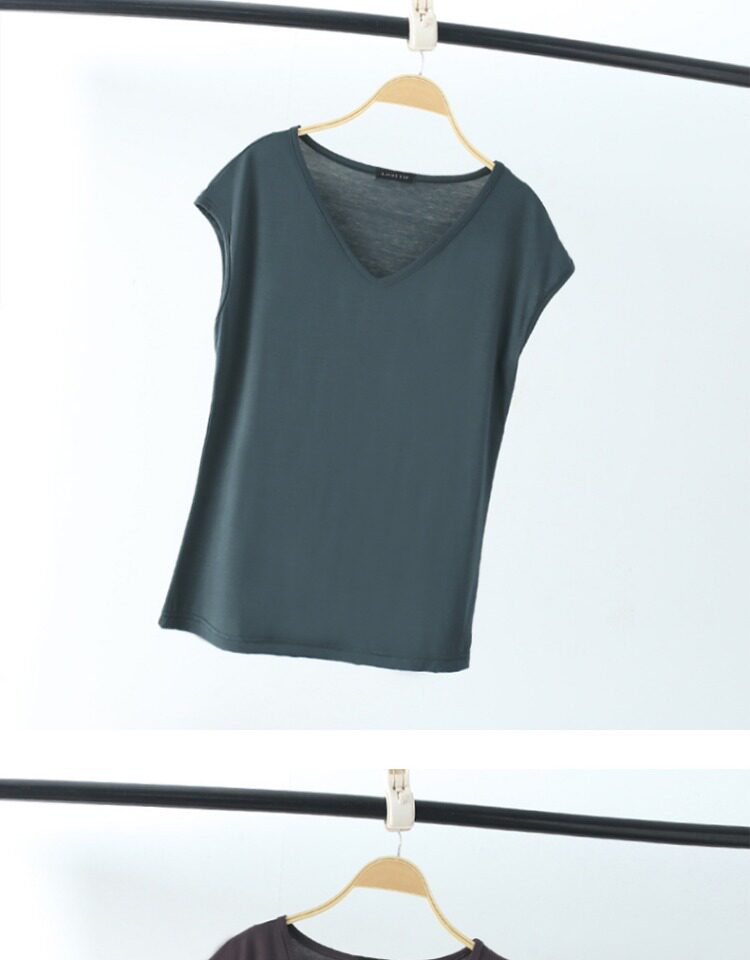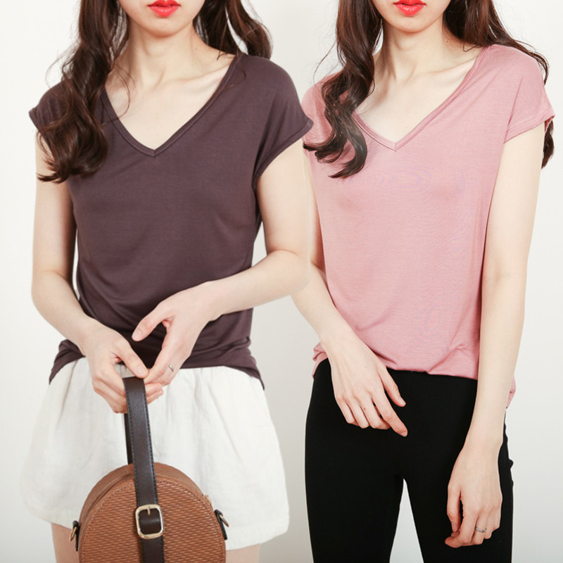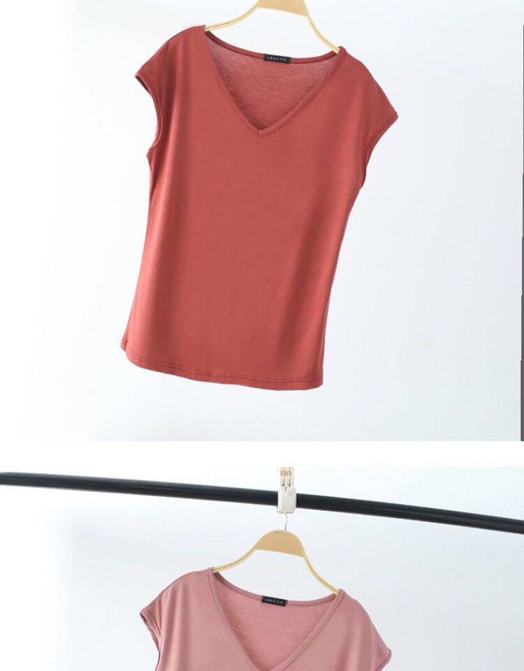 Летняя тонкая цветная футболка, базовый приятный телу жилет для отдыха, короткий рукав, V-образный вырез, в западном стиле