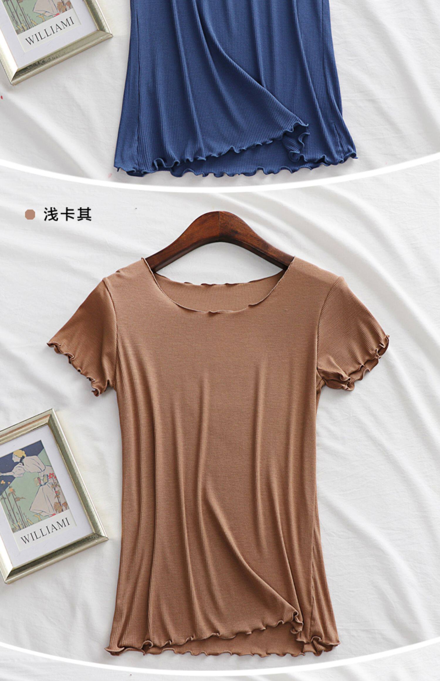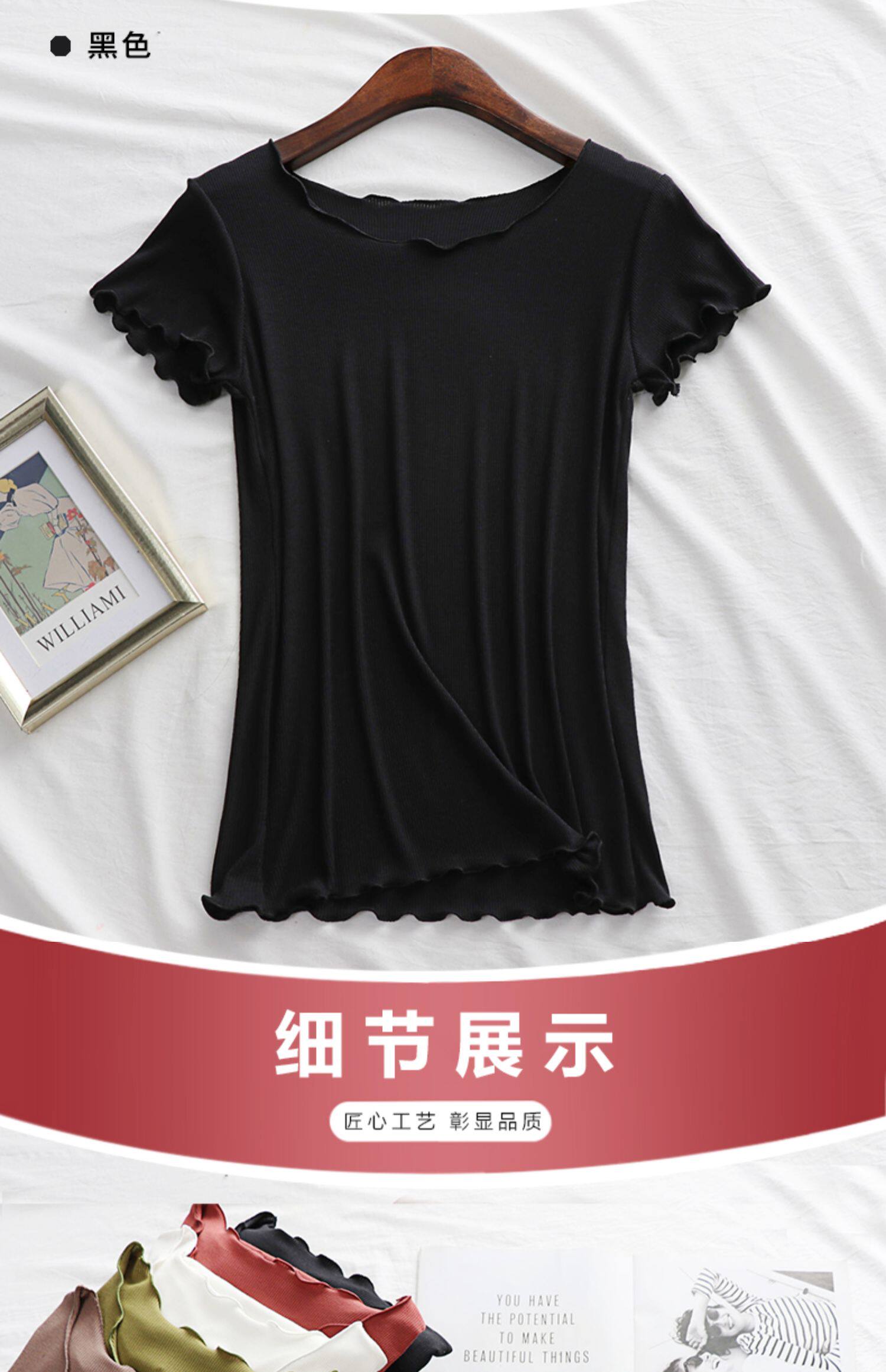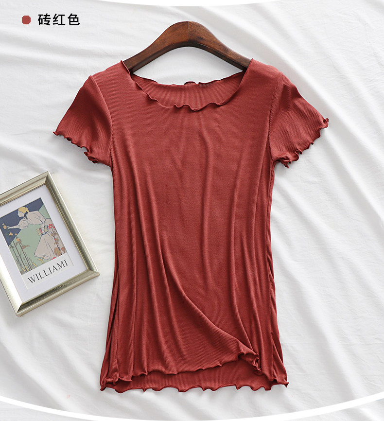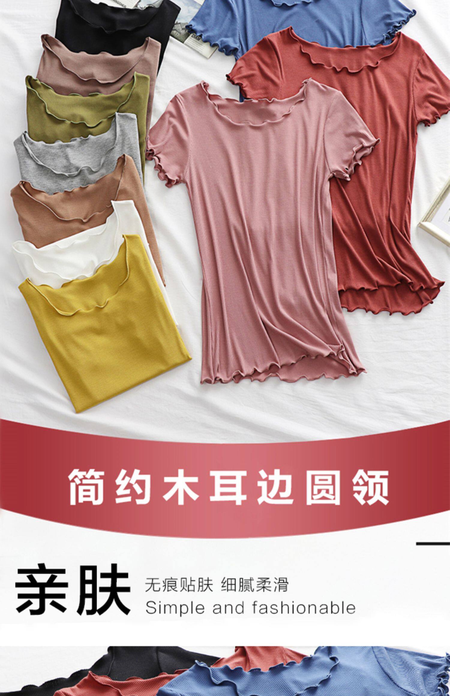 Летняя базовая приятная телу футболка с коротким рукавом с круглым воротником, облегающий крой