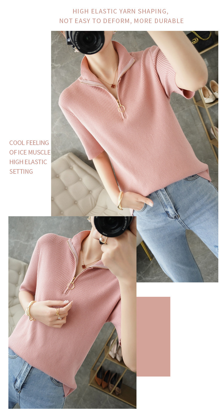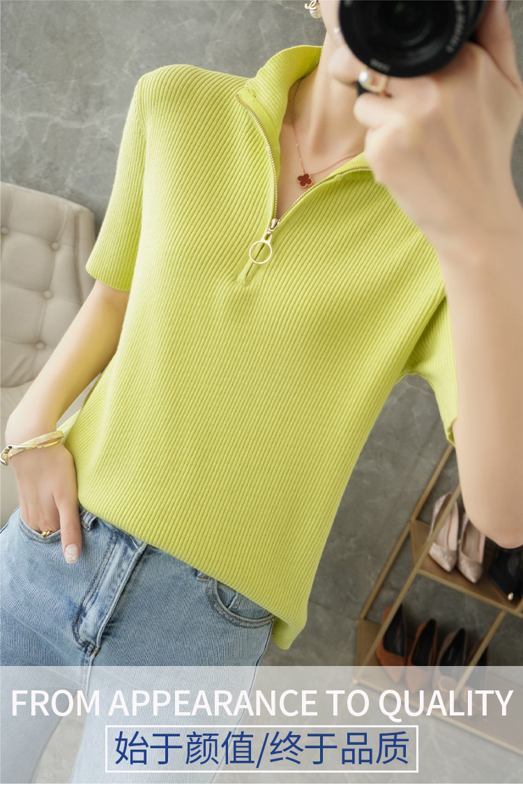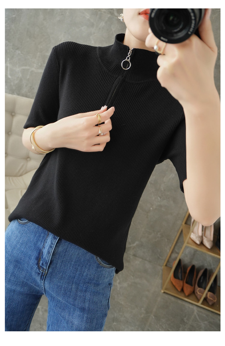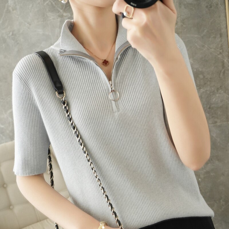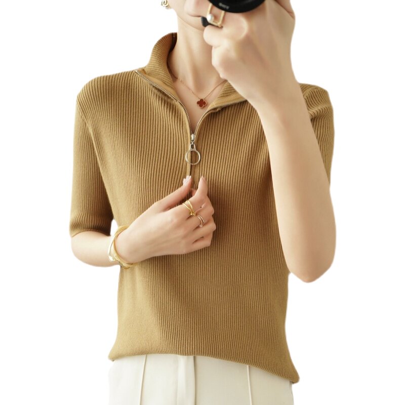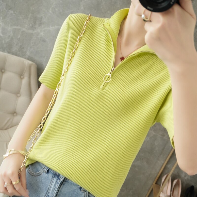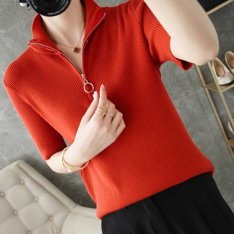 Летняя футболка, модная базовая цепочка с молнией, трикотажный свитер, облегающий крой, короткий рукав