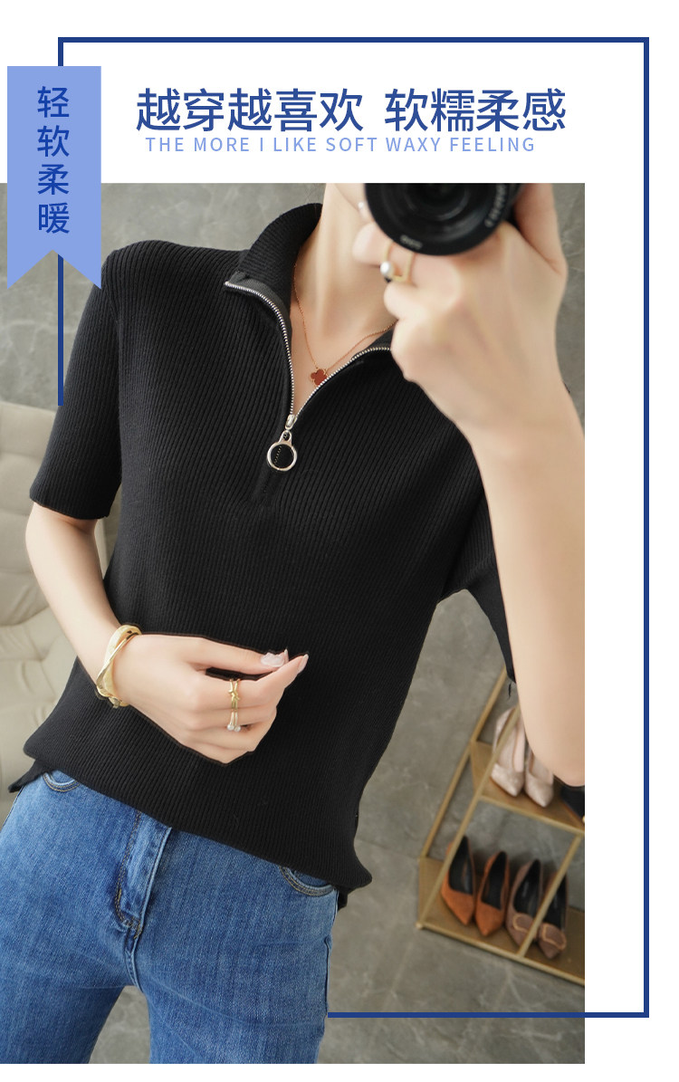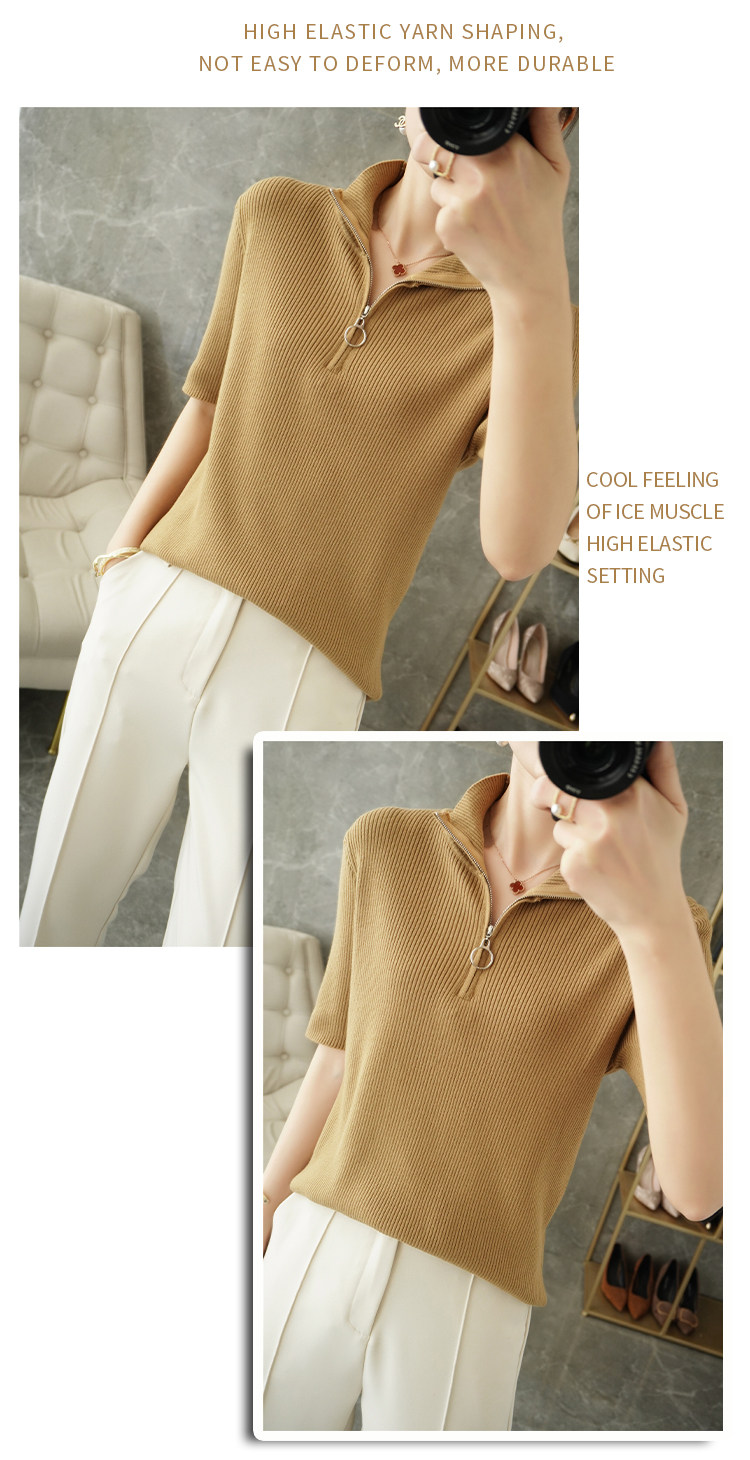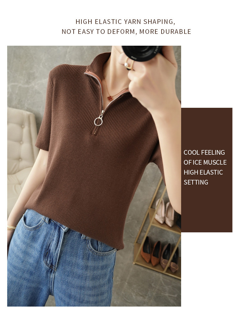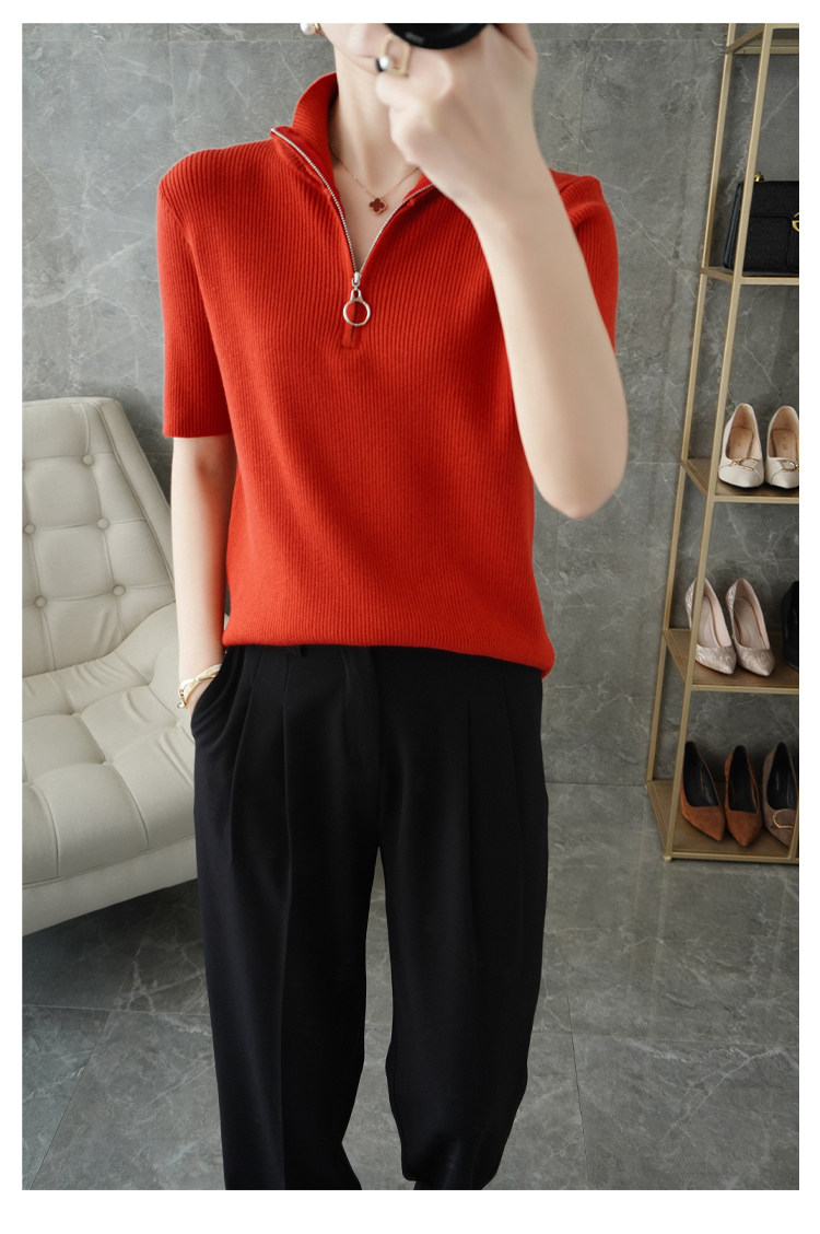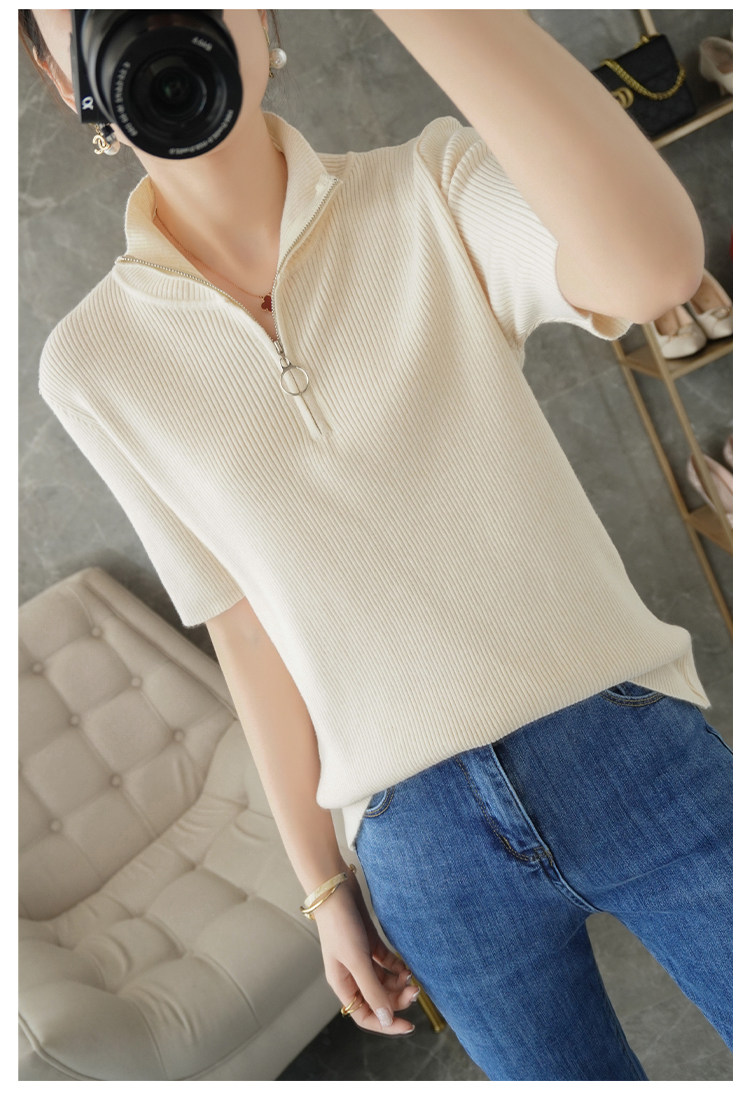 Летняя футболка, модная базовая цепочка с молнией, трикотажный свитер, облегающий крой, короткий рукав