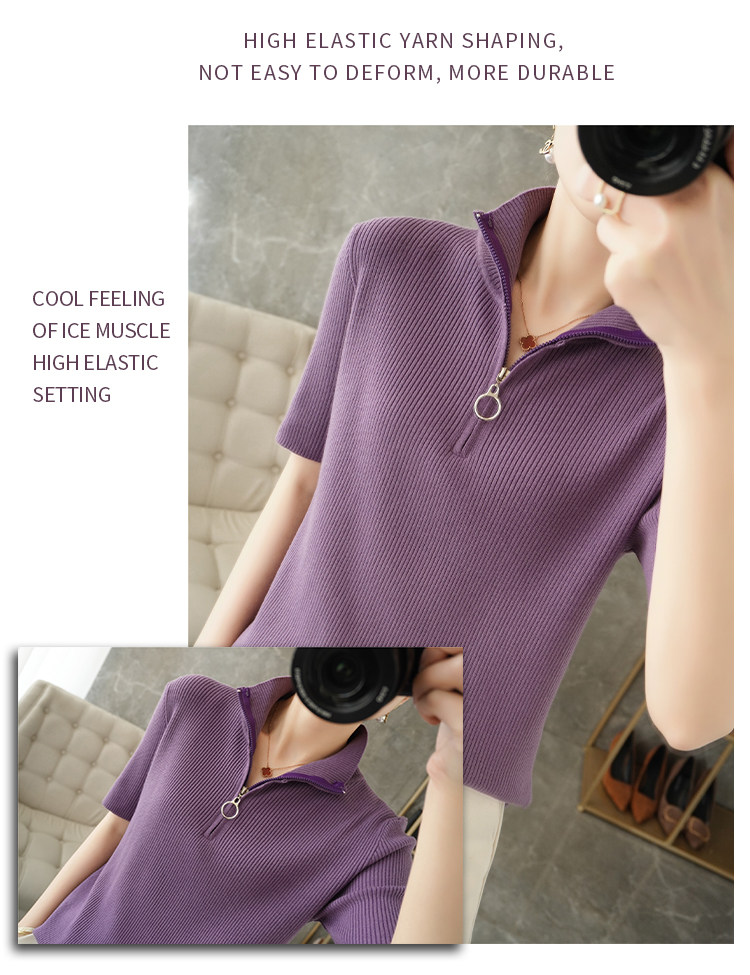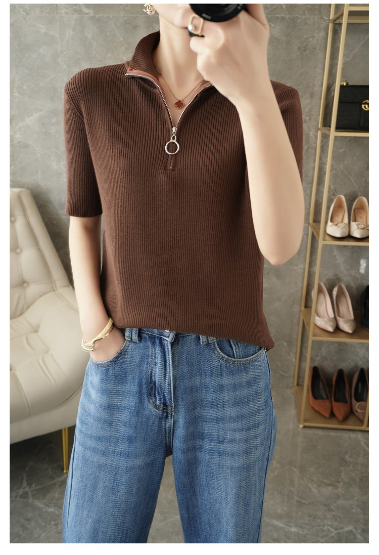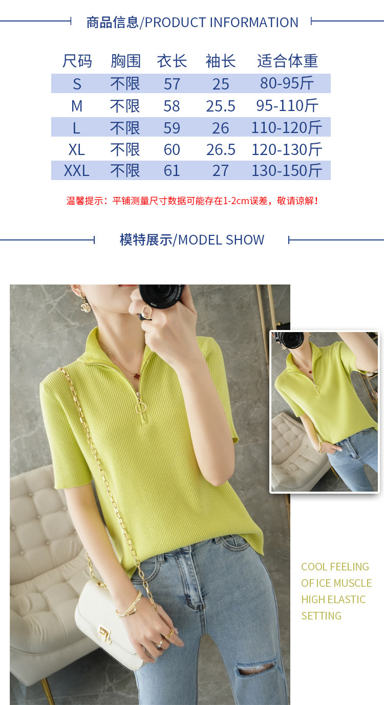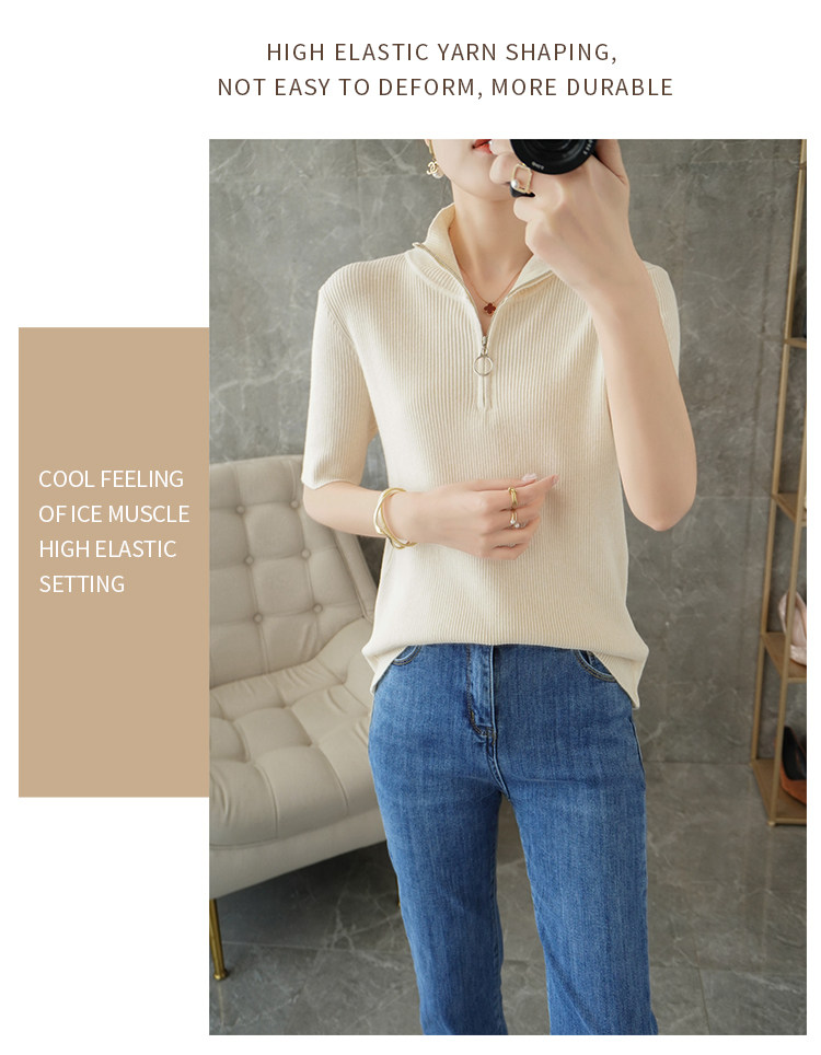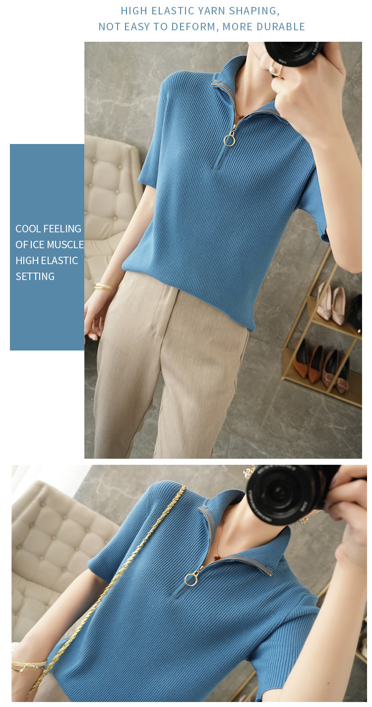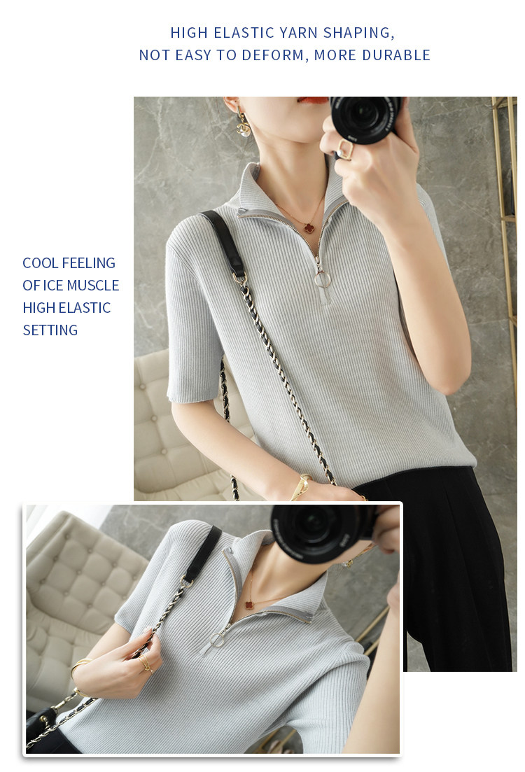 Летняя футболка, модная базовая цепочка с молнией, трикотажный свитер, облегающий крой, короткий рукав