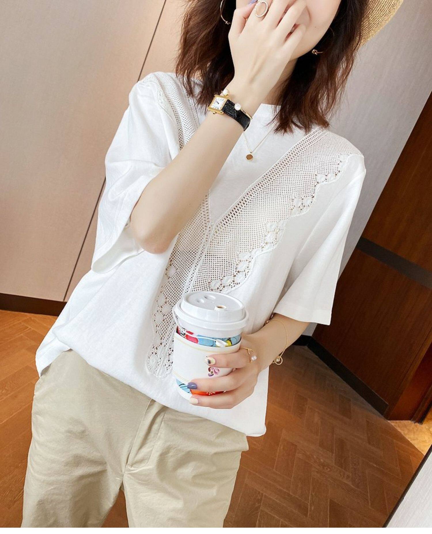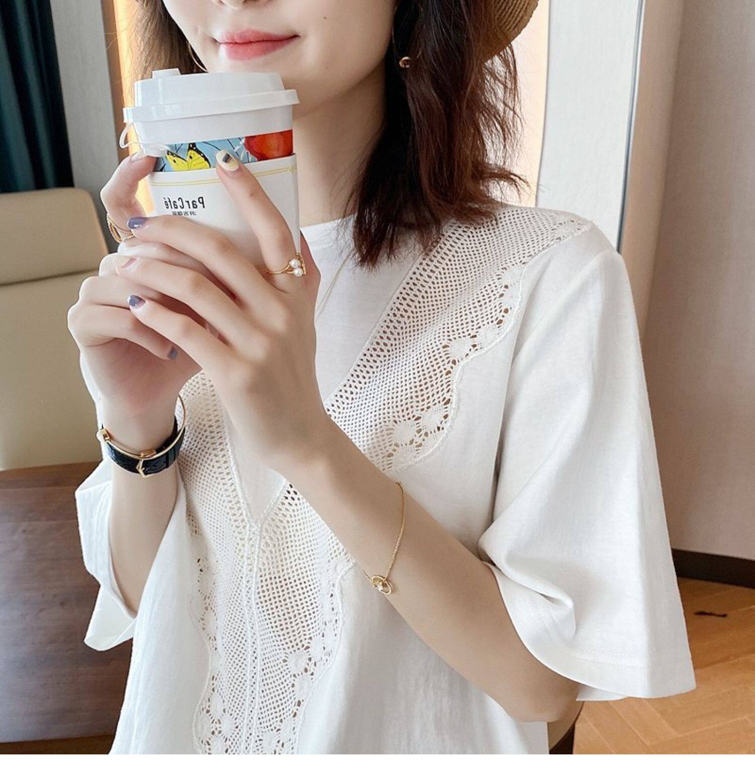 (Трансграничная торговля), кружевная хлопковая футболка с коротким рукавом, Италия