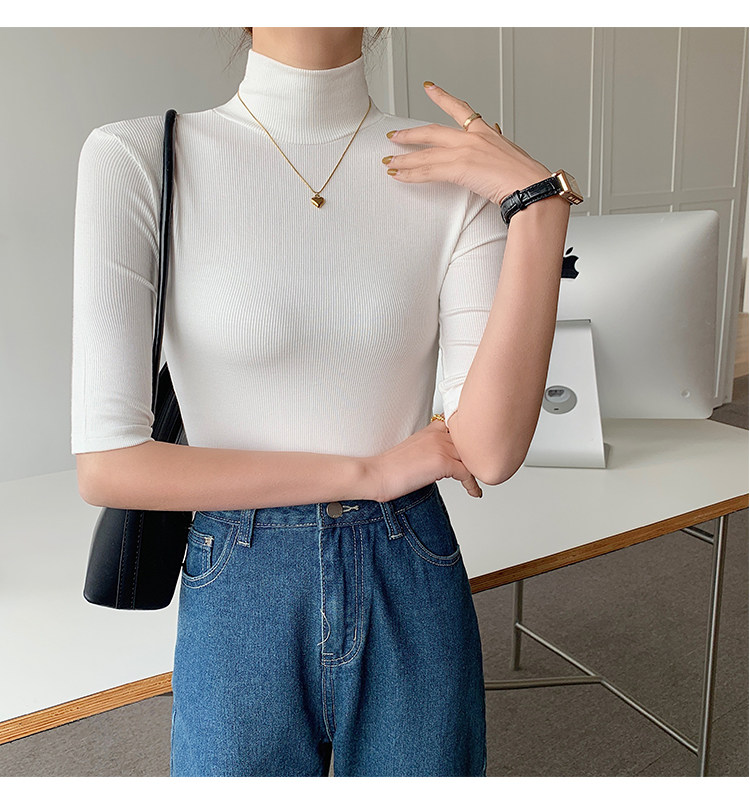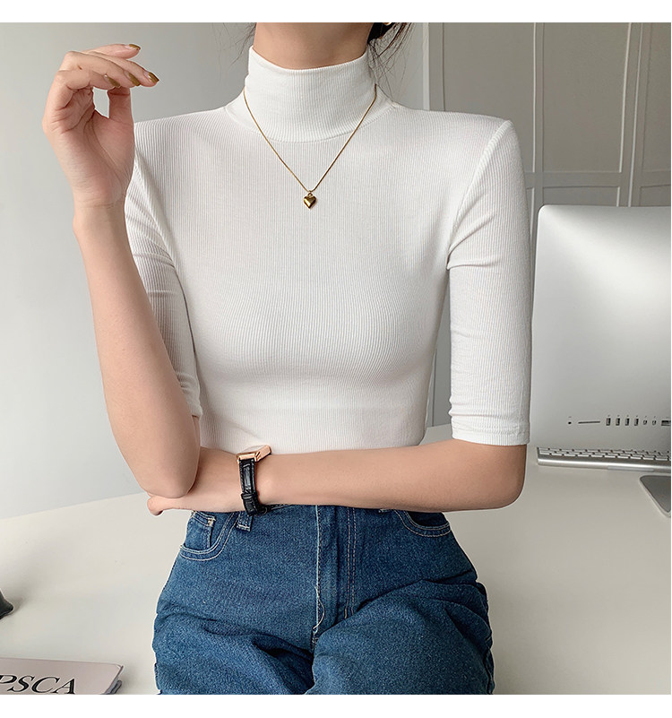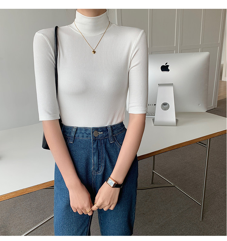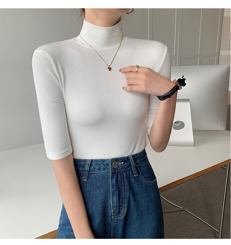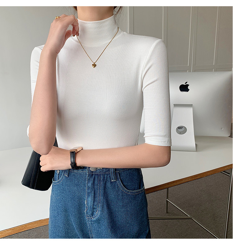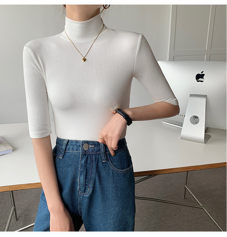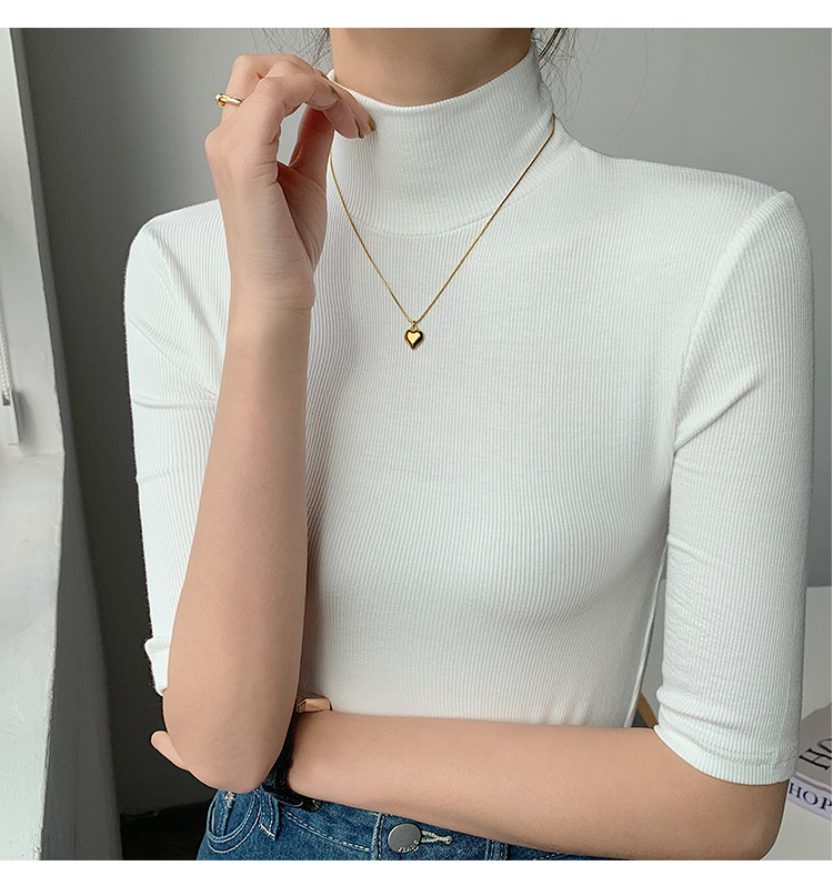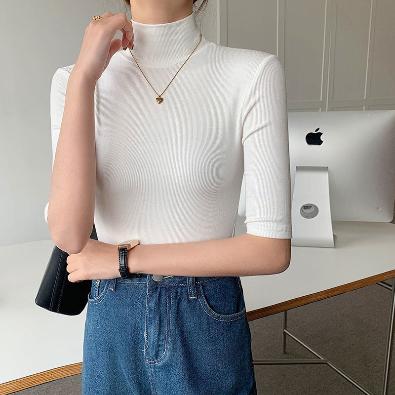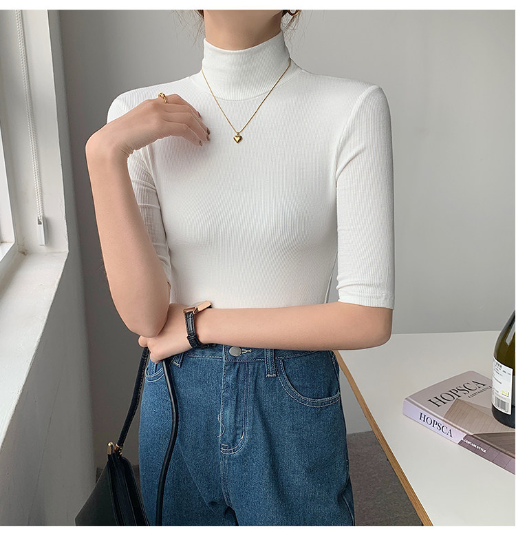 Базовая приятная телу белая футболка, высокий воротник, облегающий крой