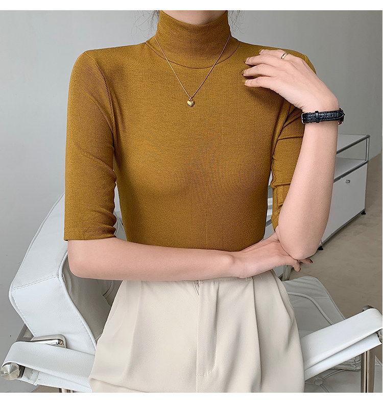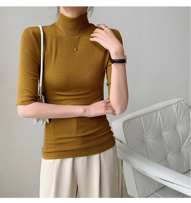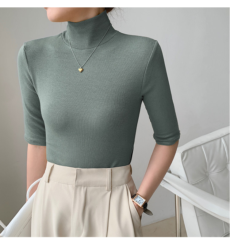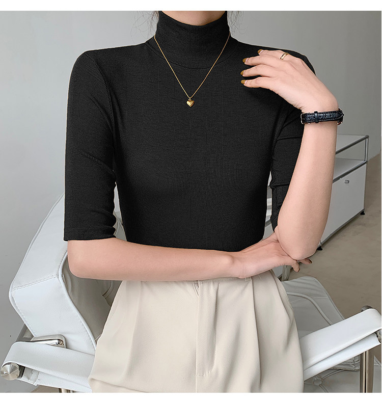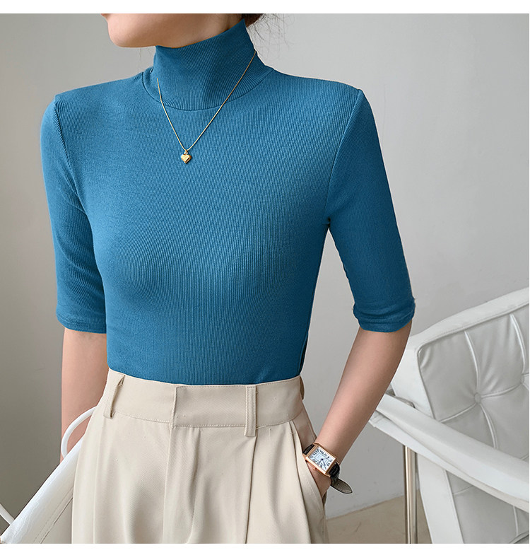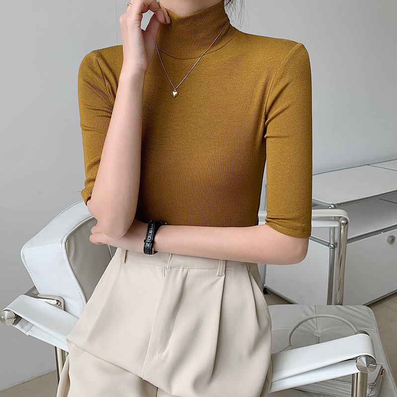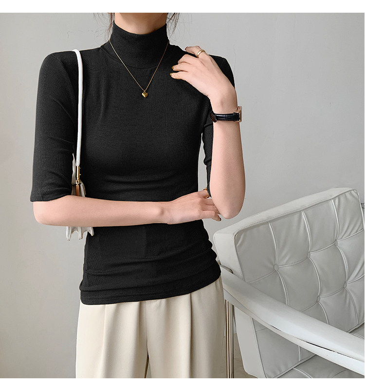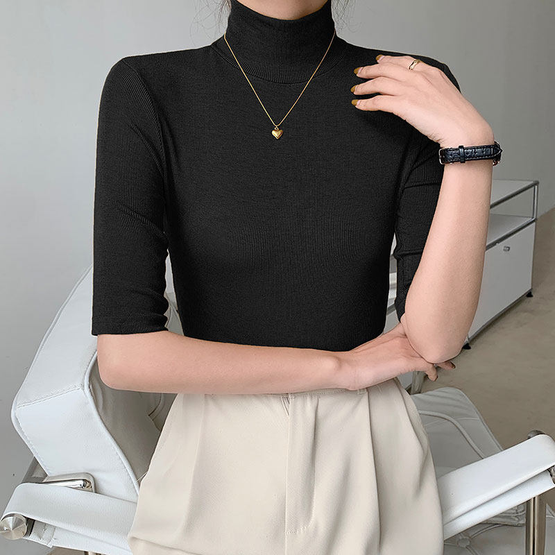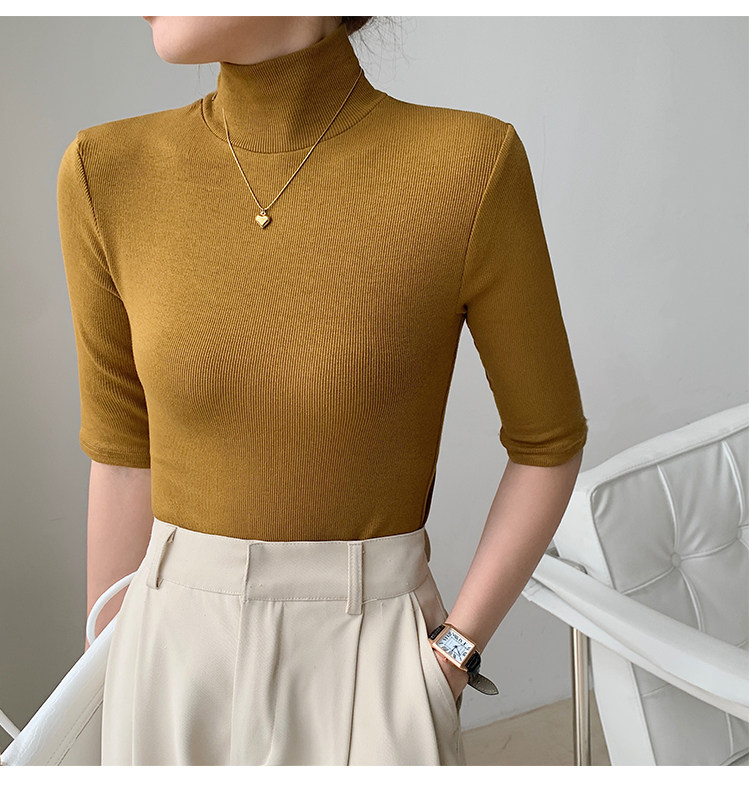 Базовая приятная телу белая футболка, высокий воротник, облегающий крой