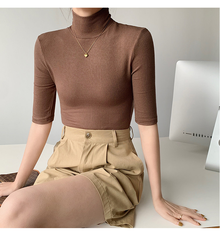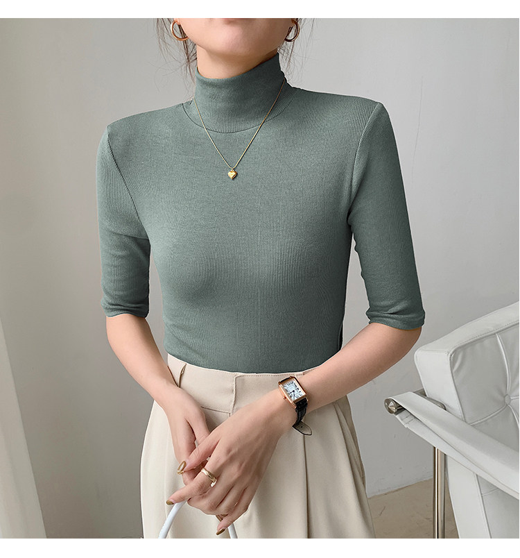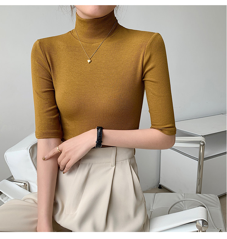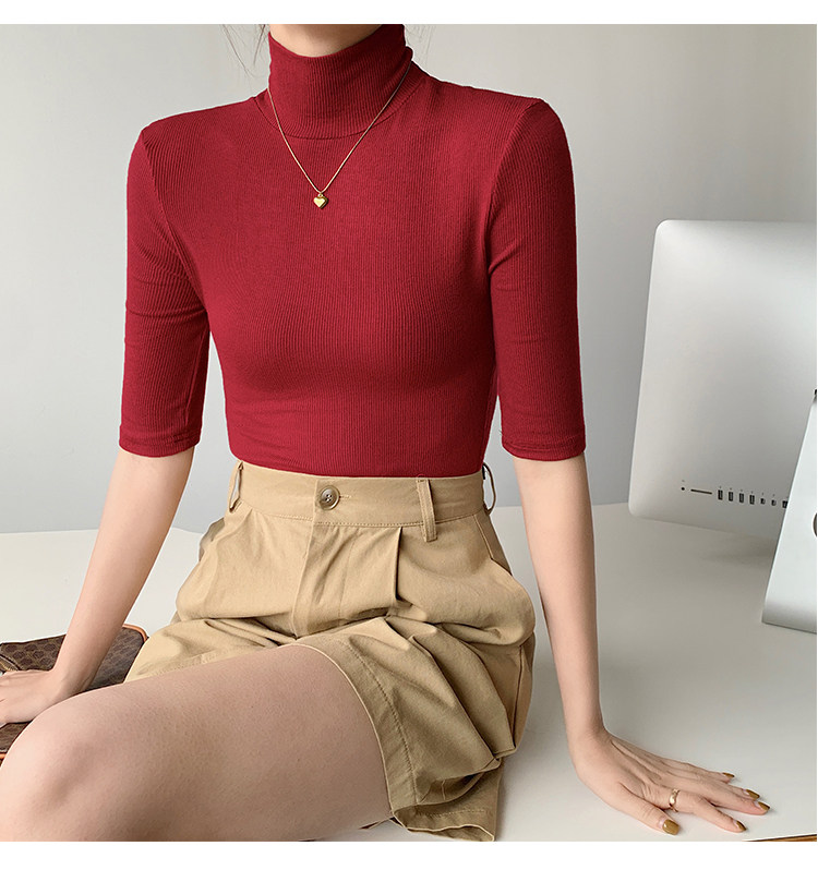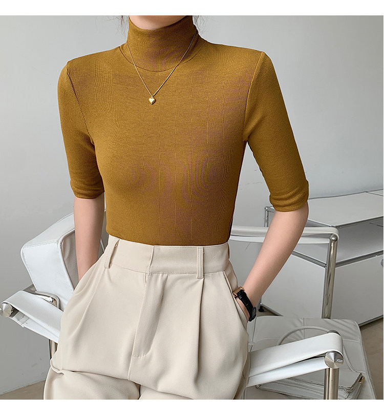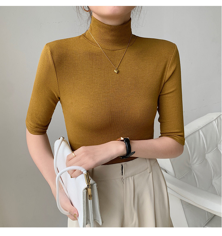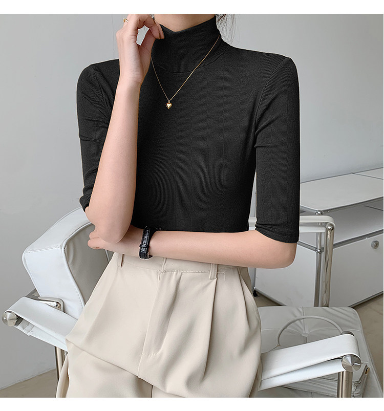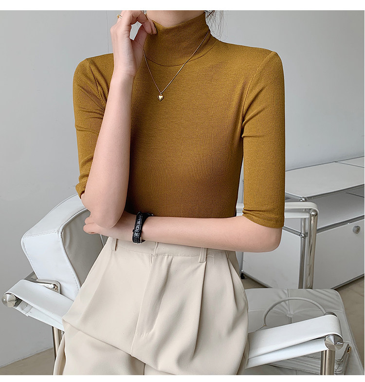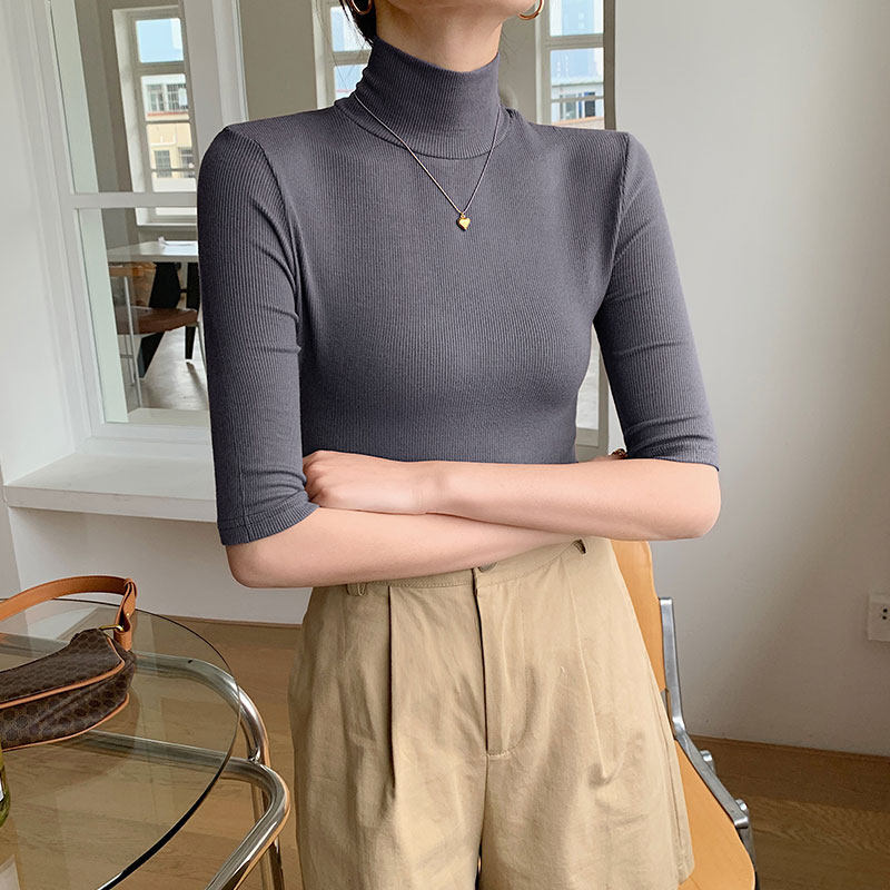 Базовая приятная телу белая футболка, высокий воротник, облегающий крой