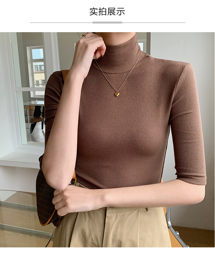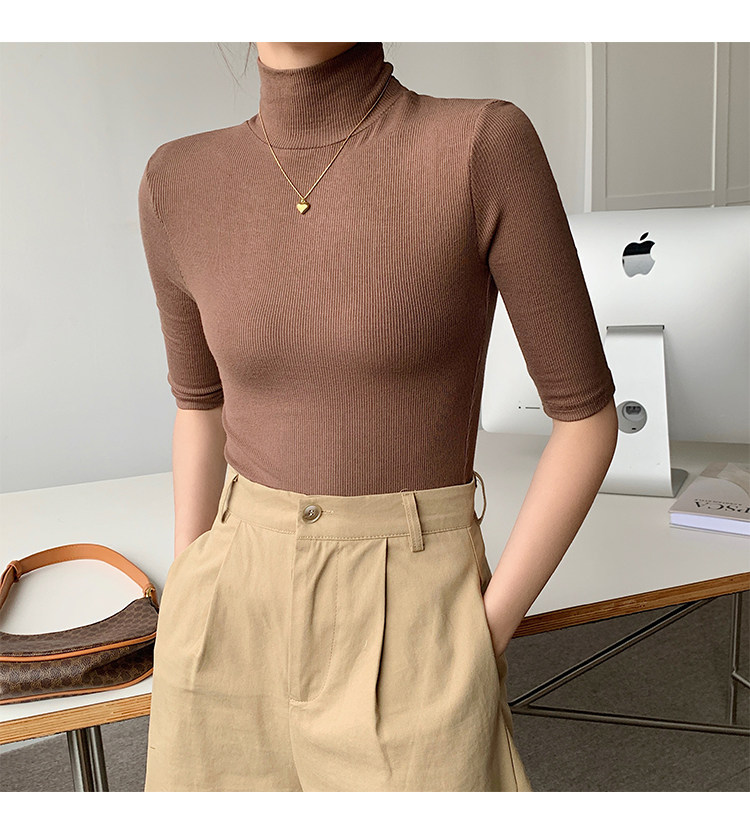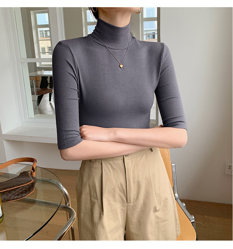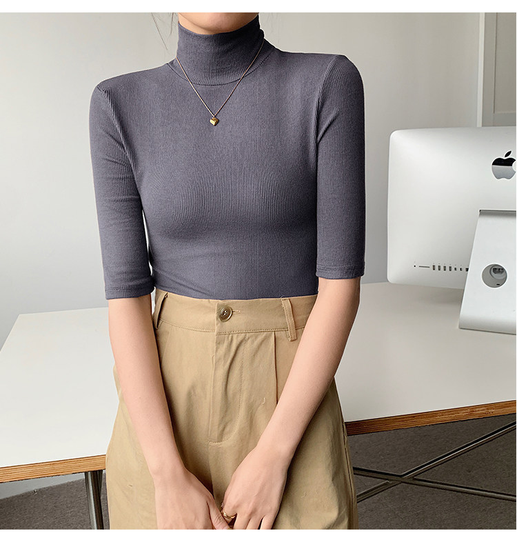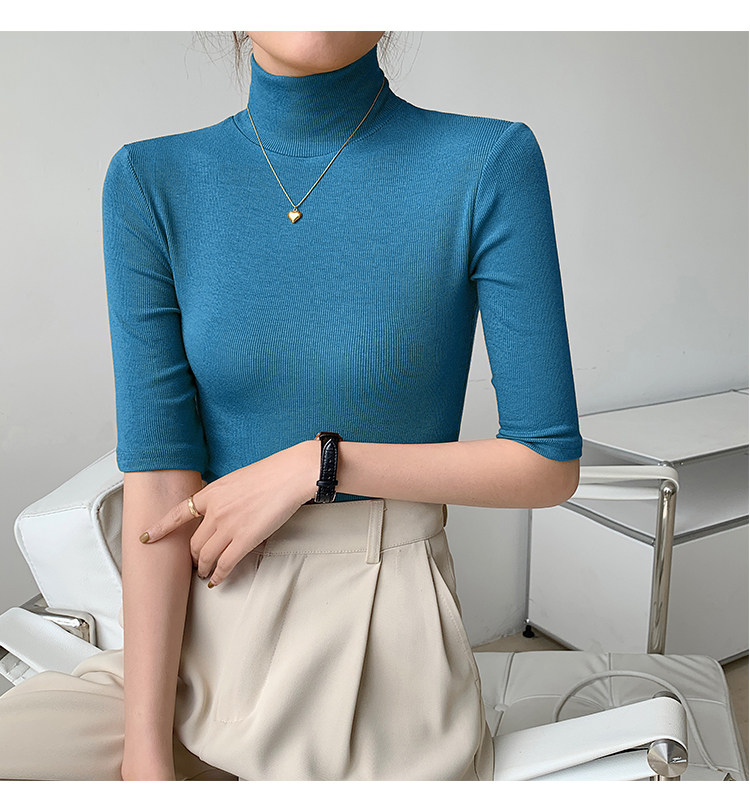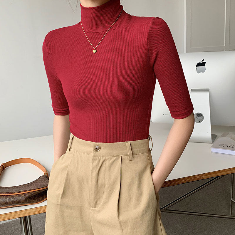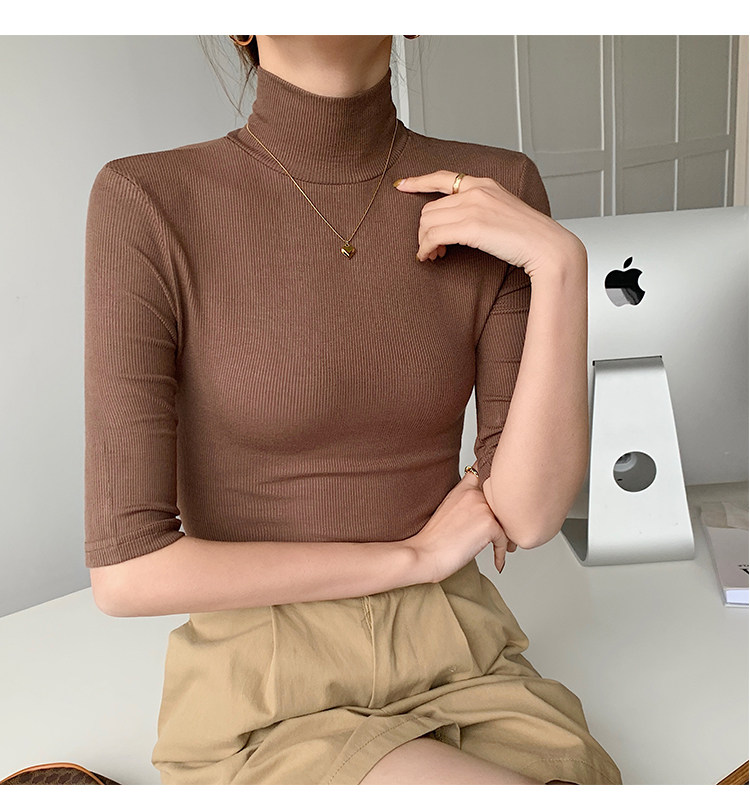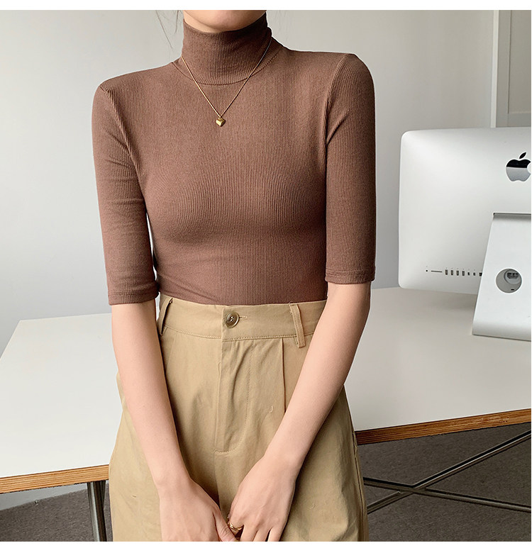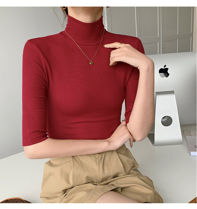 Базовая приятная телу белая футболка, высокий воротник, облегающий крой