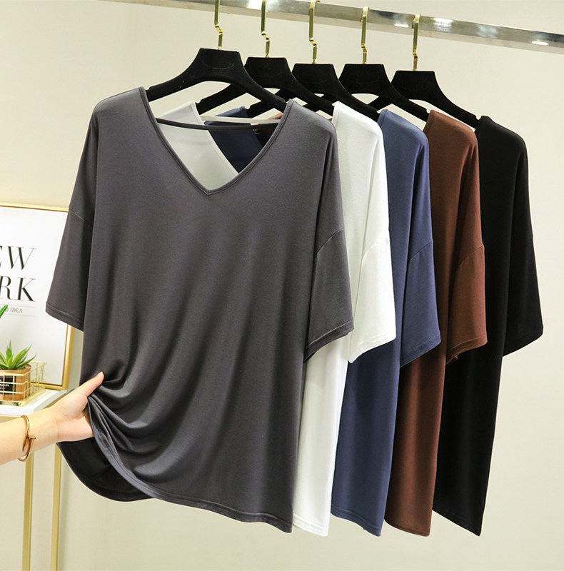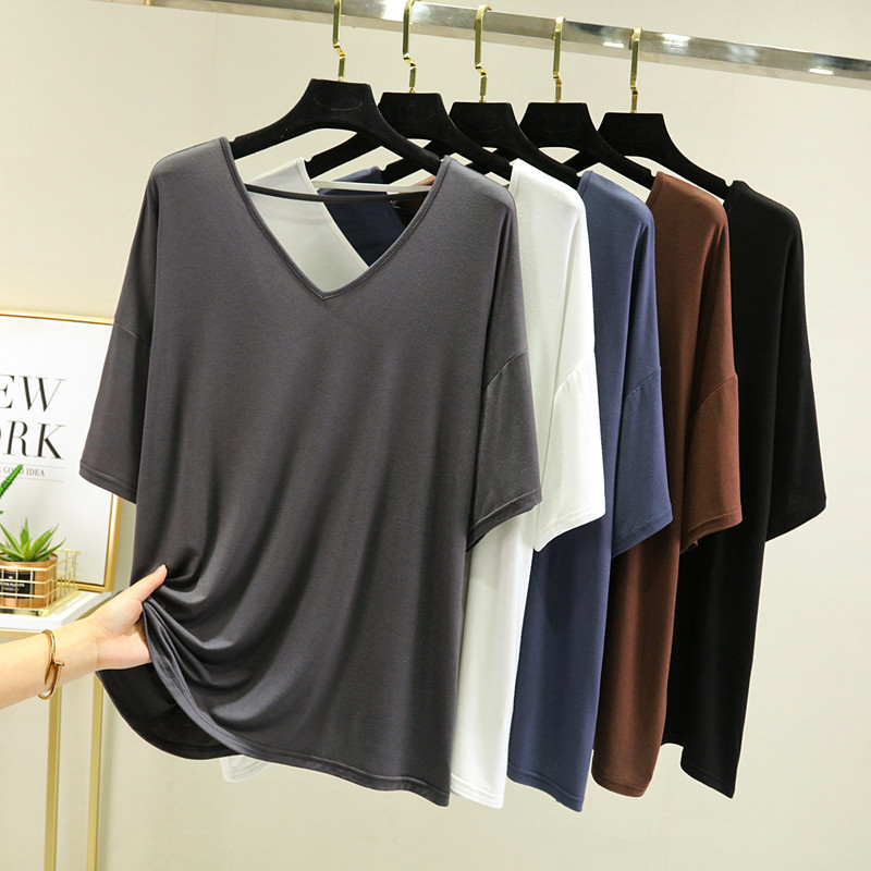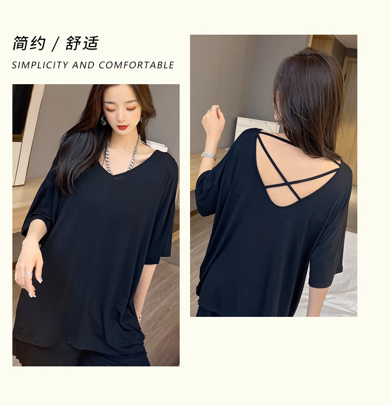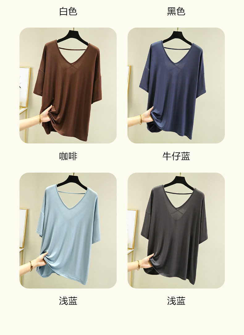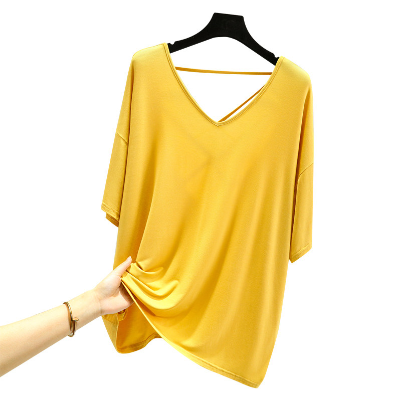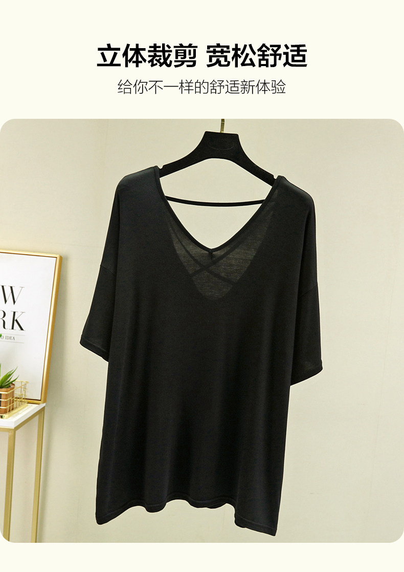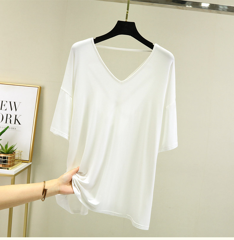 Тонкая базовая приятная телу футболка, свободный крой, V-образный вырез, короткий рукав, красивая спина, с открытой спиной, размер