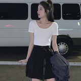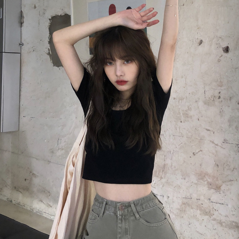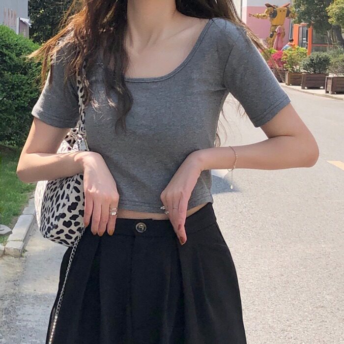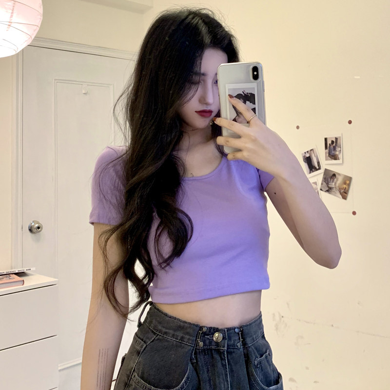 Весенняя летняя приталенная однотонная короткая приятная телу футболка с коротким рукавом