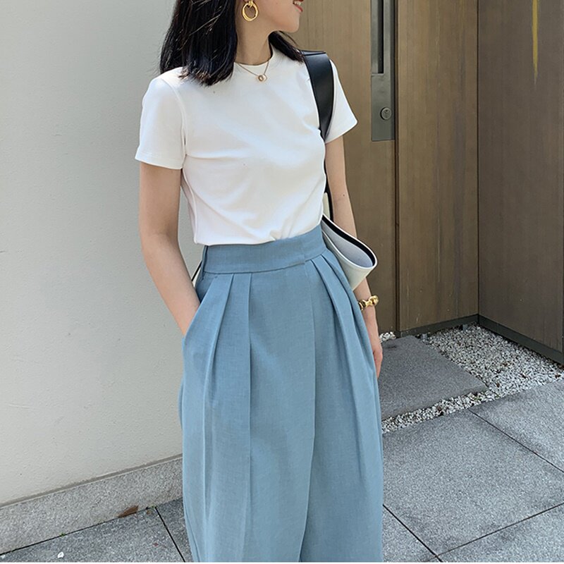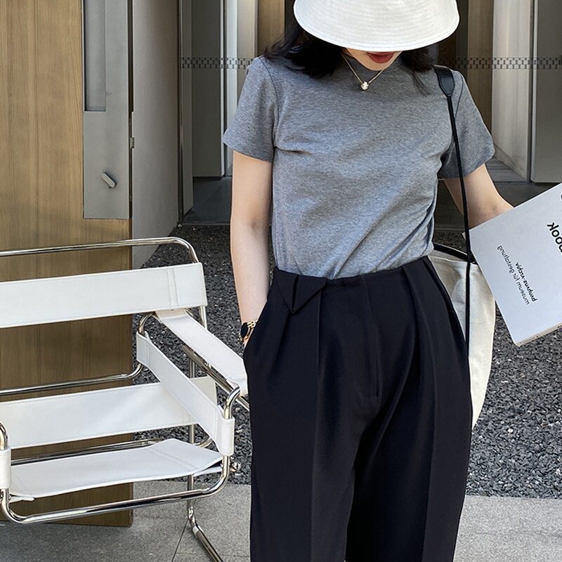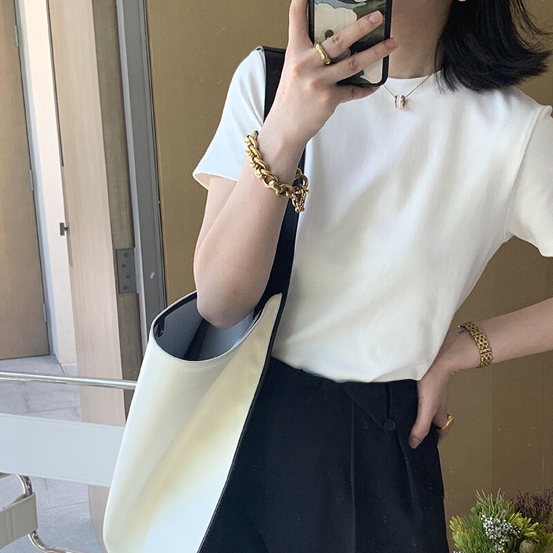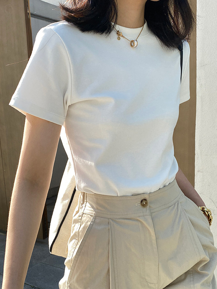 Весенняя летняя белая приталенная хлопковая футболка с коротким рукавом