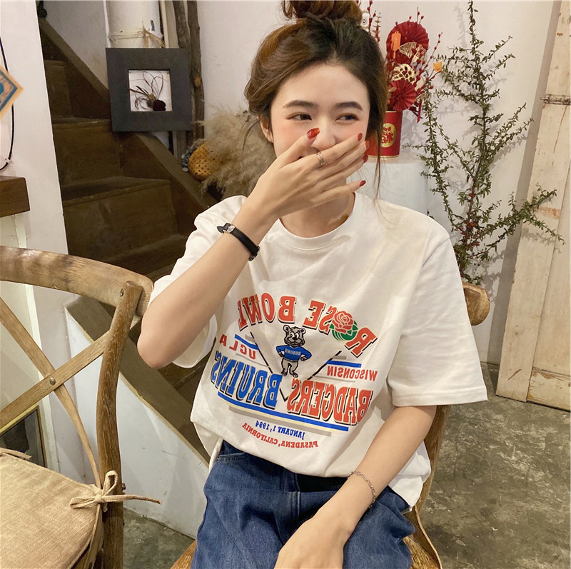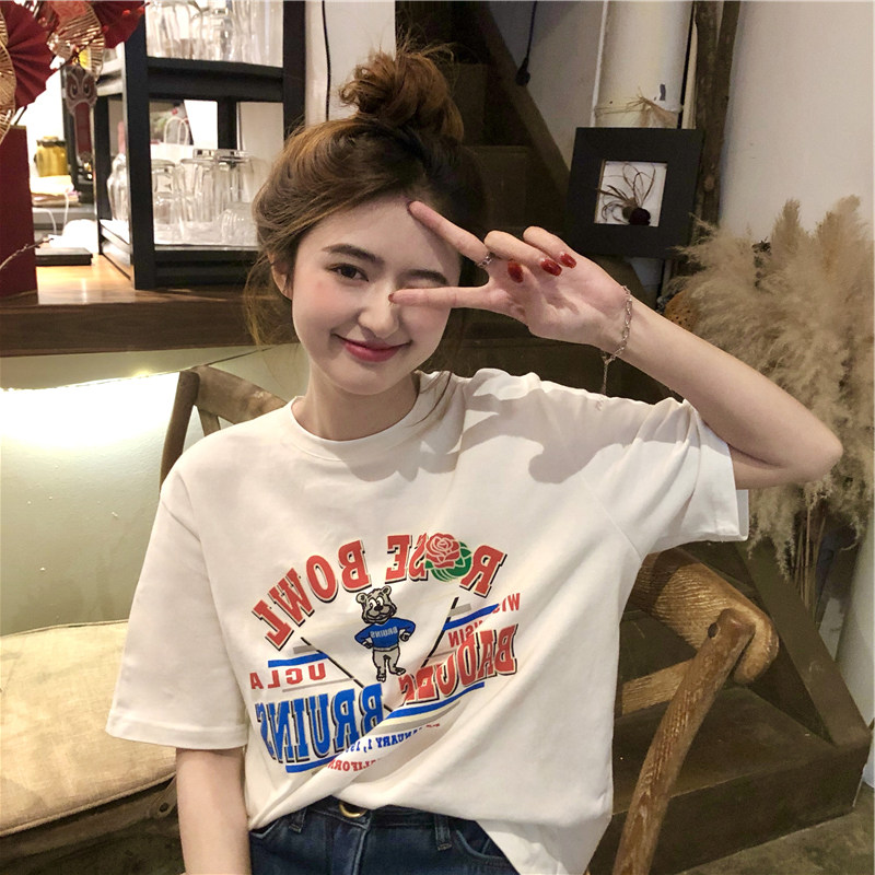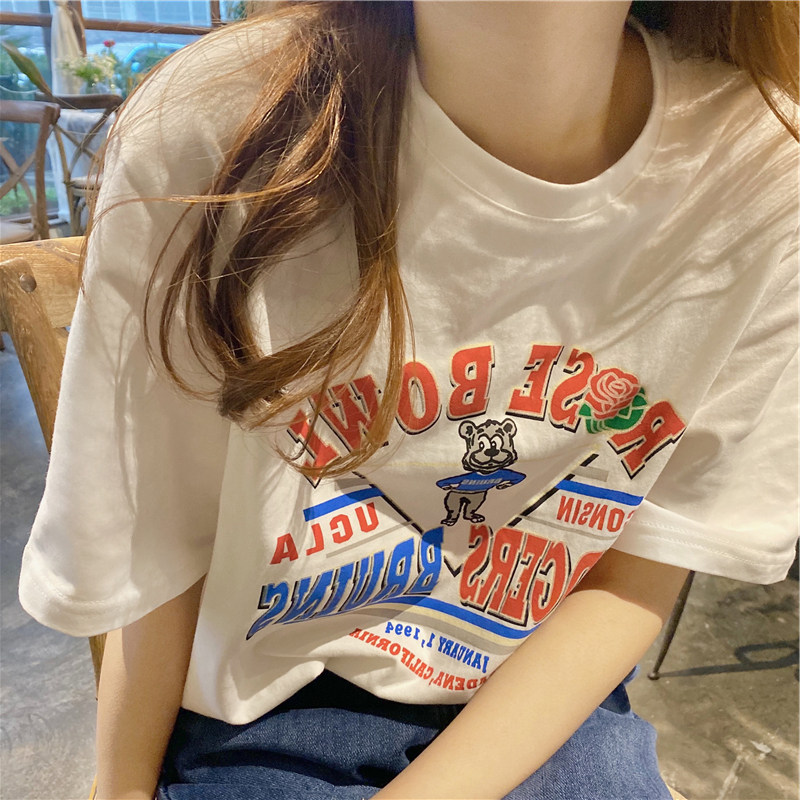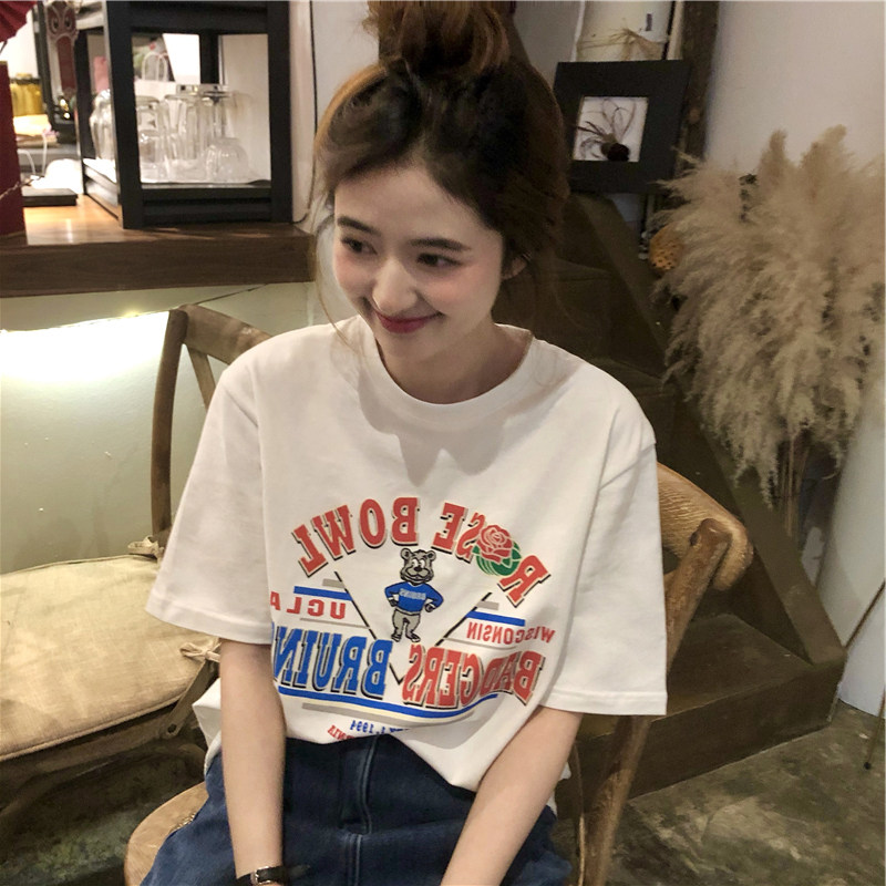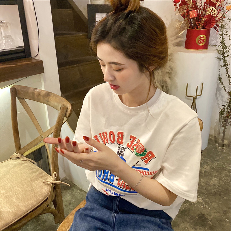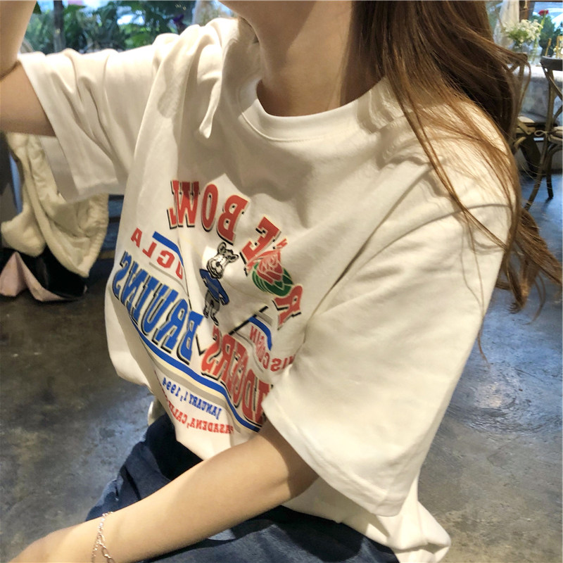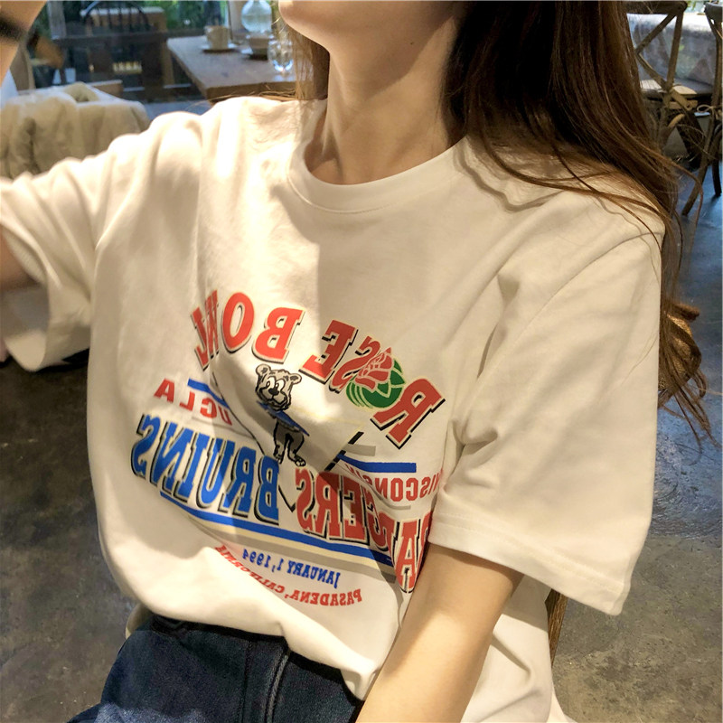 Tide, летняя белая дизайнерская футболка с круглым воротником, короткий рукав, тренд сезона, в американском стиле