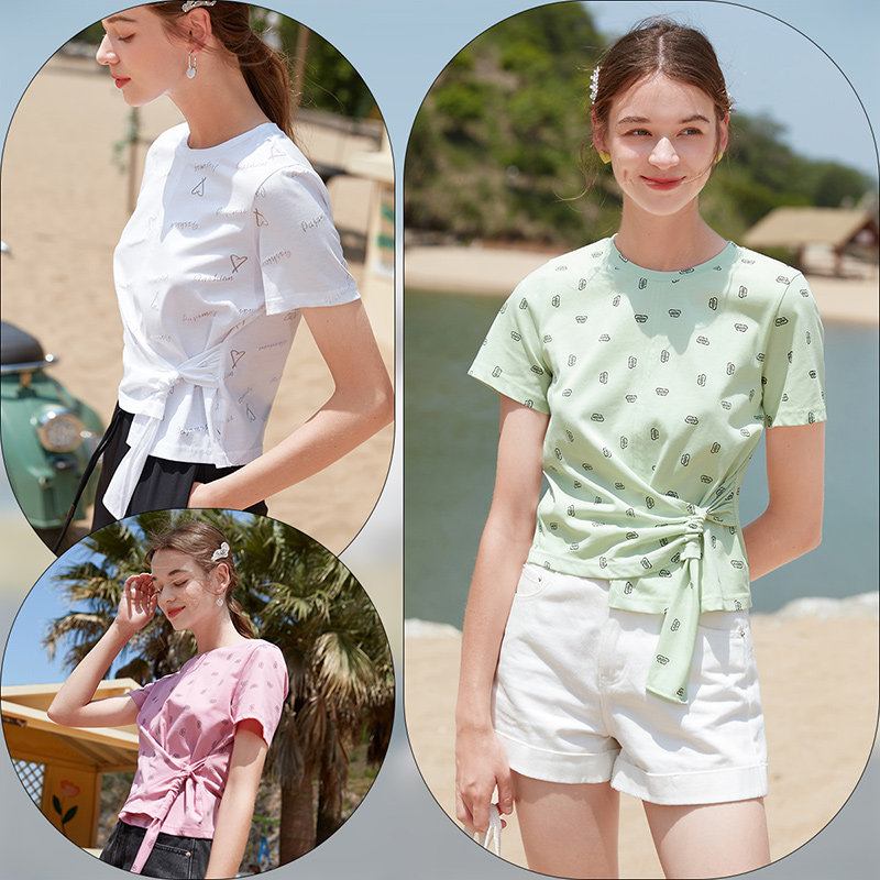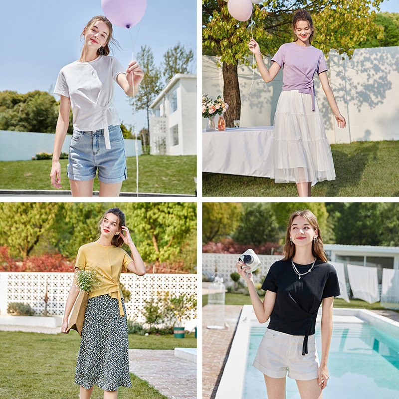 香影 Хлопковая летняя дизайнерская короткая футболка с коротким рукавом, тренд сезона