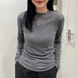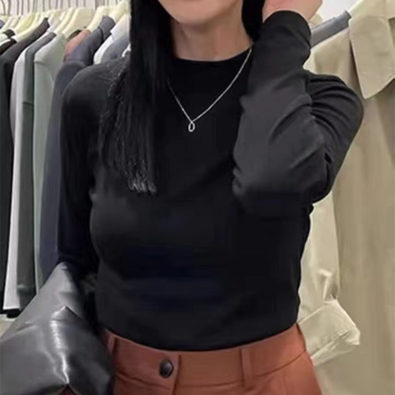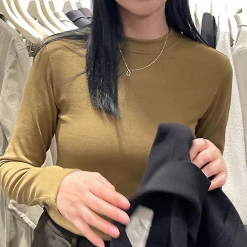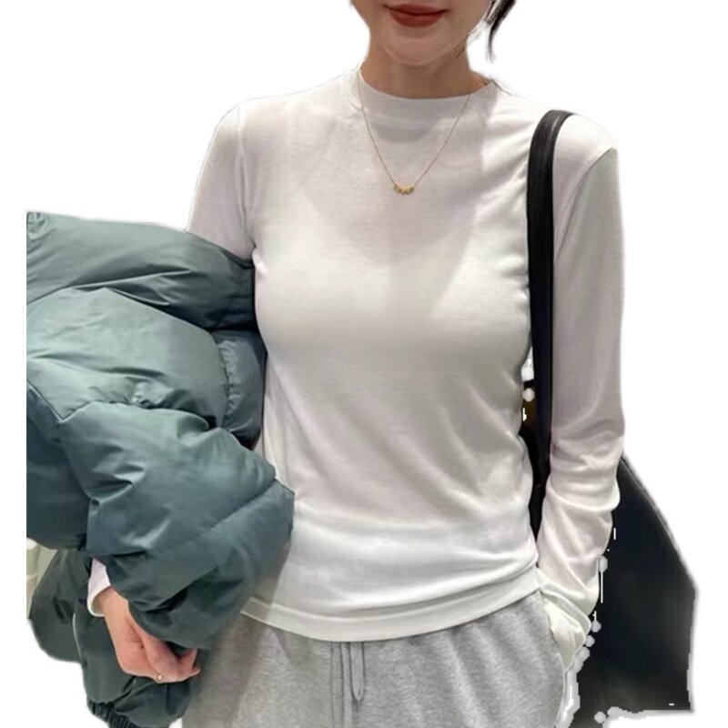 Базовый приятный телу приталенный весенний утепленный белый лонгслив, высокий воротник, в западном стиле