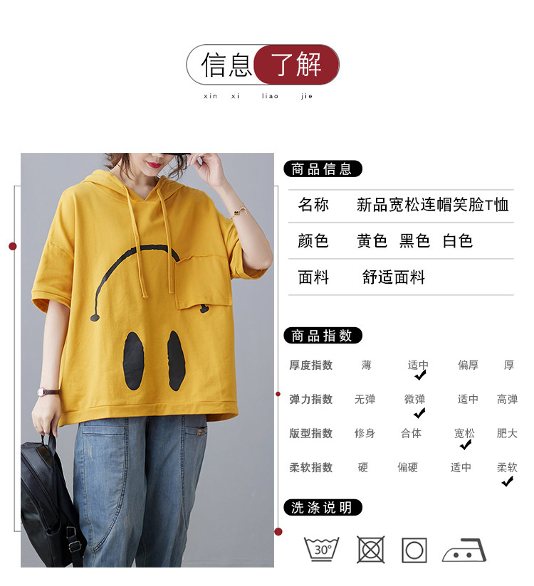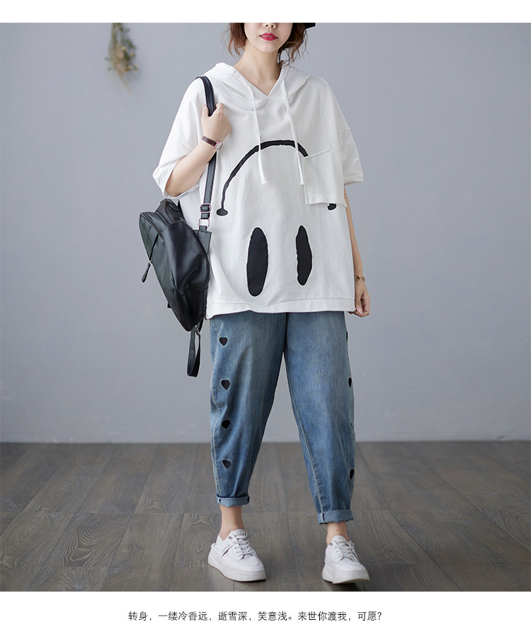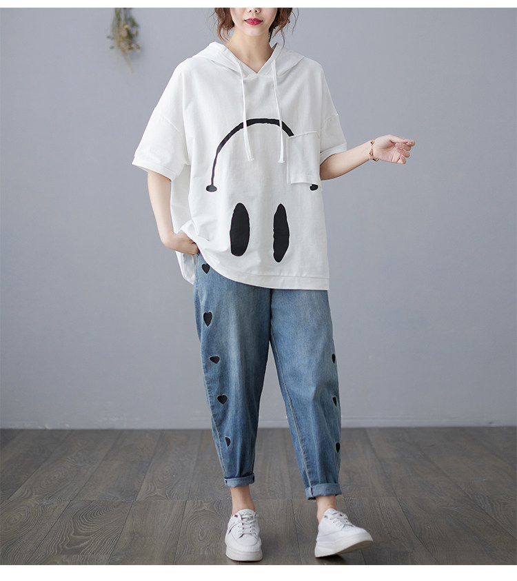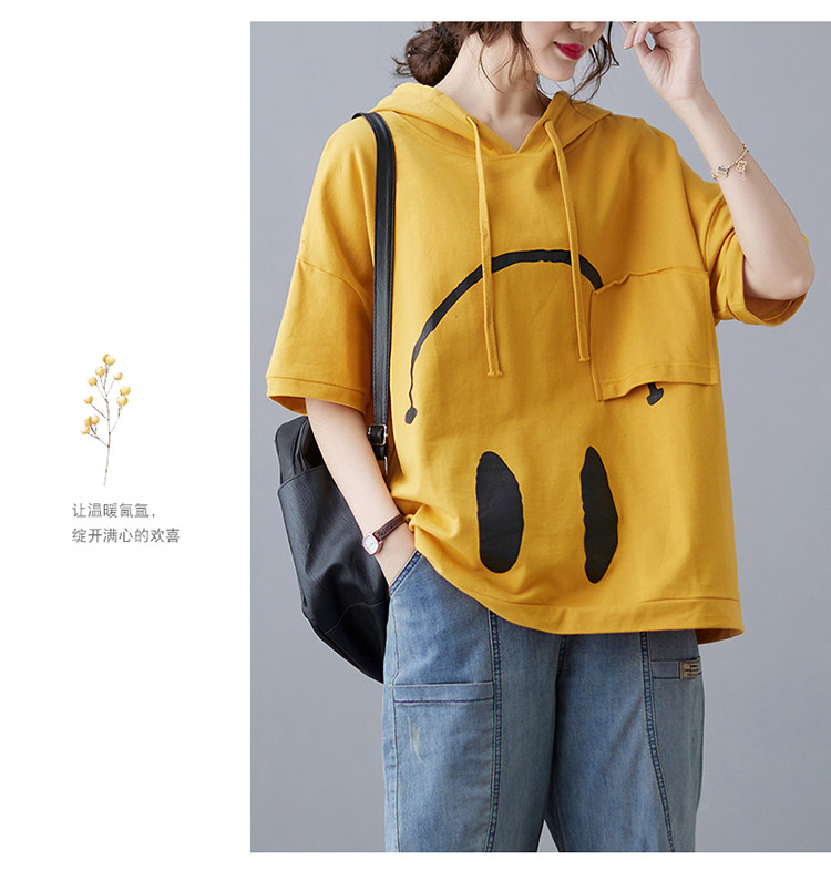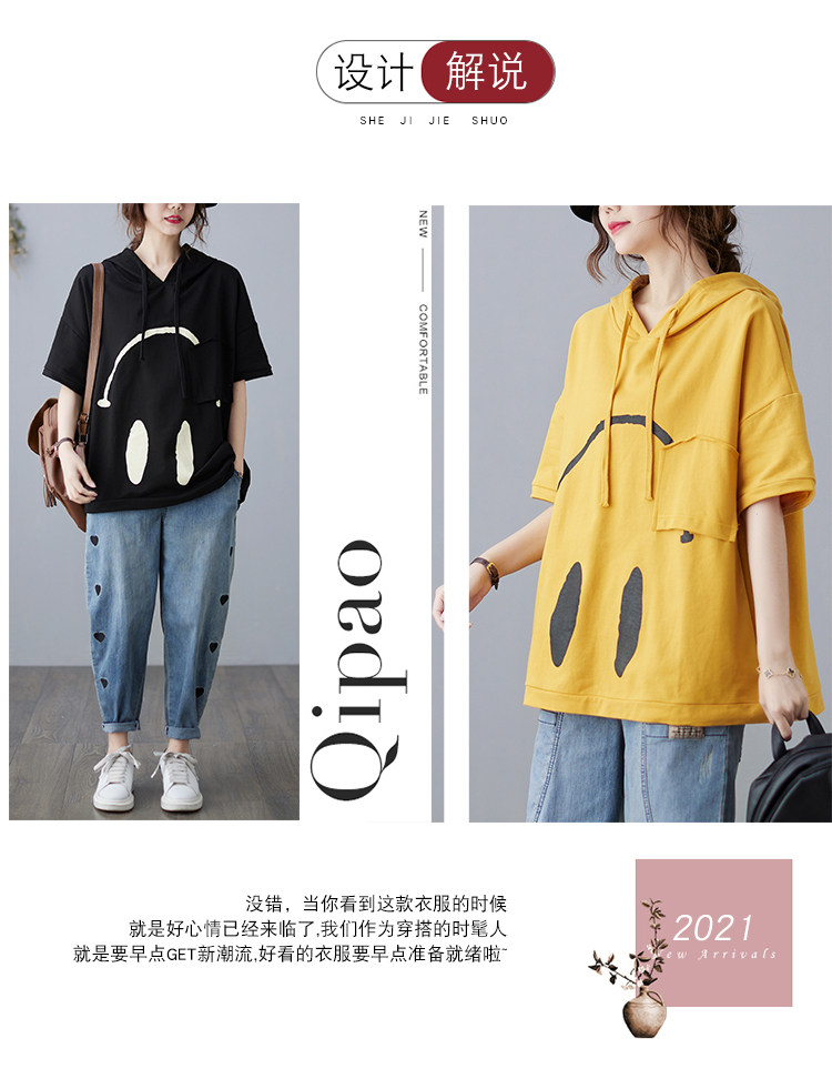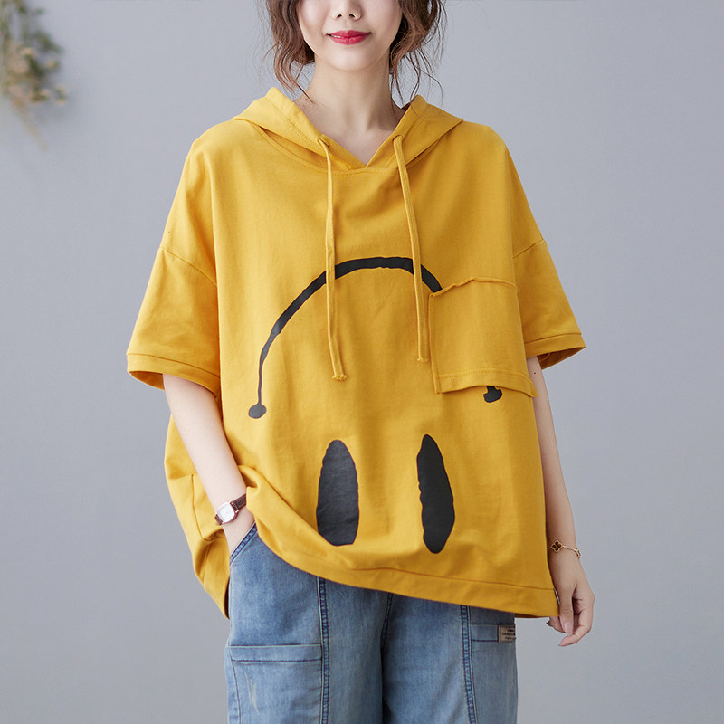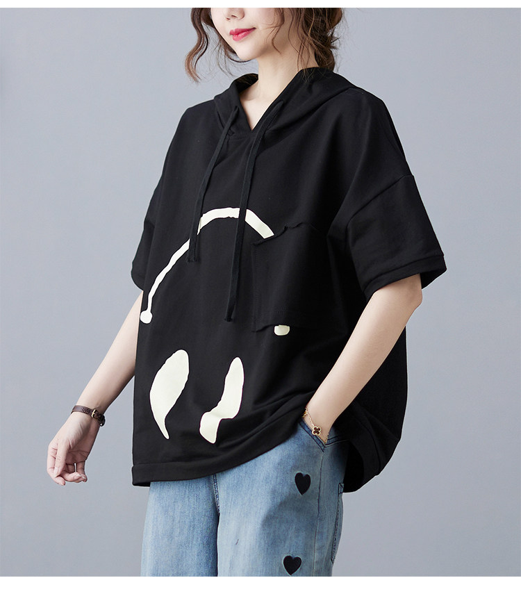 Футболка с капюшоном, свободный крой, короткий рукав