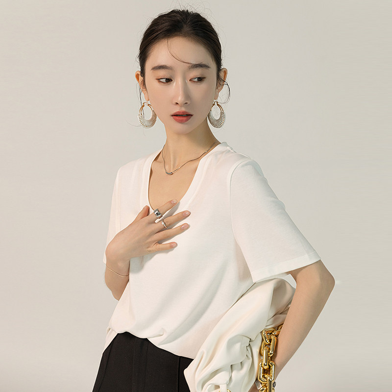 Классическая бархатная белая хлопковая футболка, свободный крой