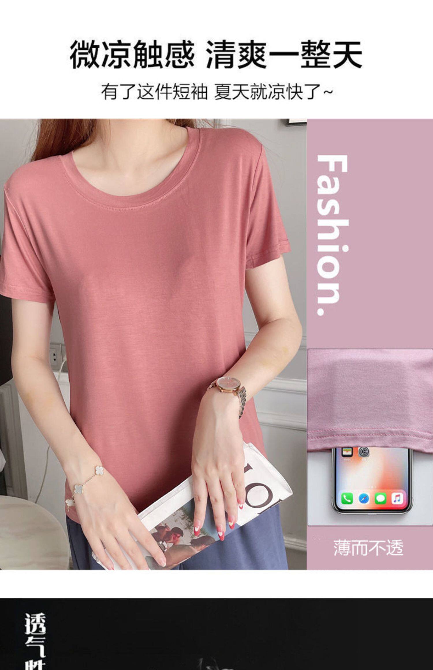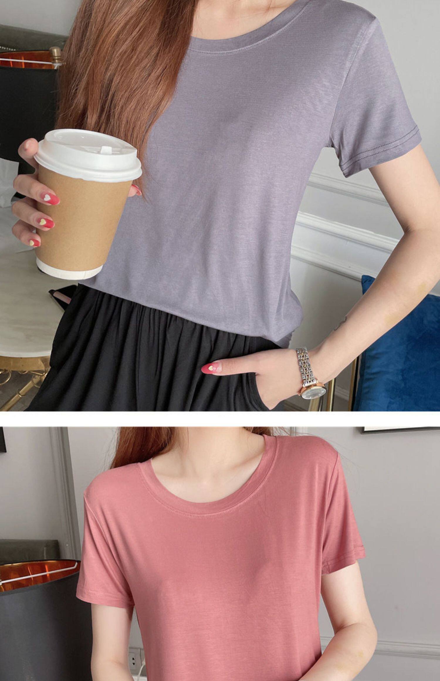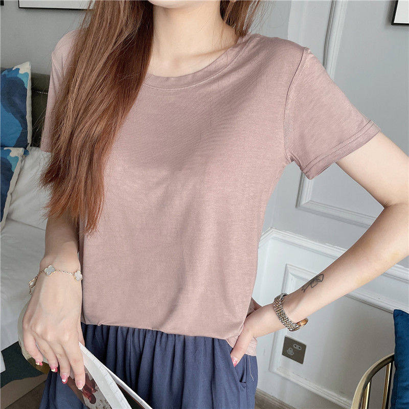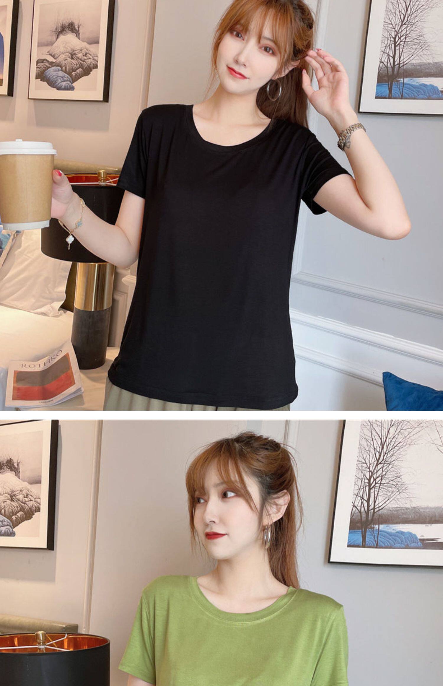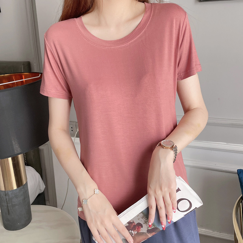 Женская летняя тонкая рубашка из модала с короткими рукавами и круглым вырезом, с половиной рукавов, свободная нижняя рубашка большого размера, универсальный топ