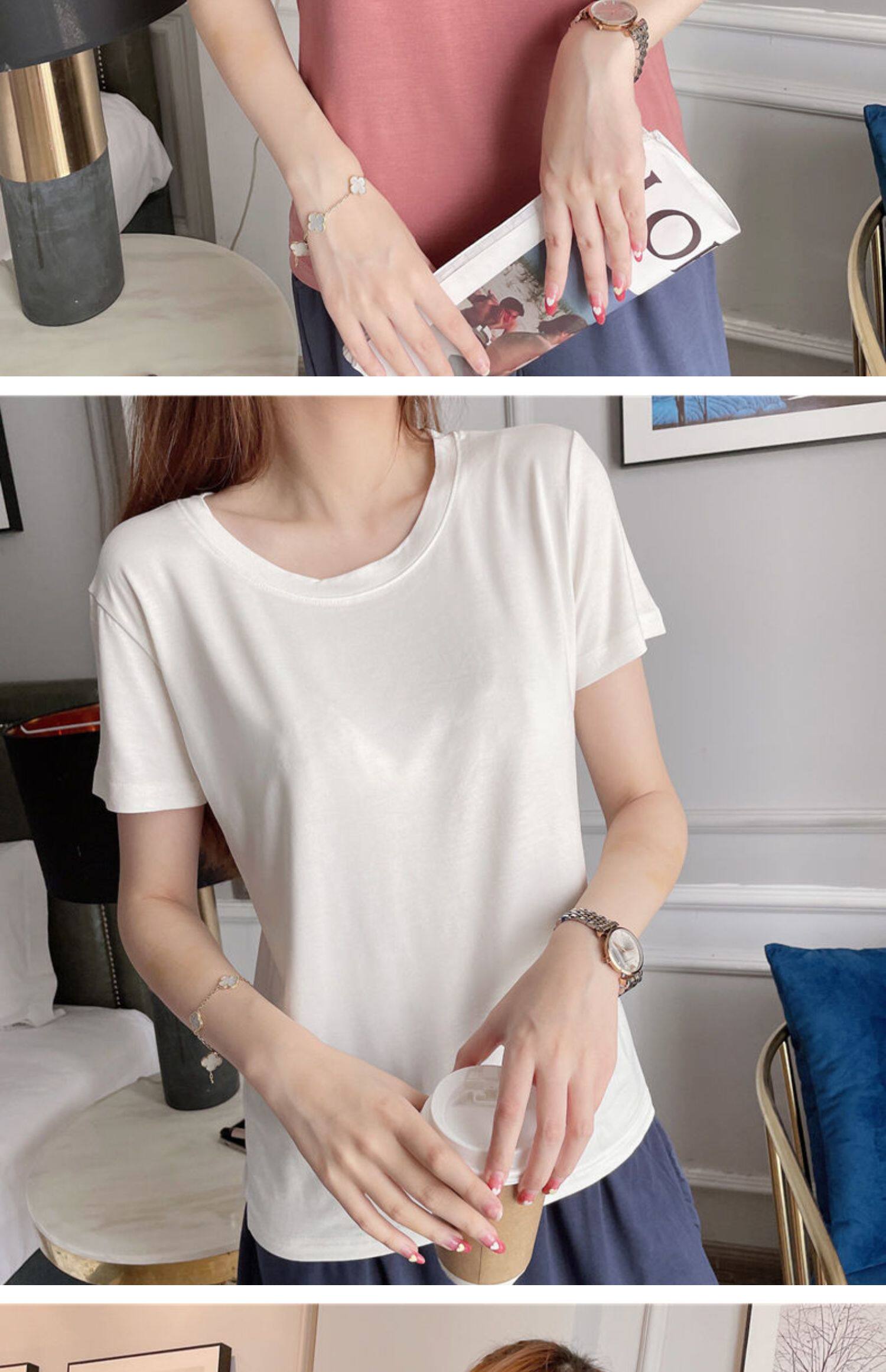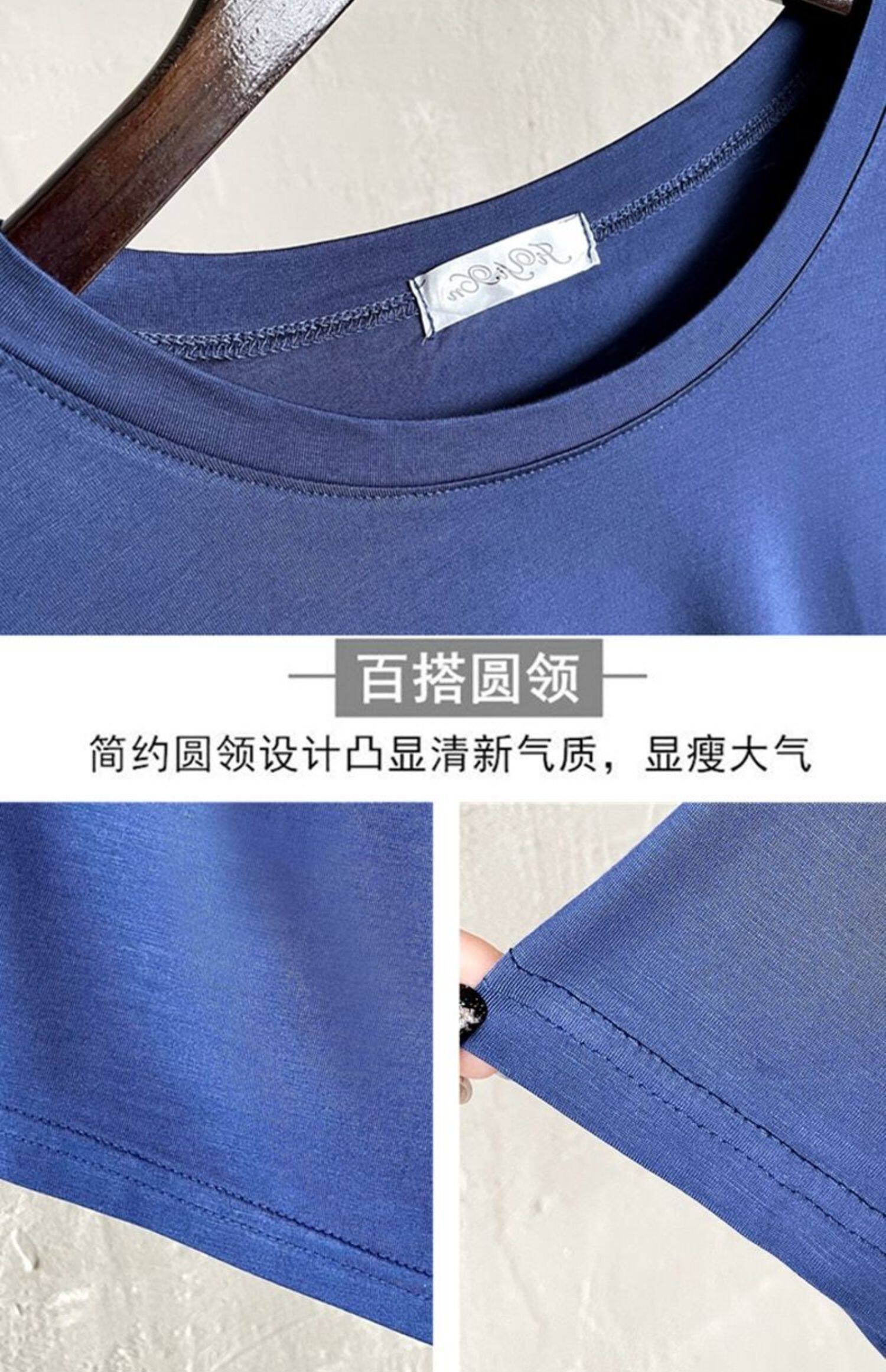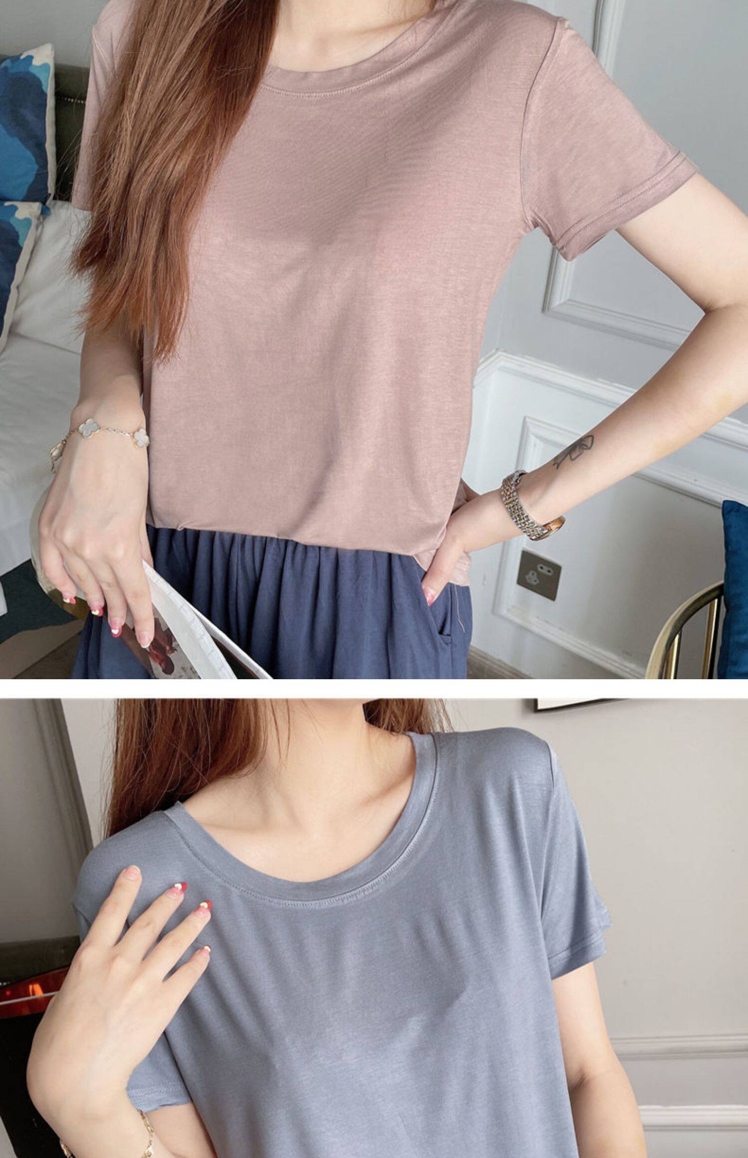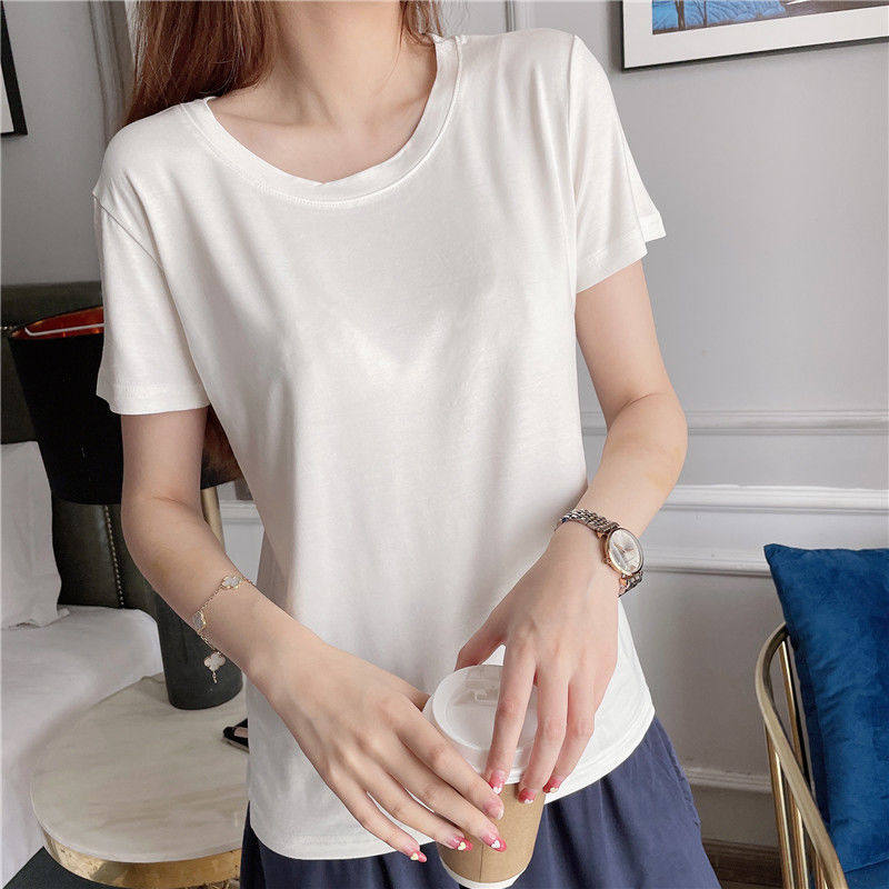 Женская летняя тонкая рубашка из модала с короткими рукавами и круглым вырезом, с половиной рукавов, свободная нижняя рубашка большого размера, универсальный топ