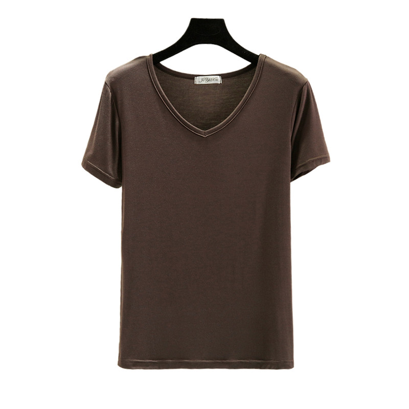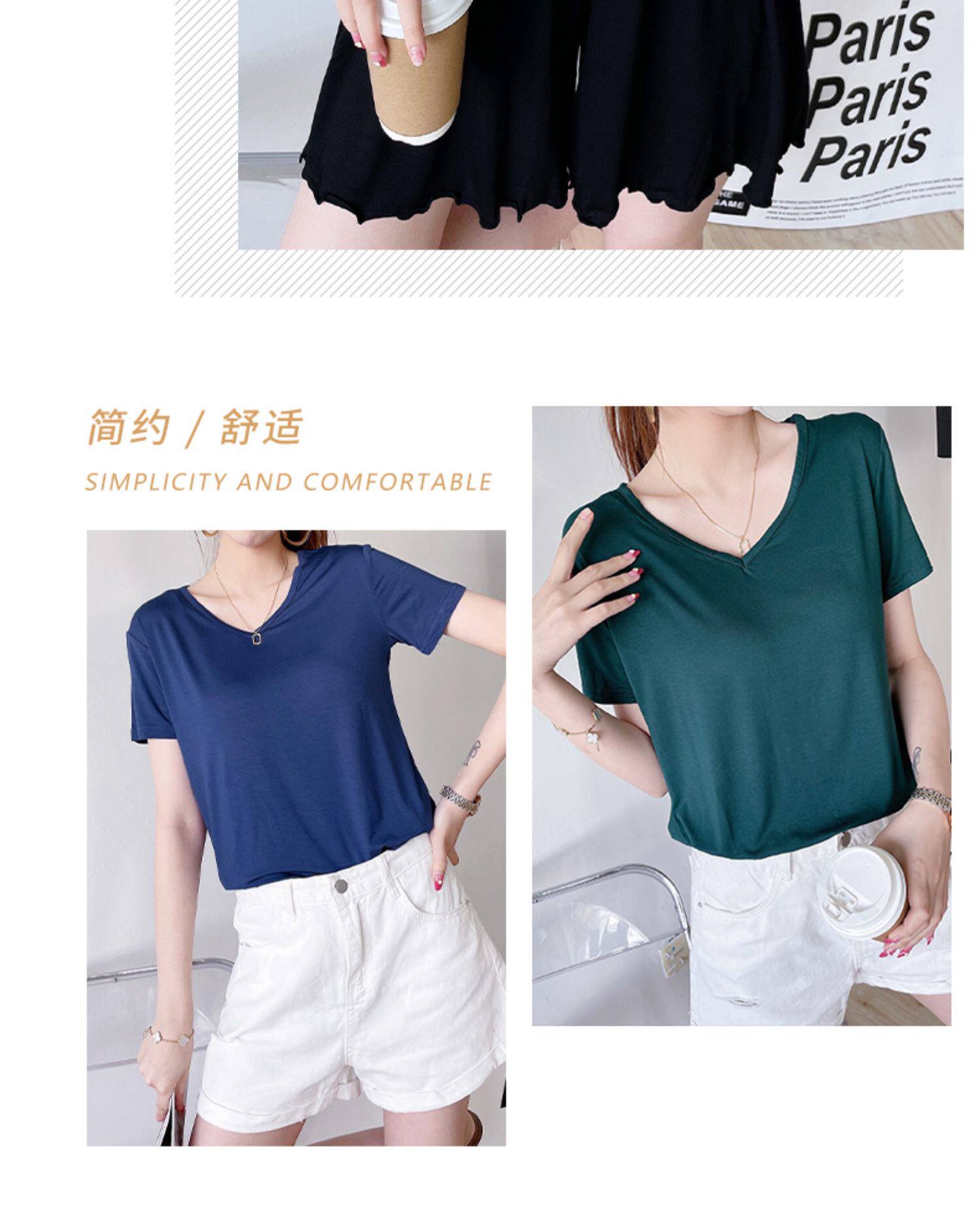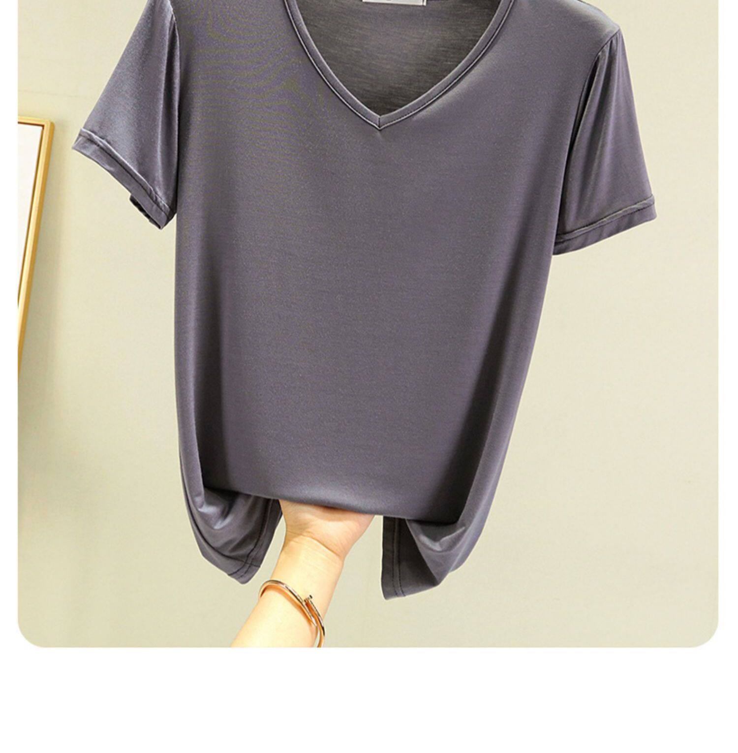 Летняя тонкая базовая рубашка для отдыха, футболка, V-образный вырез, короткий рукав, оверсайз