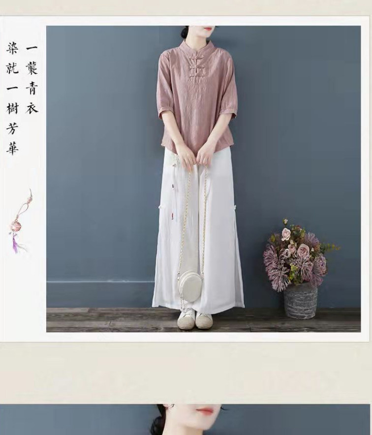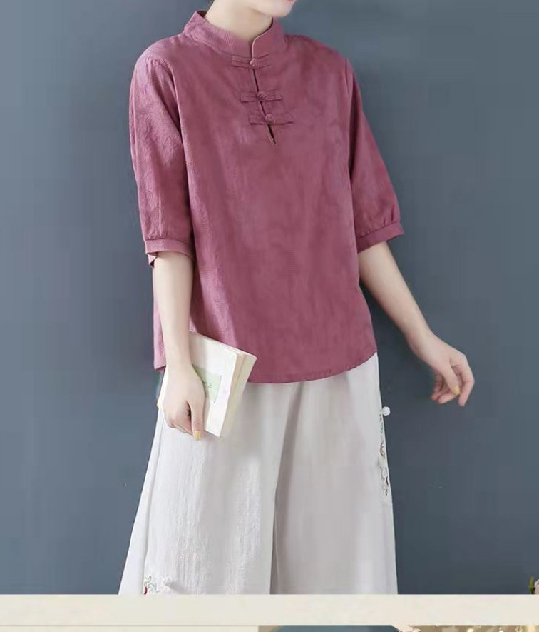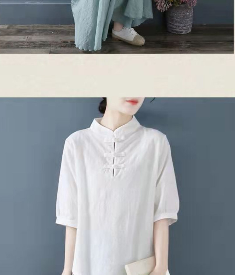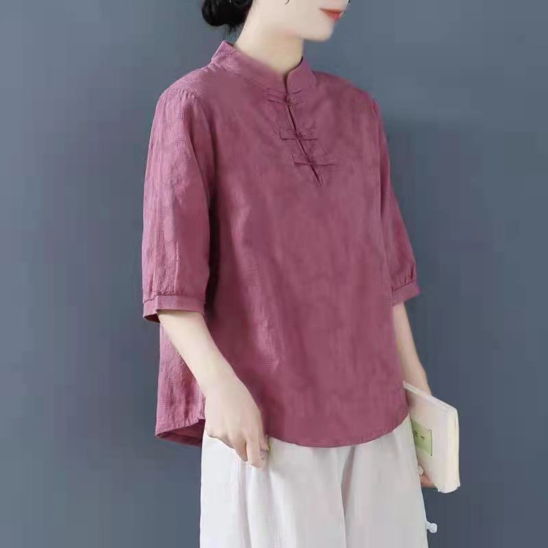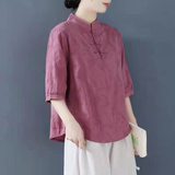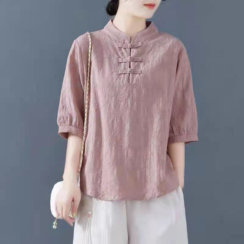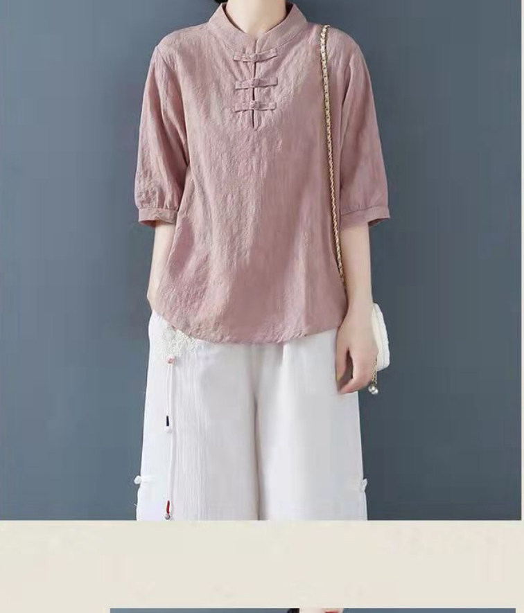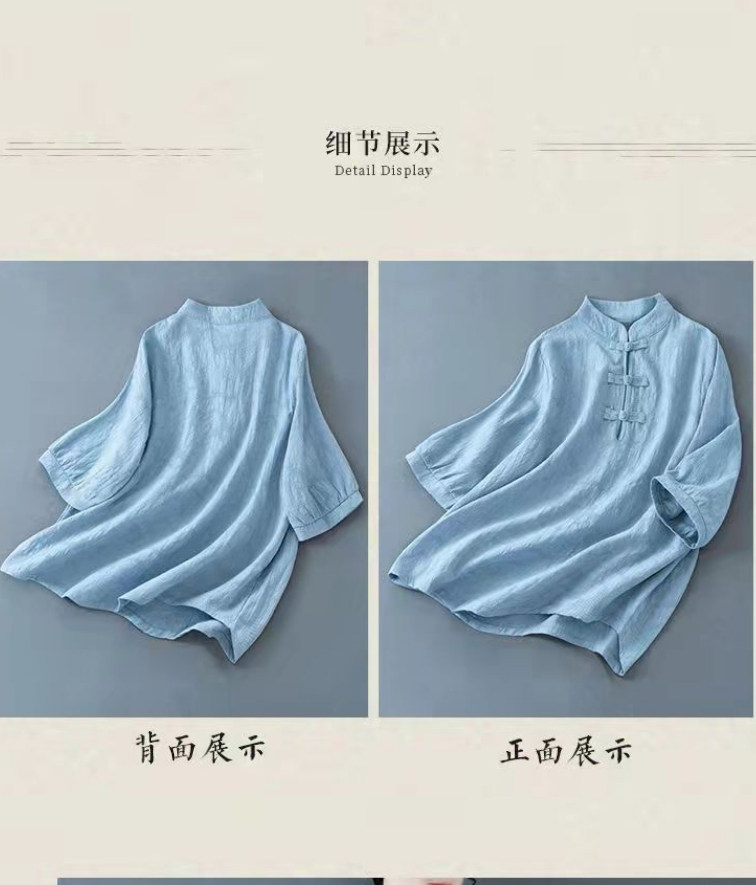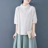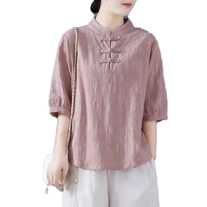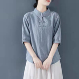 Внешняя торговля Французская рубашка с одной пластиной и пуговицами из хлопка и льна с рукавами пять четвертей в китайском стиле с воротником-стойкой Дзен чайный костюм летняя льняная футболка большого размера женская одежда