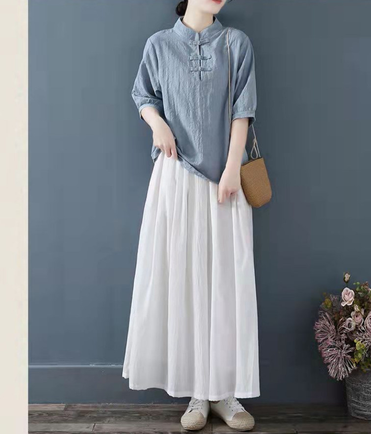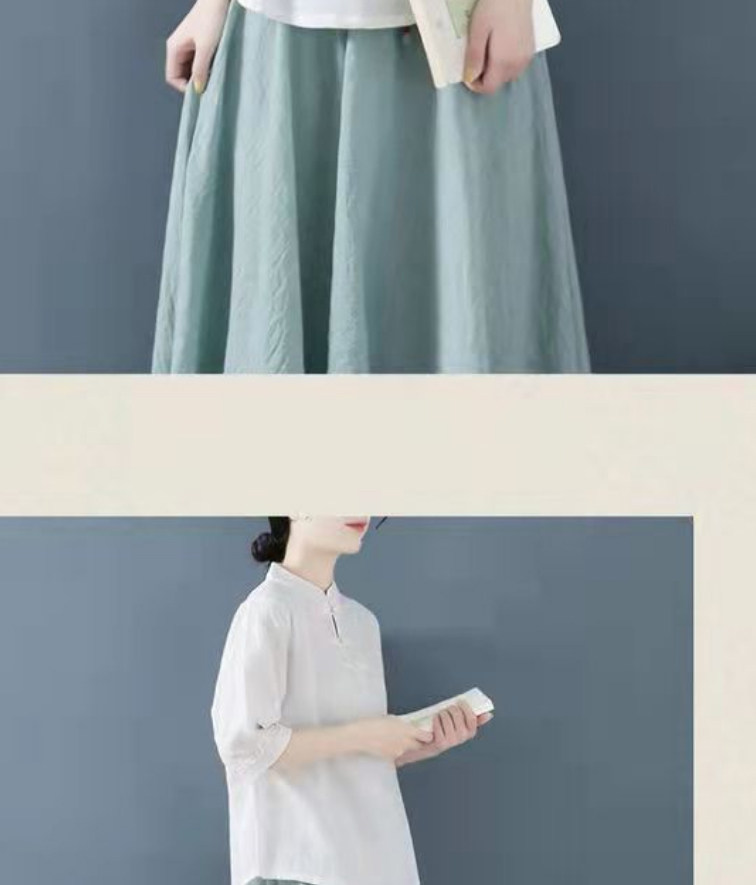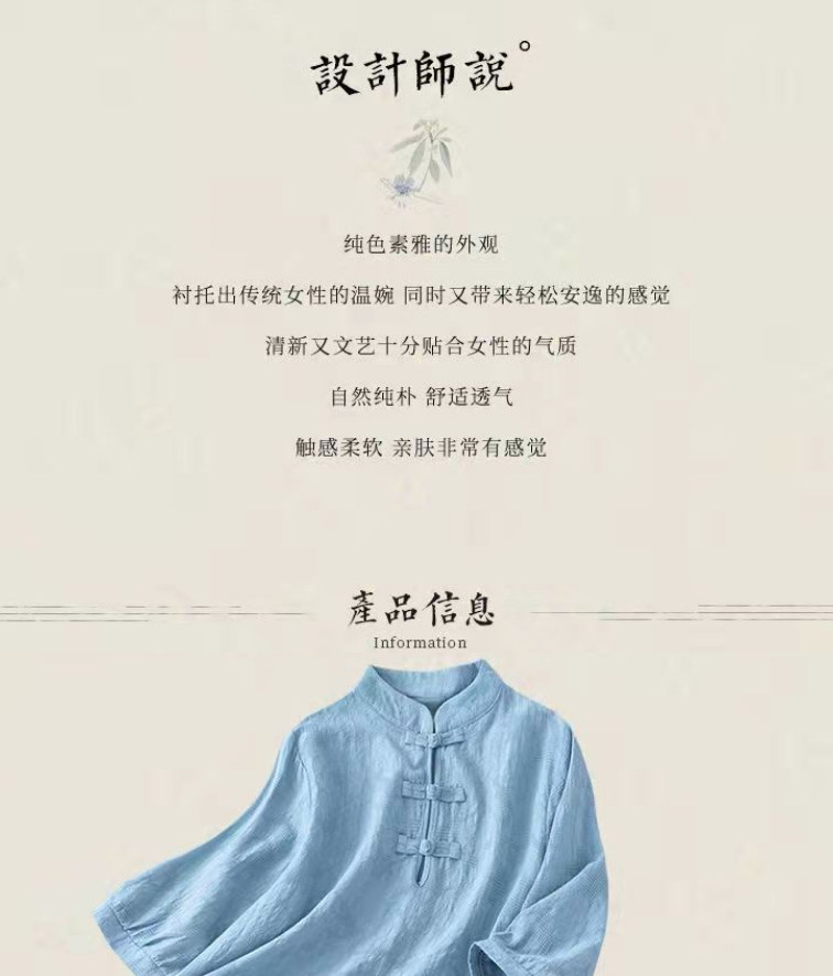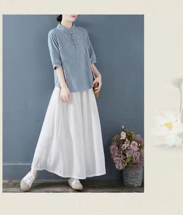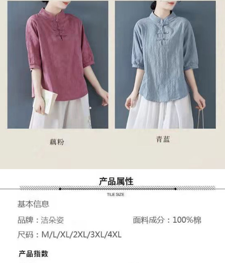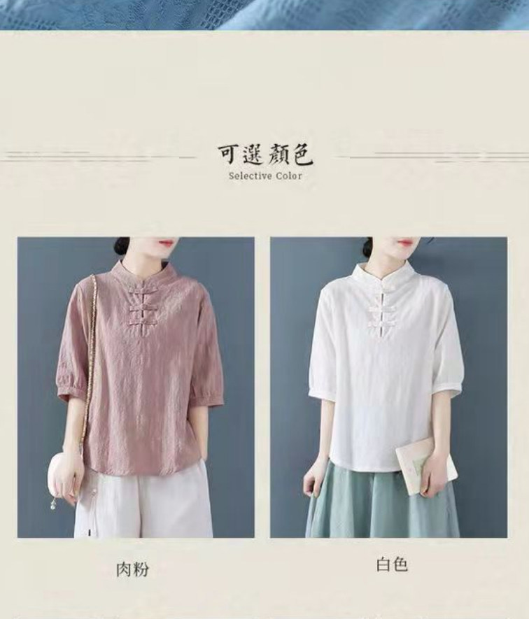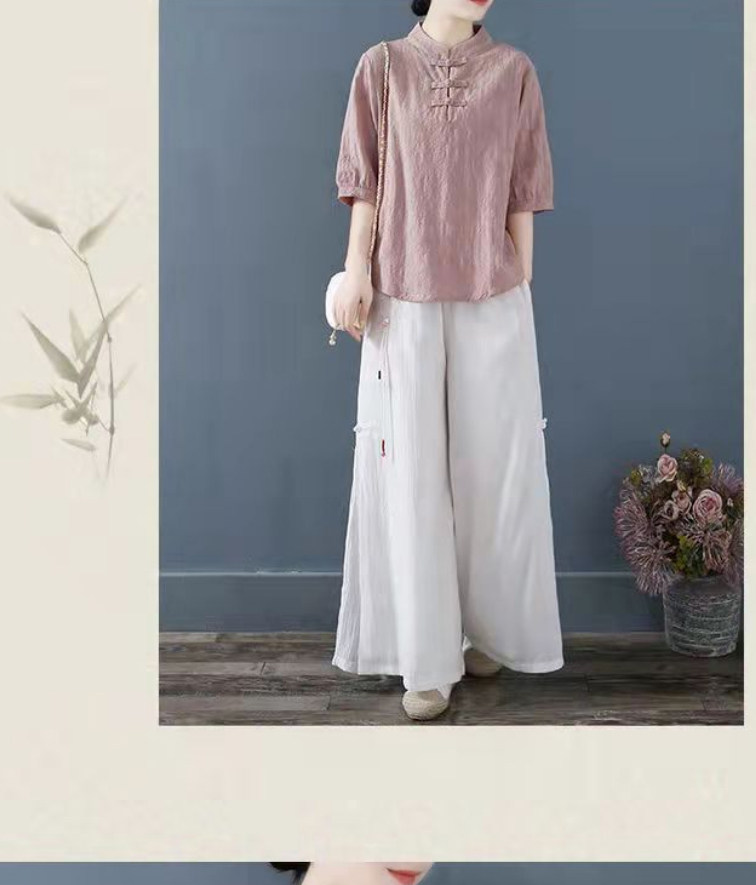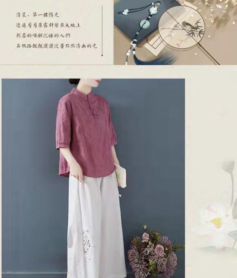 Внешняя торговля Французская рубашка с одной пластиной и пуговицами из хлопка и льна с рукавами пять четвертей в китайском стиле с воротником-стойкой Дзен чайный костюм летняя льняная футболка большого размера женская одежда