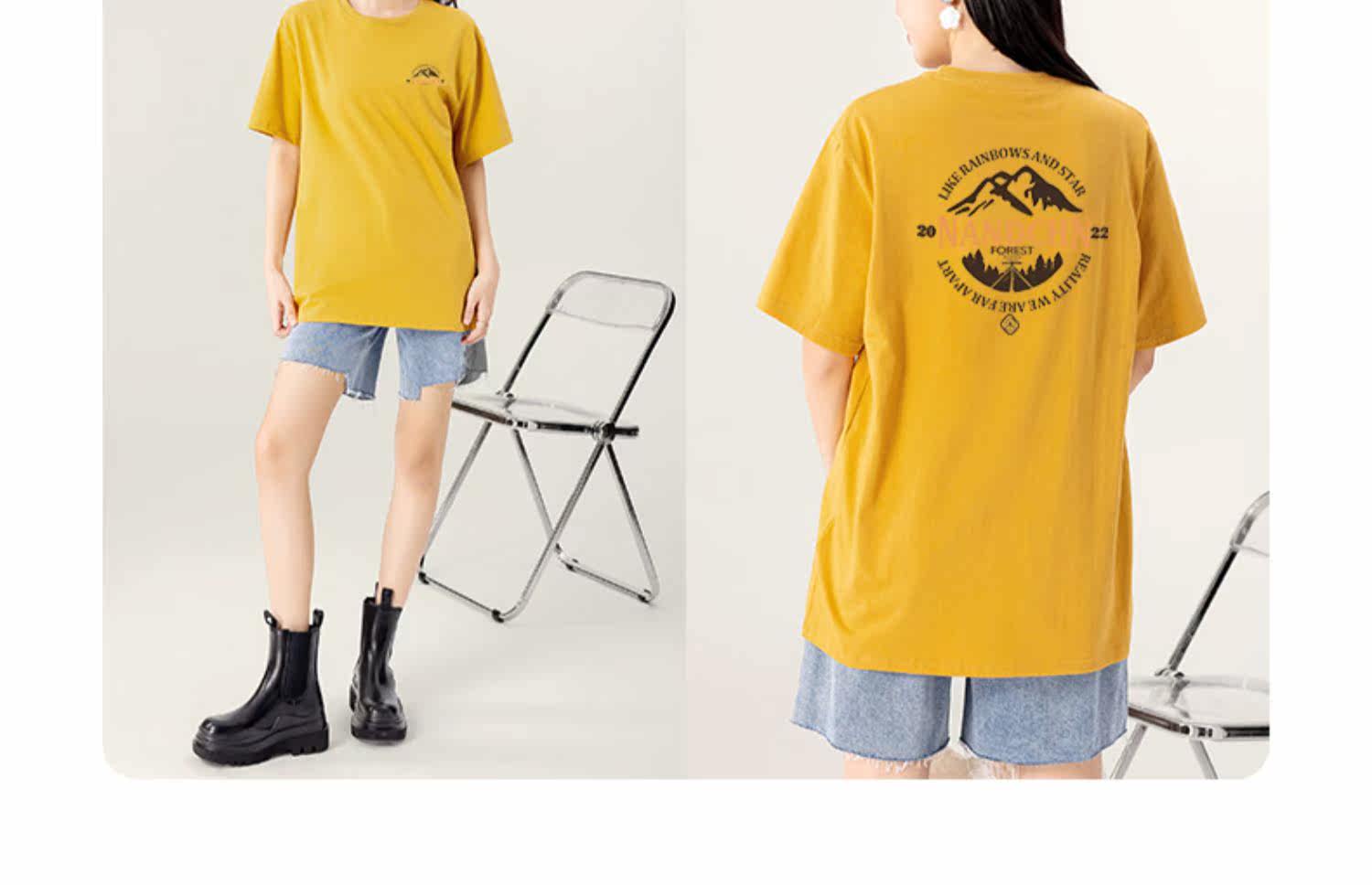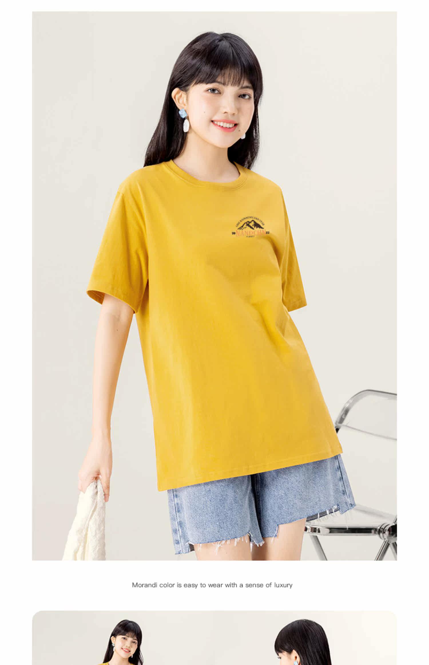 sanduolemen/山岛里美 Весенняя хлопковая футболка с круглым воротником, оверсайз