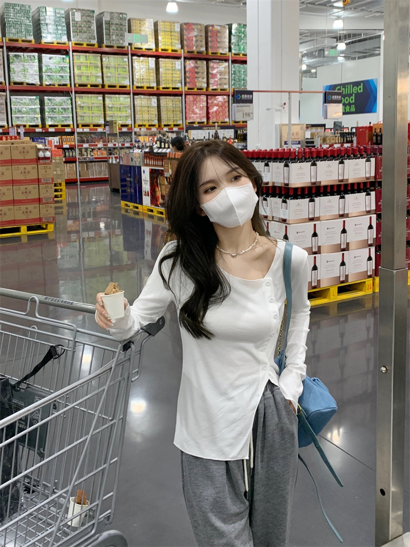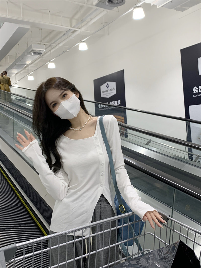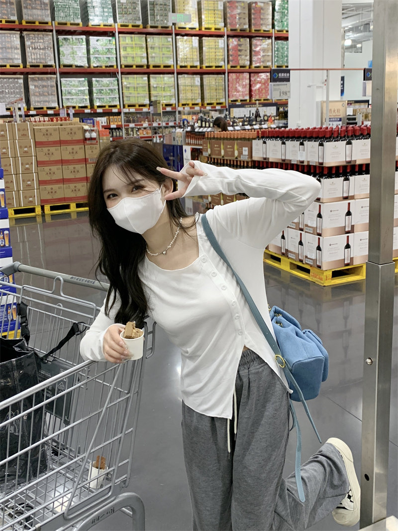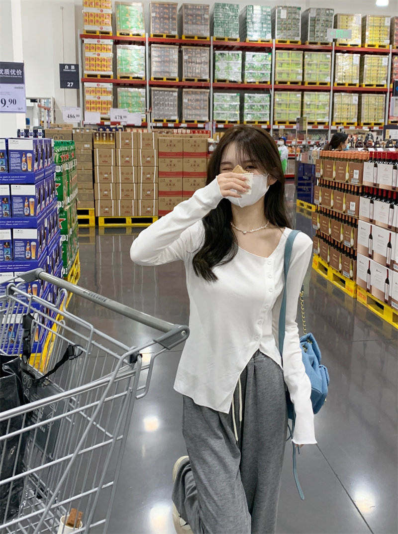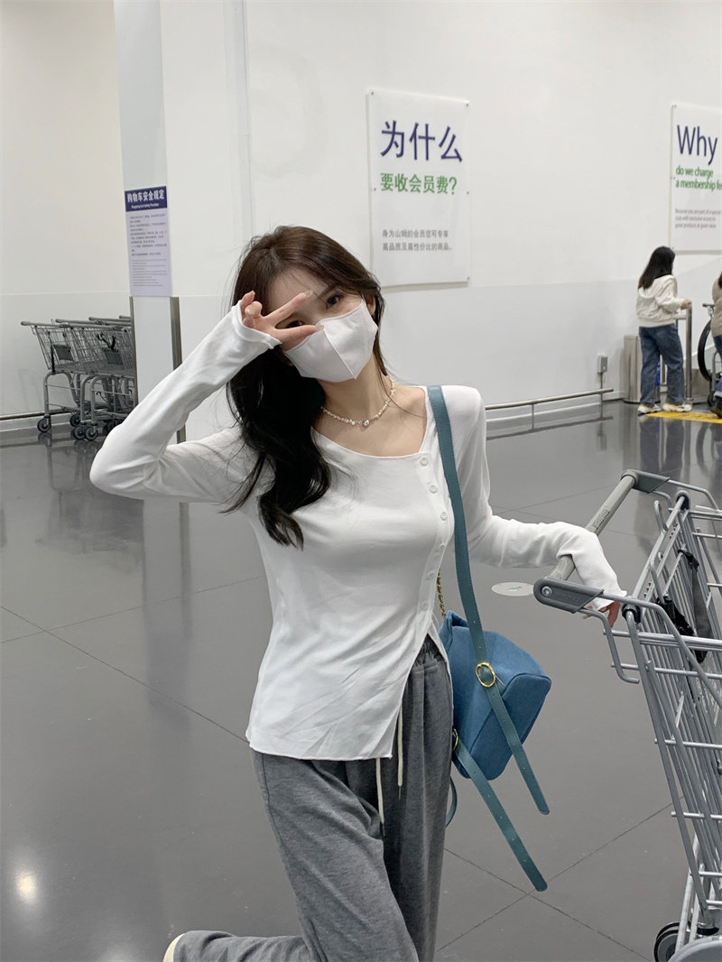 Белый трикотажный свитер, футболка, чай, тонкий осенний брендовый лонгслив