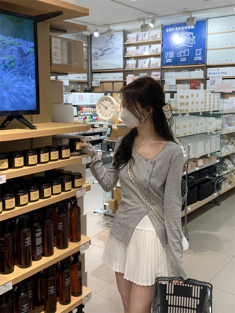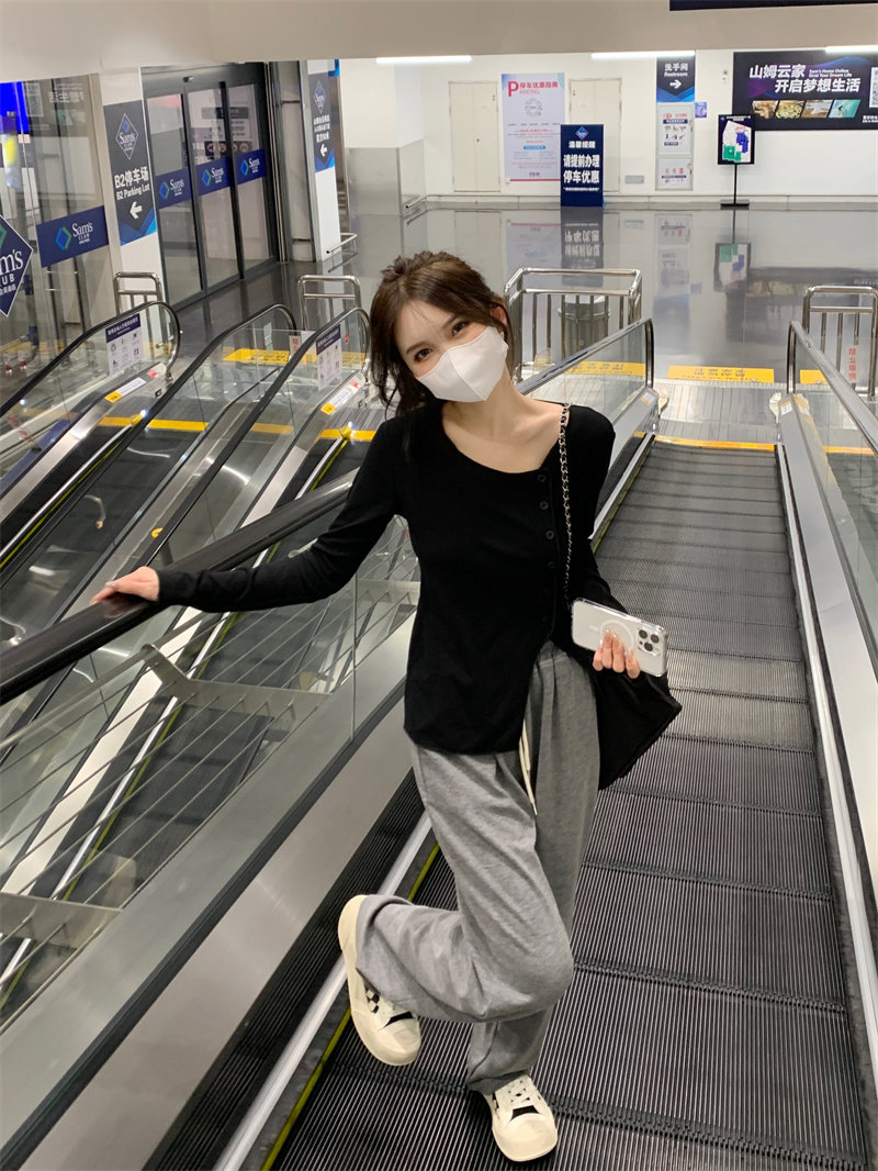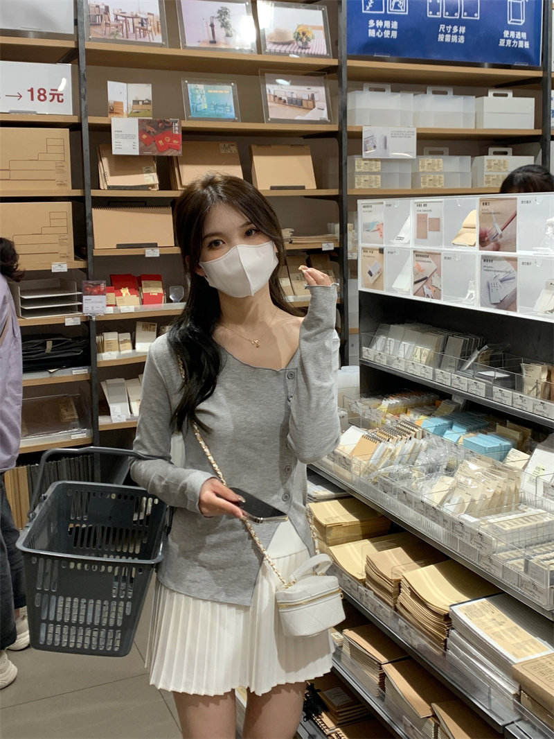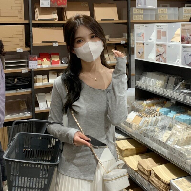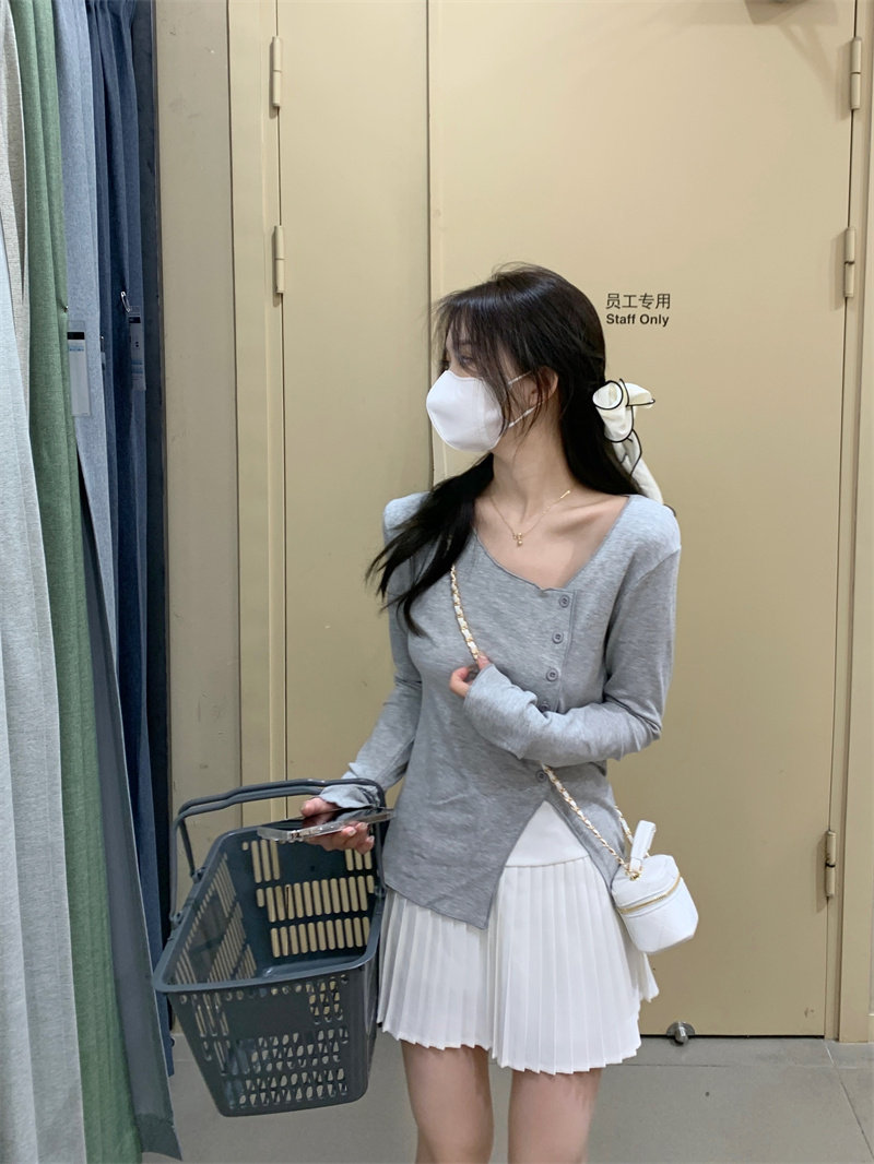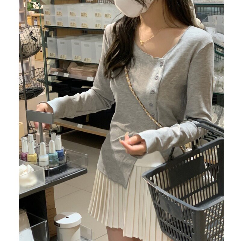 Белый трикотажный свитер, футболка, чай, тонкий осенний брендовый лонгслив