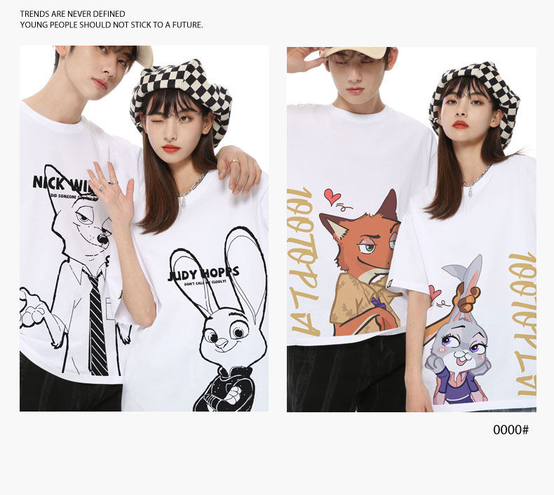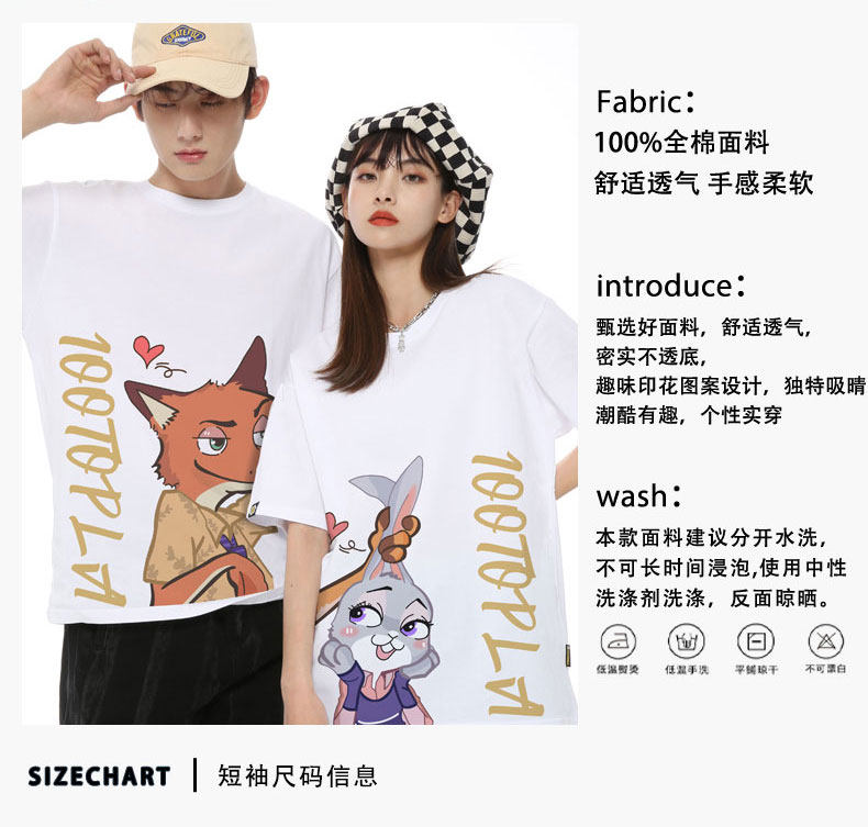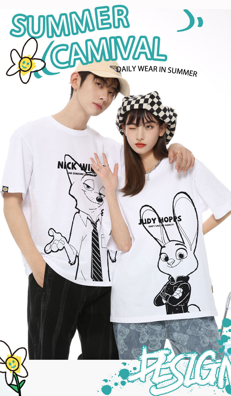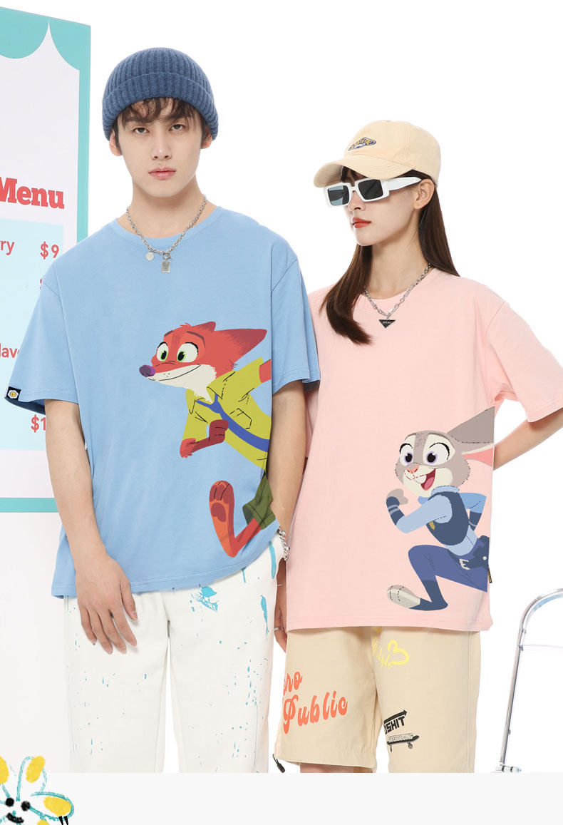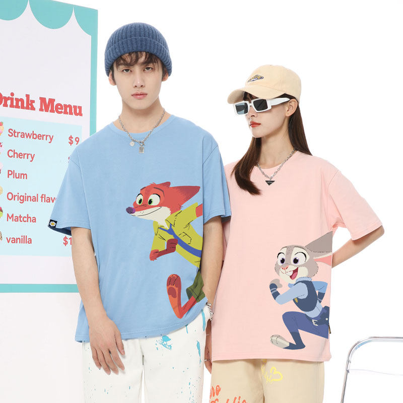 Парная одежда, мультяшная футболка, для влюбленных, короткий рукав, оверсайз