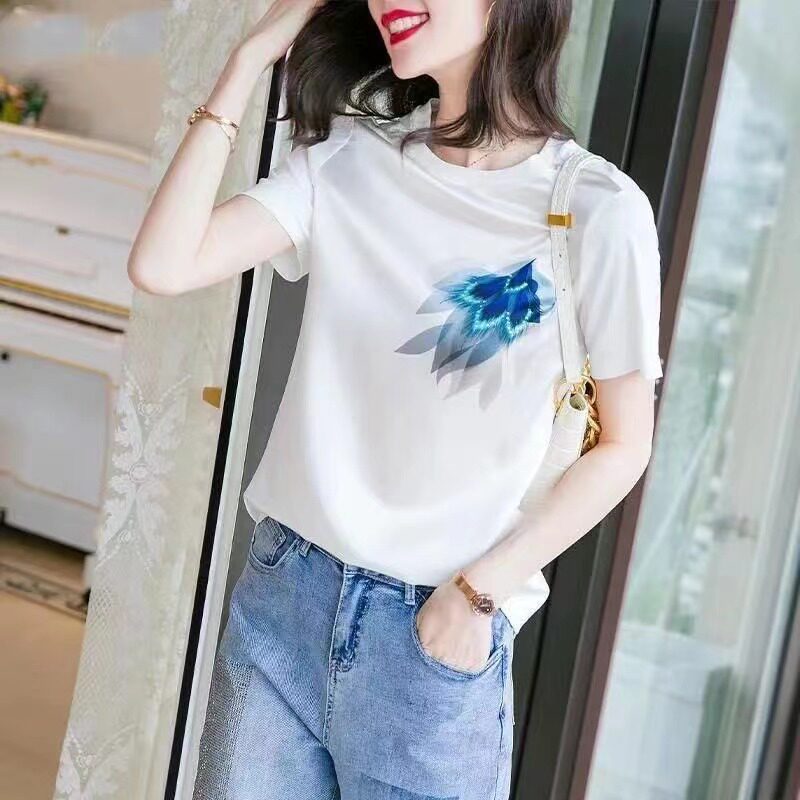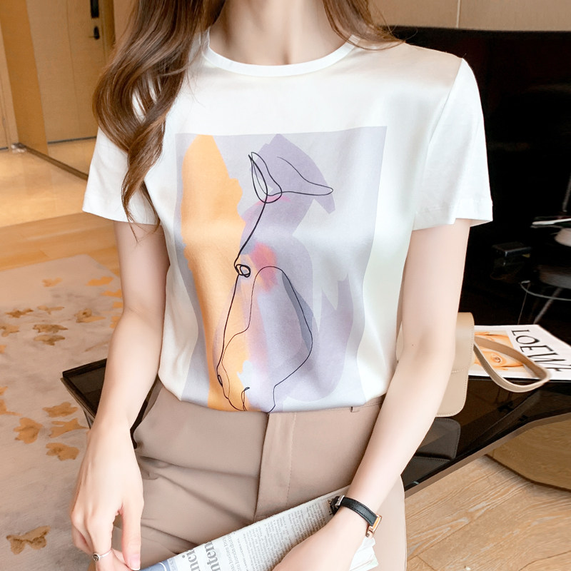 (Трансграничная торговля), брендовая белая шелковая футболка, короткий рукав