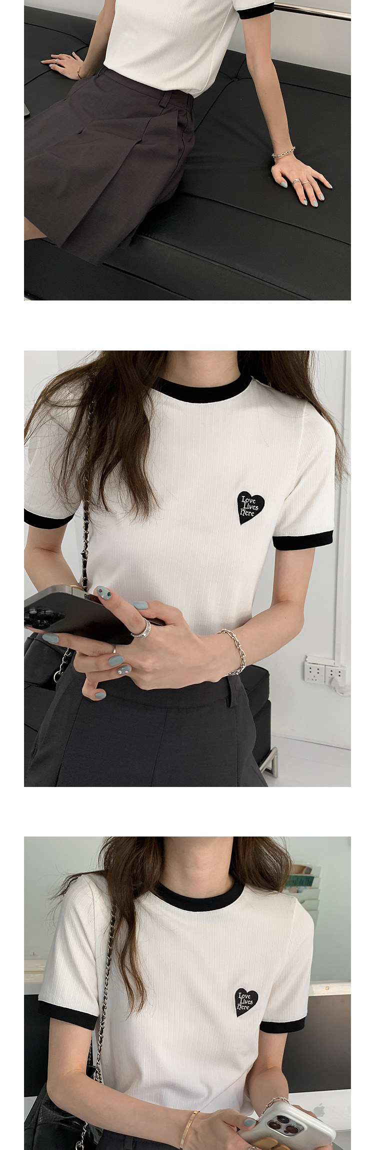Tide, летняя белая короткая футболка с круглым воротником, с вышивкой, коллекция 2022, короткий рукав