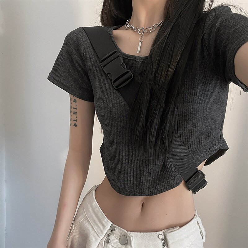 Короткая летняя приталенная брендовая футболка, европейский стиль, высокая талия, короткий рукав