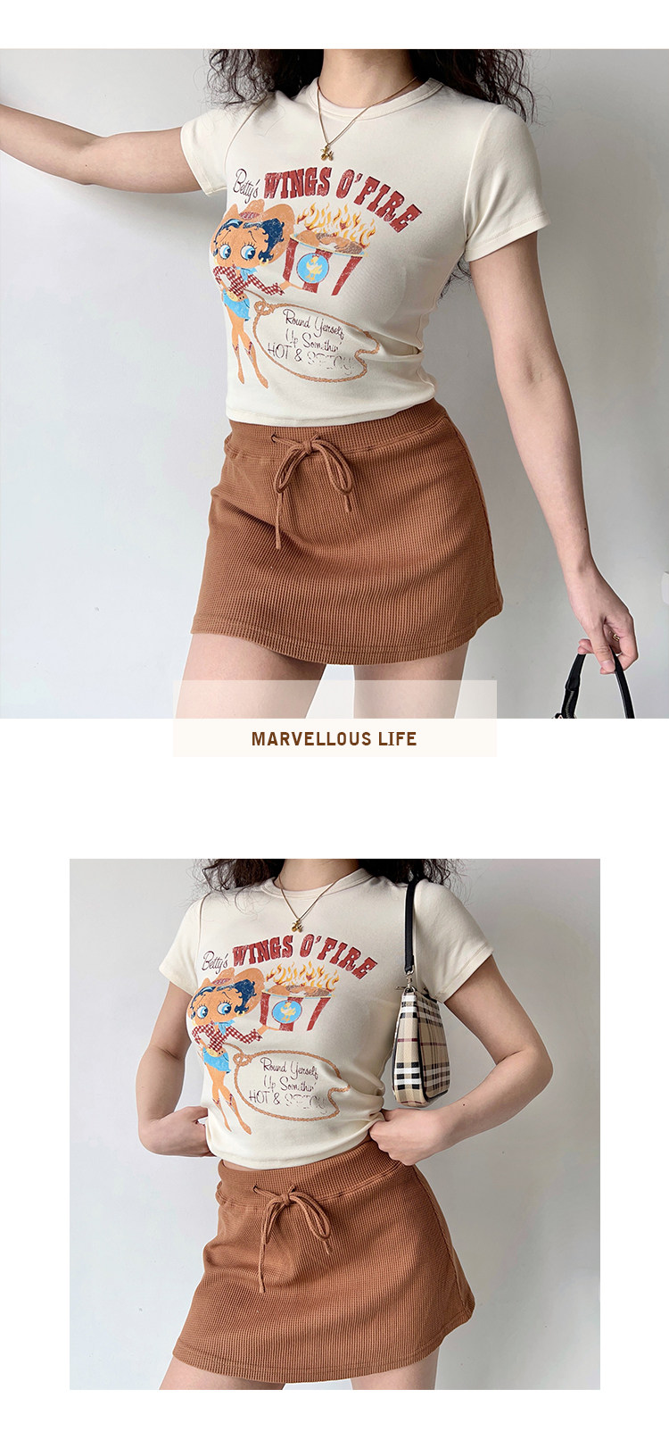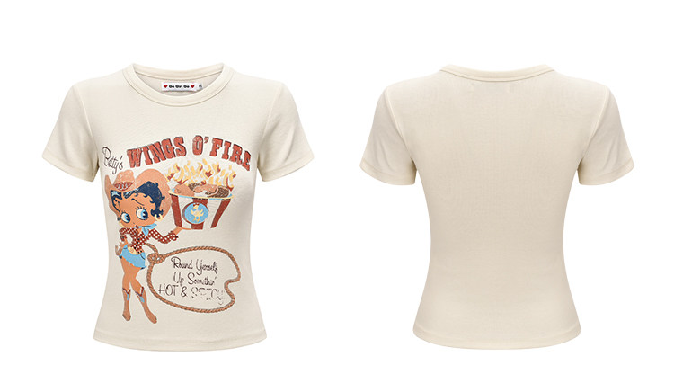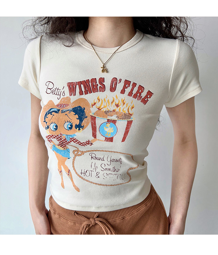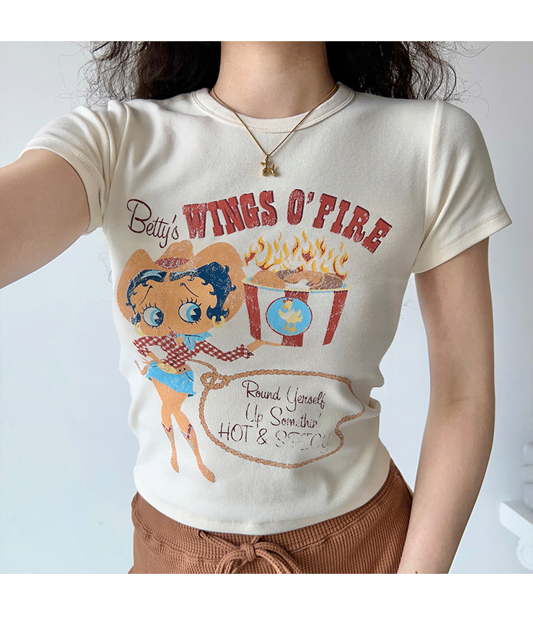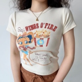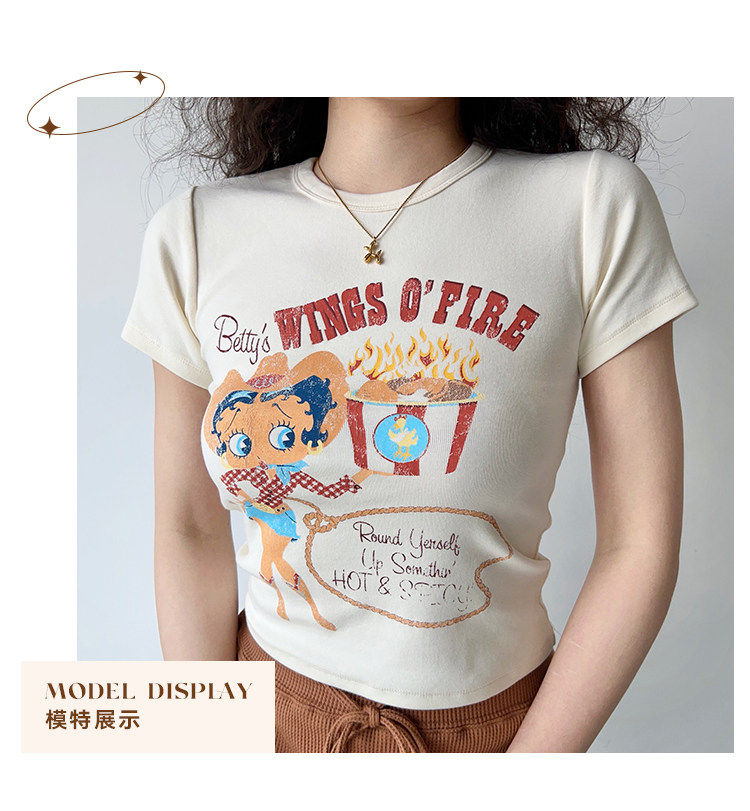 Ретро мультяшная футболка с коротким рукавом, в американском стиле, облегающий крой