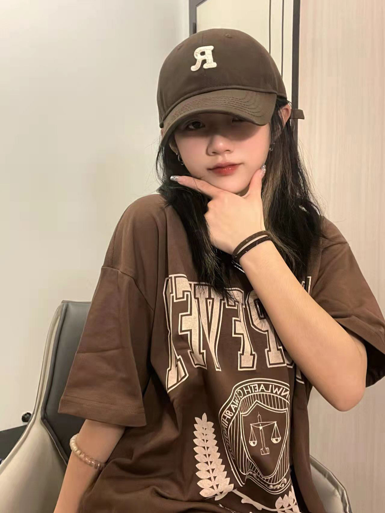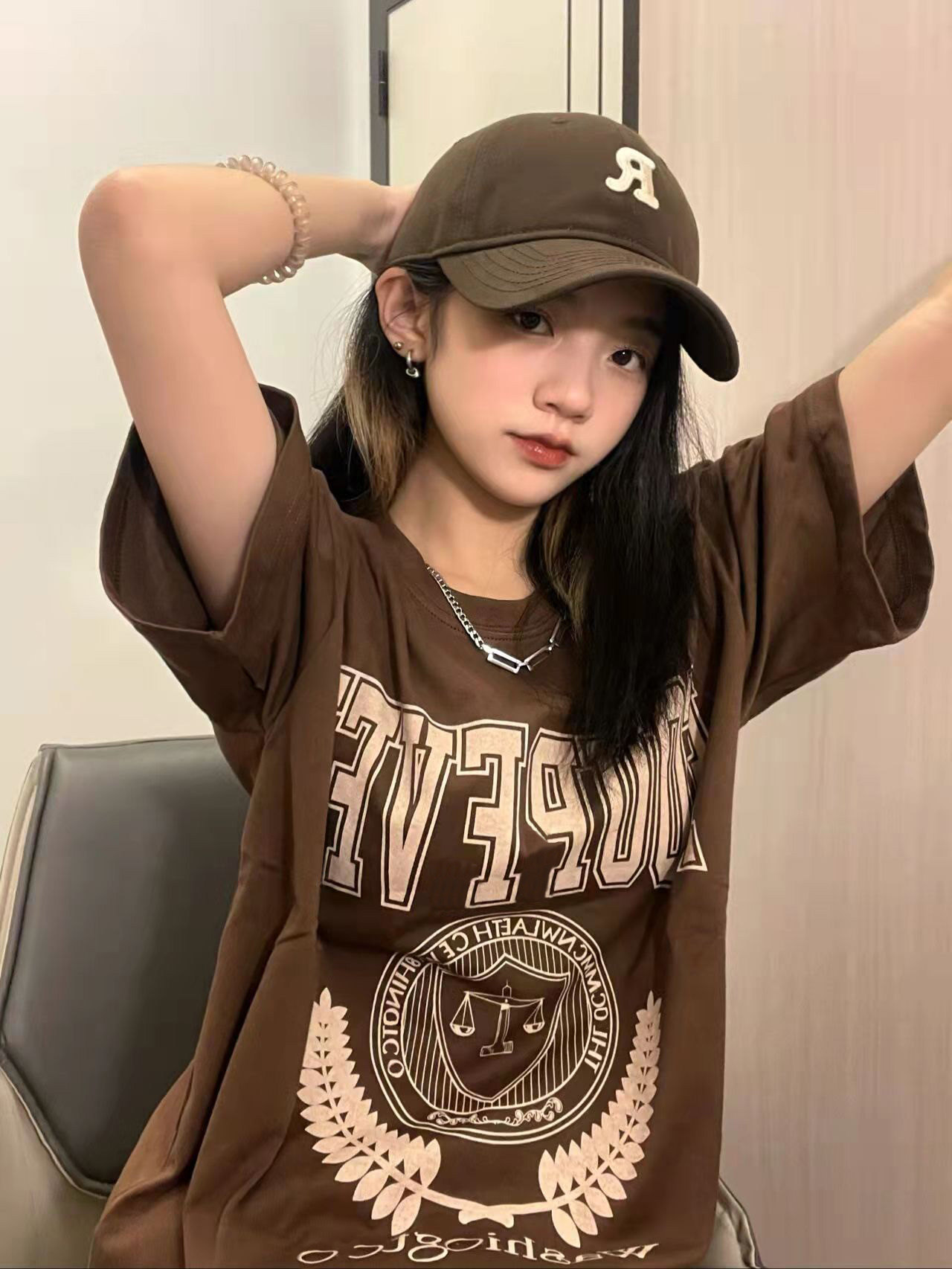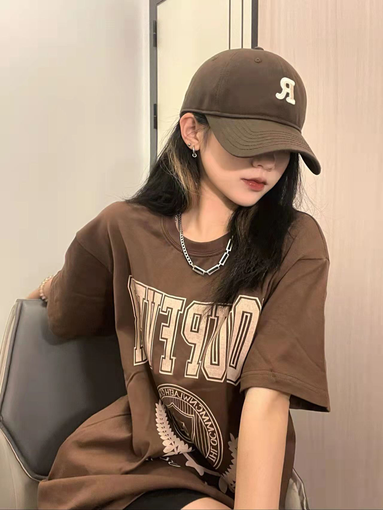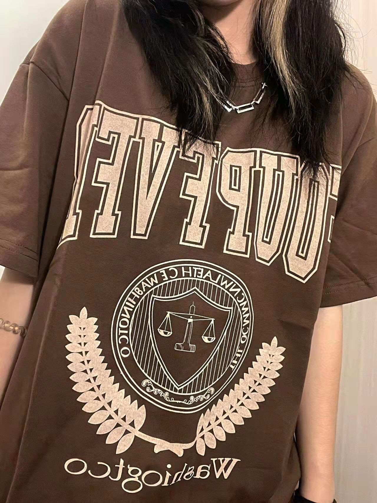 Tide, ретро коричневая летняя сексуальная футболка, в американском стиле, свободный крой, оверсайз