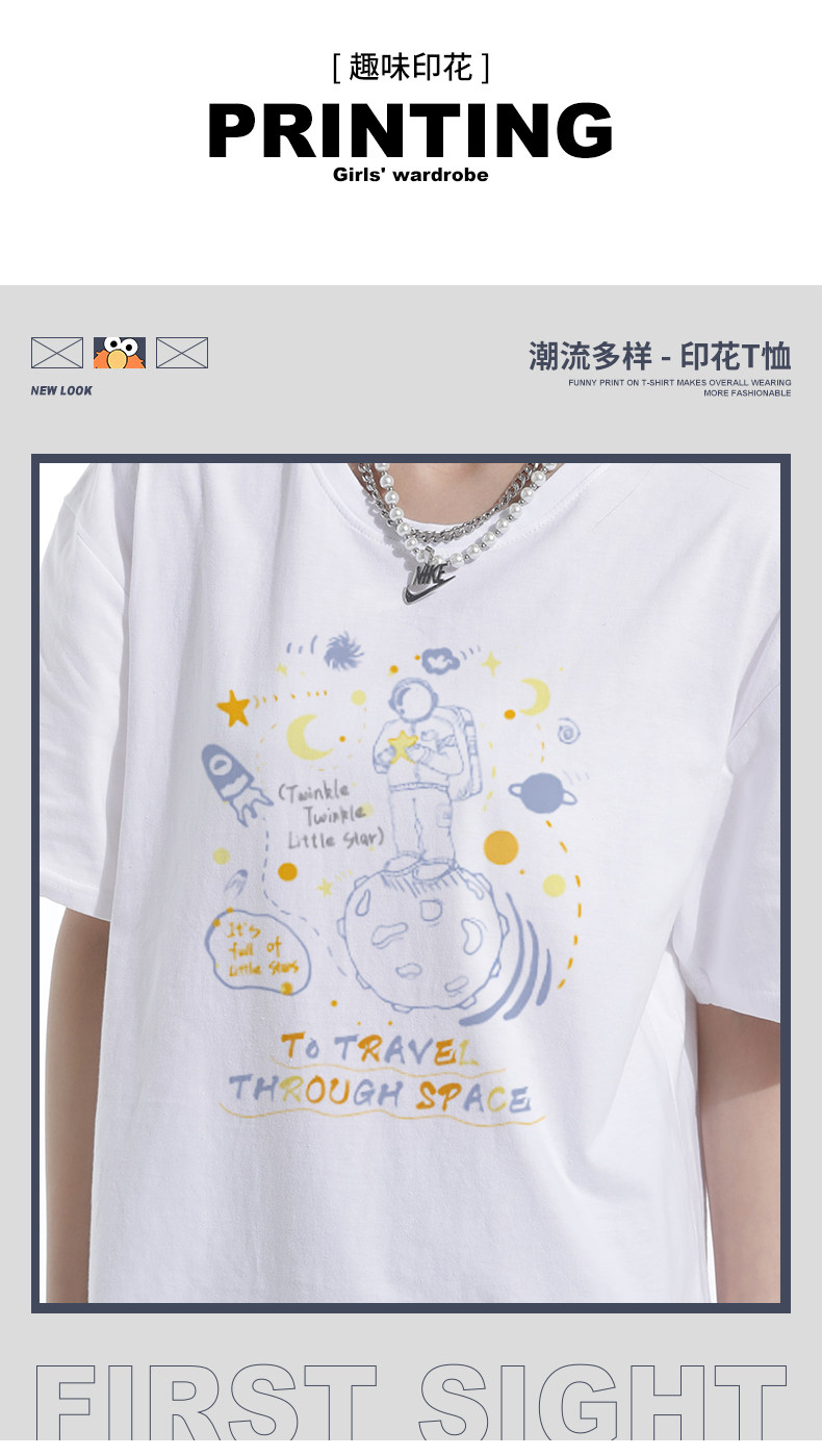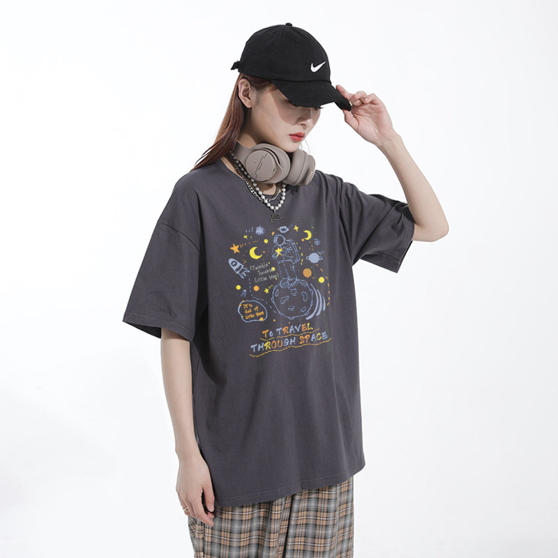 Летняя милая футболка с коротким рукавом для отдыха с круглым воротником, свободный крой