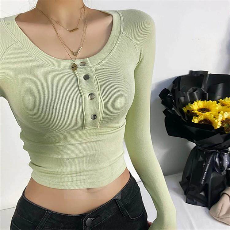 % Пуговица футболка с длинным рукавом женская мода женская сексуальная соль