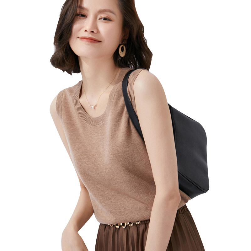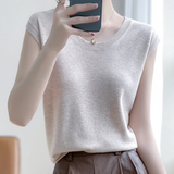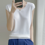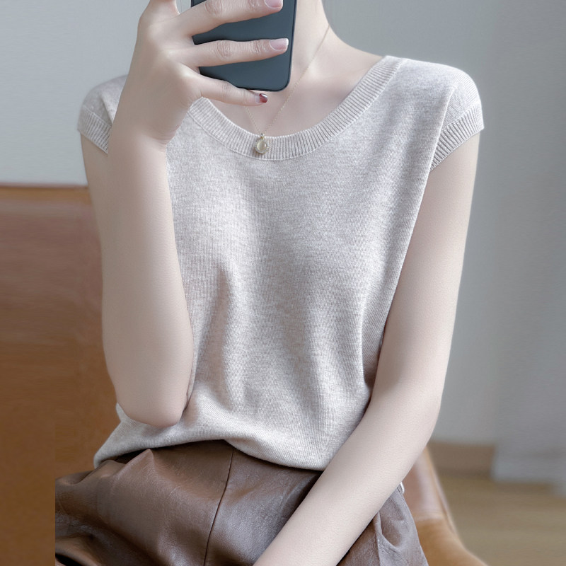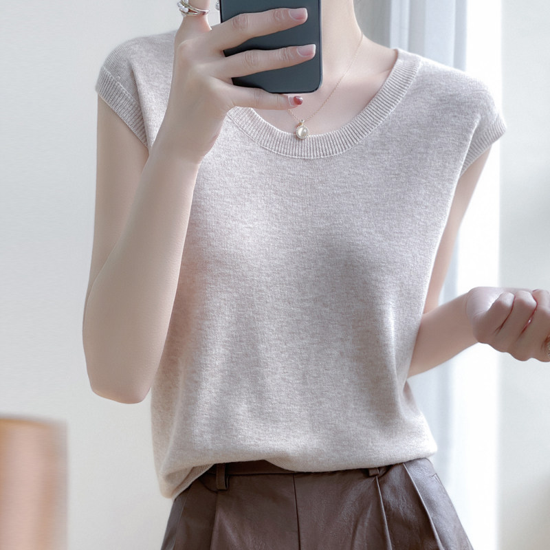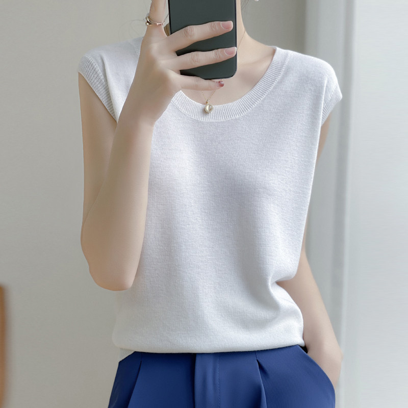 Летняя футболка с круглым воротником, трикотажный жилет без рукавов, приталенная базовая приятная телу брендовая майка топ, коллекция 2022