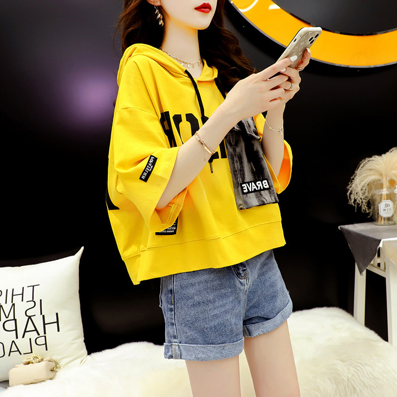 Летняя футболка с коротким рукавом, короткая сексуальная модная толстовка с капюшоном, оверсайз, в корейском стиле