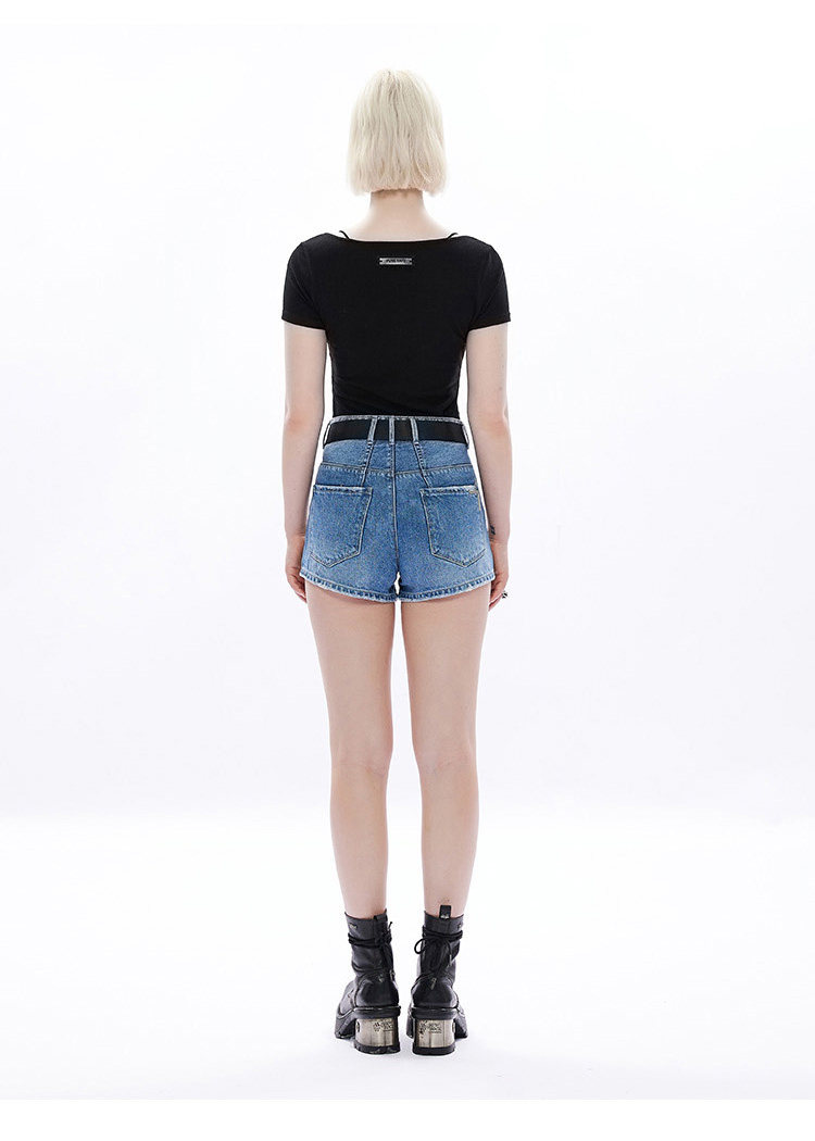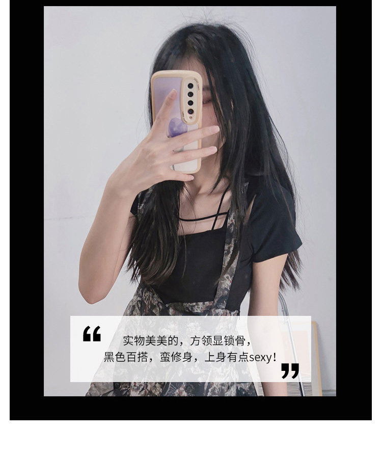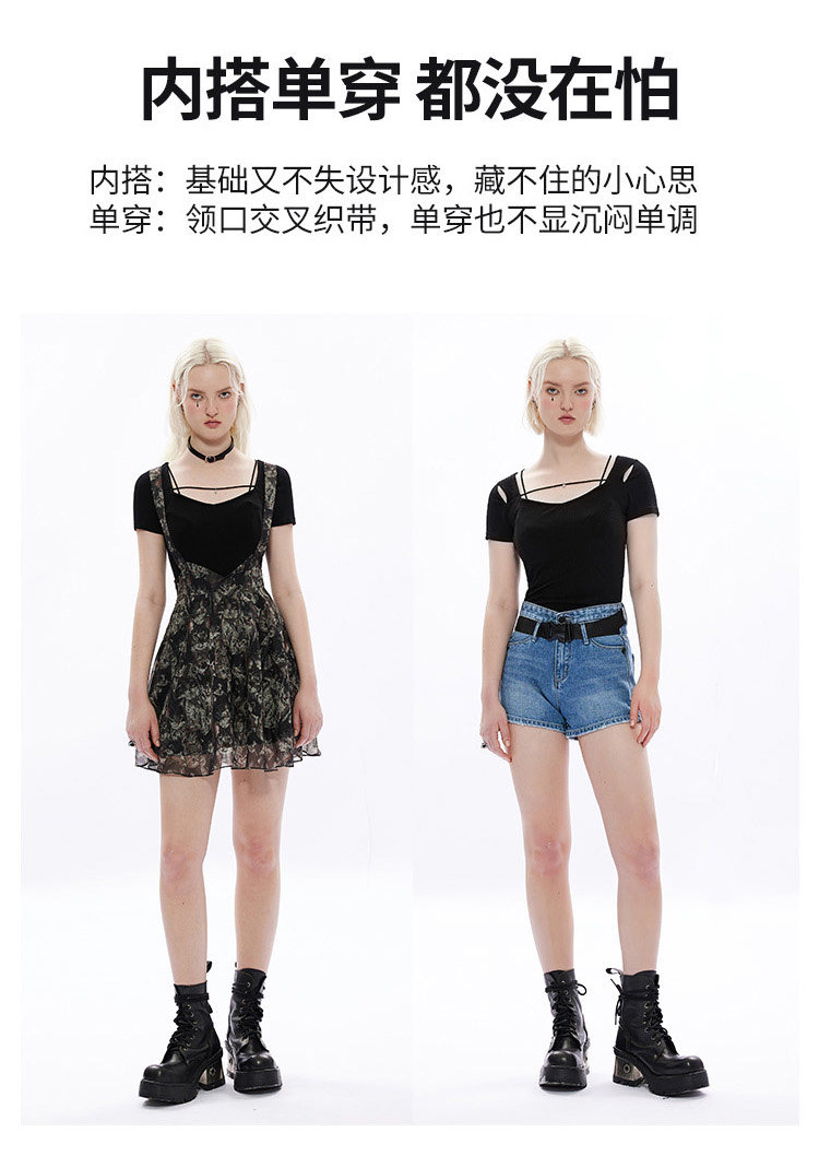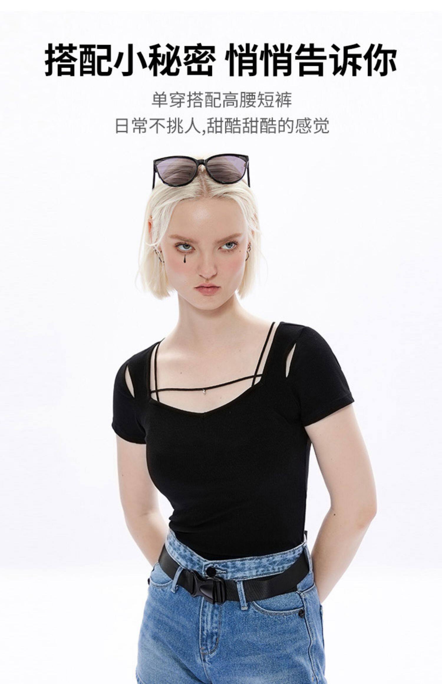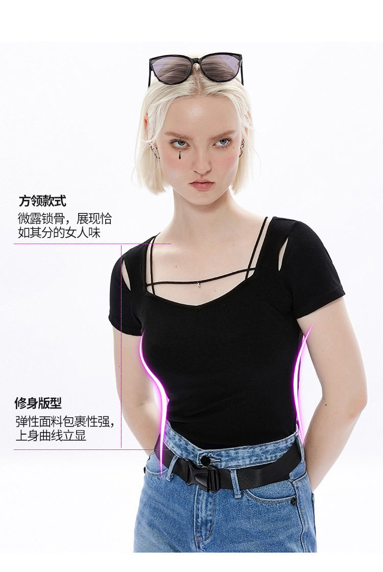 Черная базовая приятная телу футболка, в стиле панк, коллекция 2023, квадратный вырез, в обтяжку