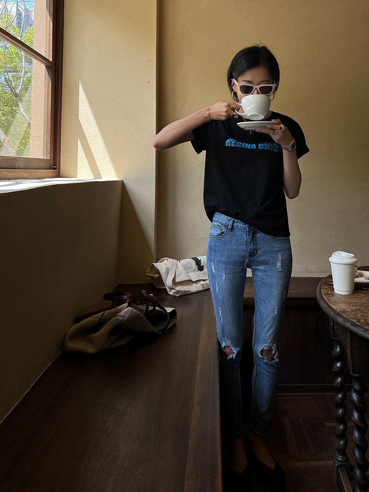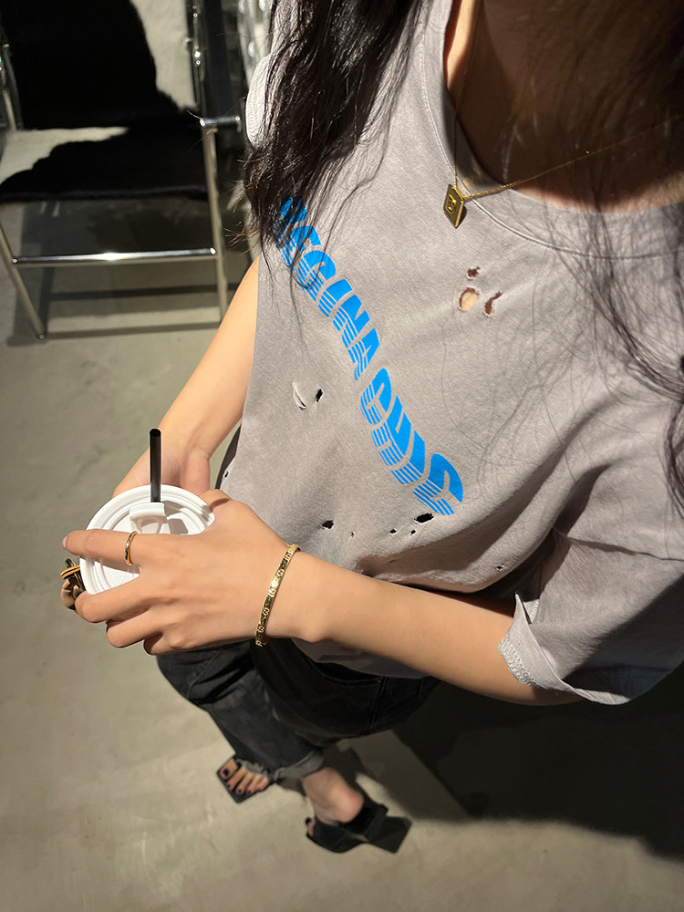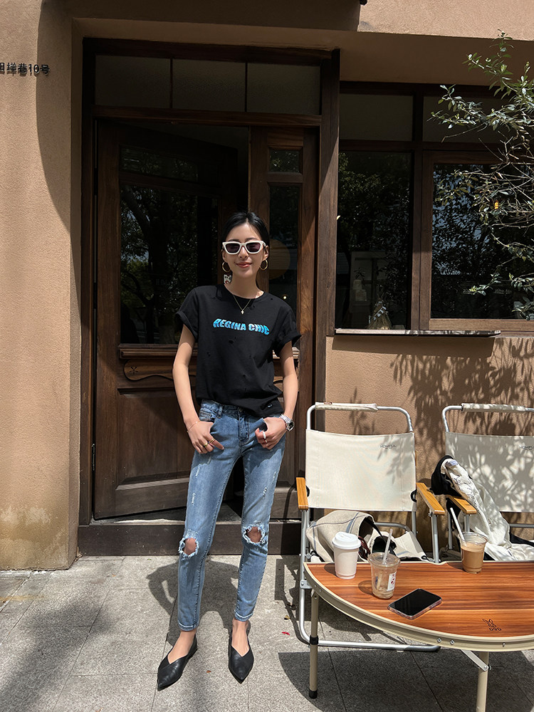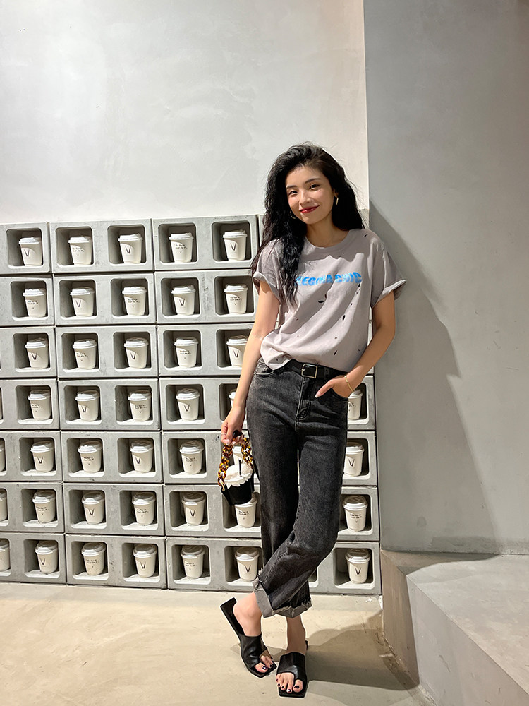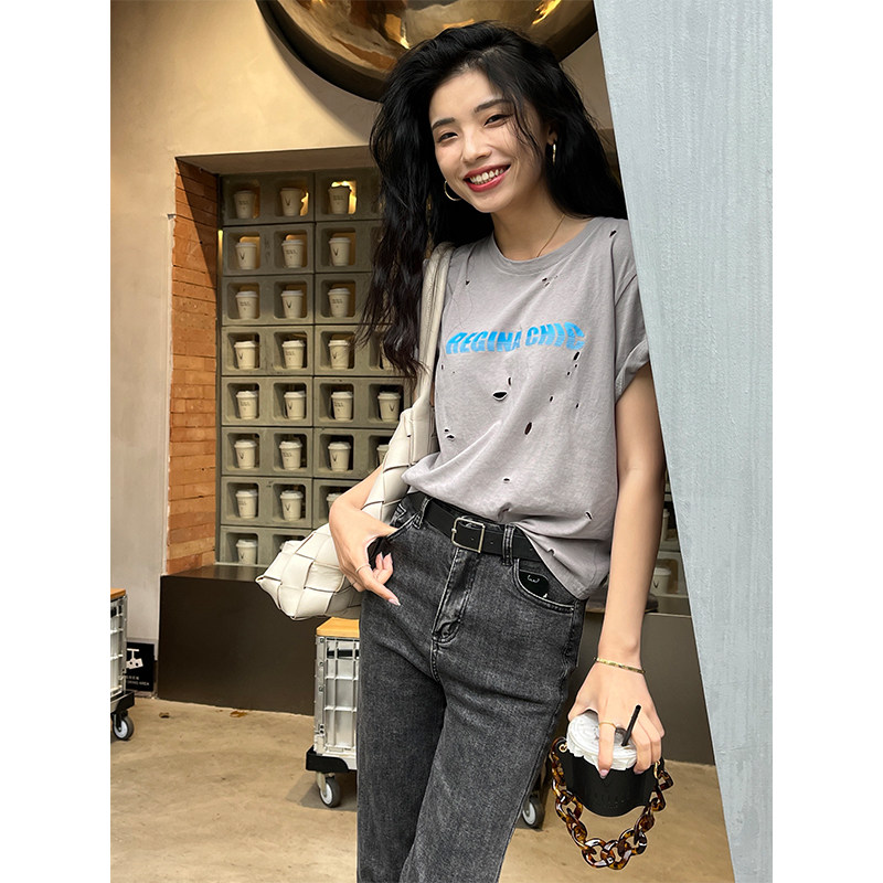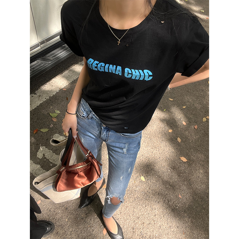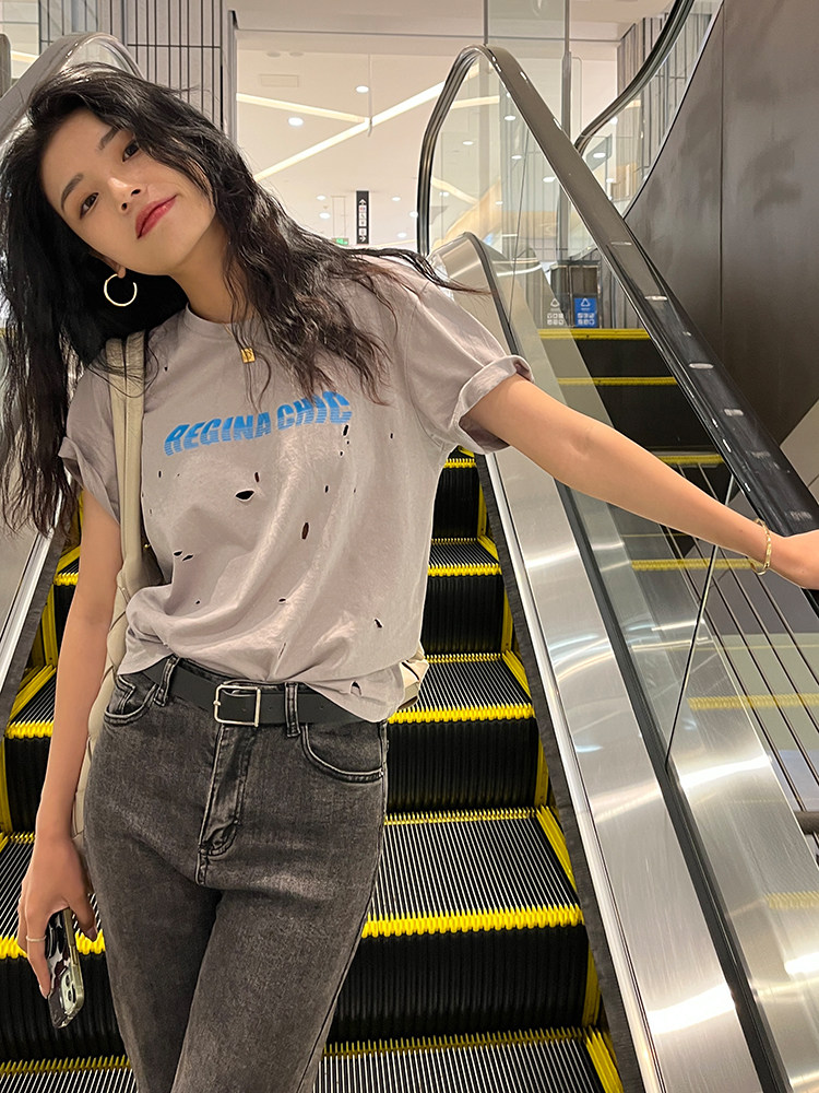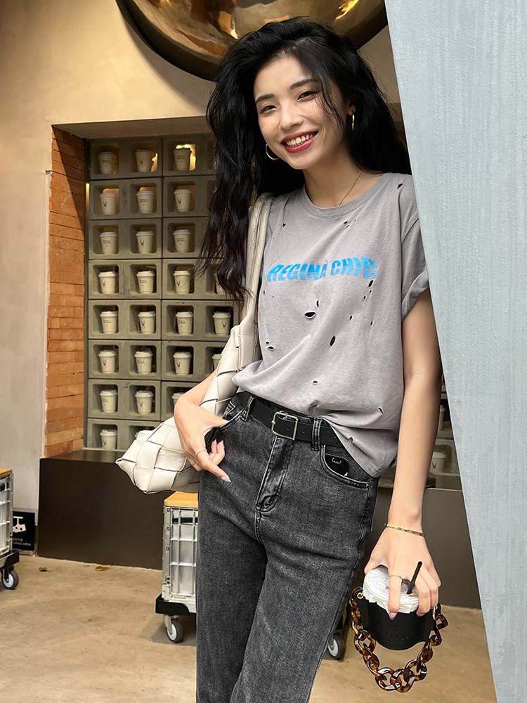 Футболка, дизайнерская летняя одежда с круглым воротником, коллекция 2022, оверсайз, тренд сезона