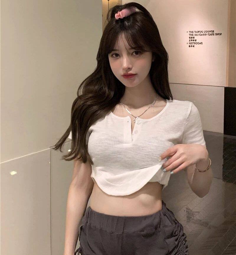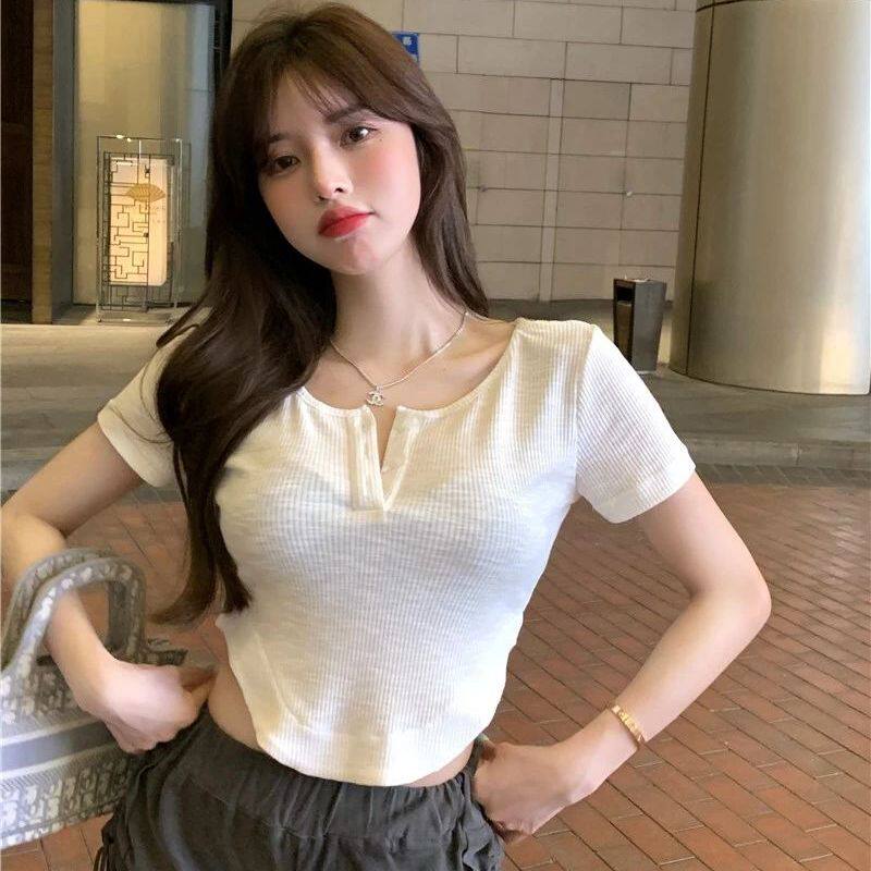 Летняя ретро короткая футболка с коротким рукавом, в корейском стиле, по фигуре, в западном стиле, подходит для подростков