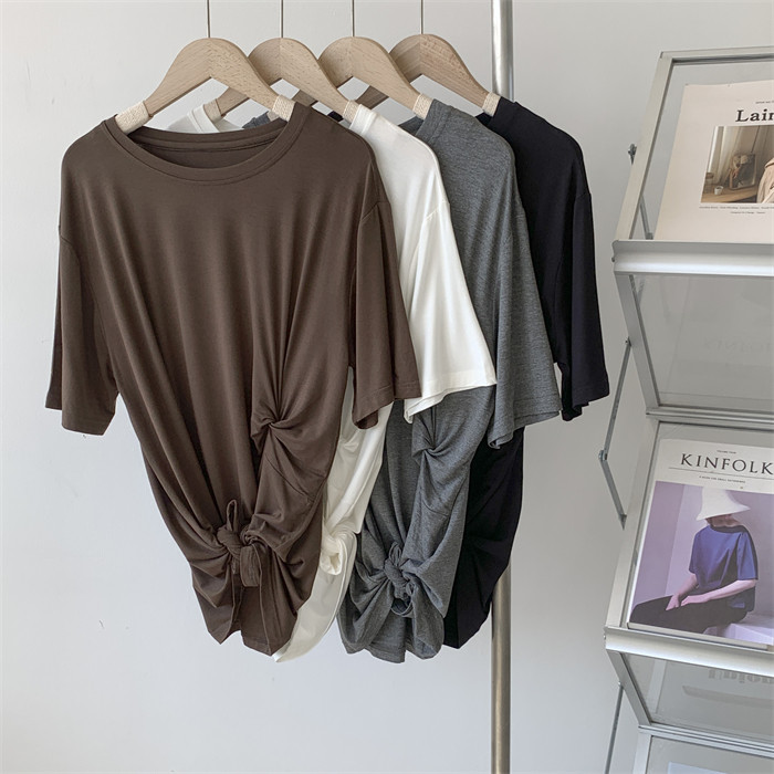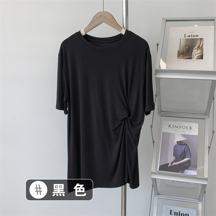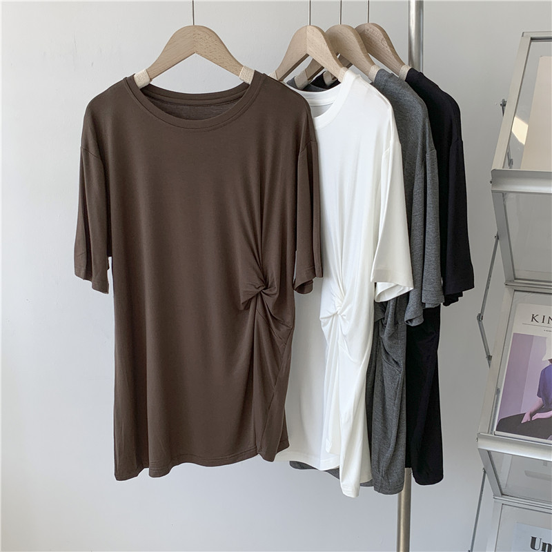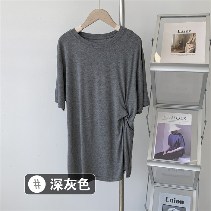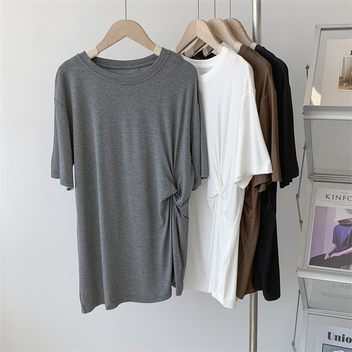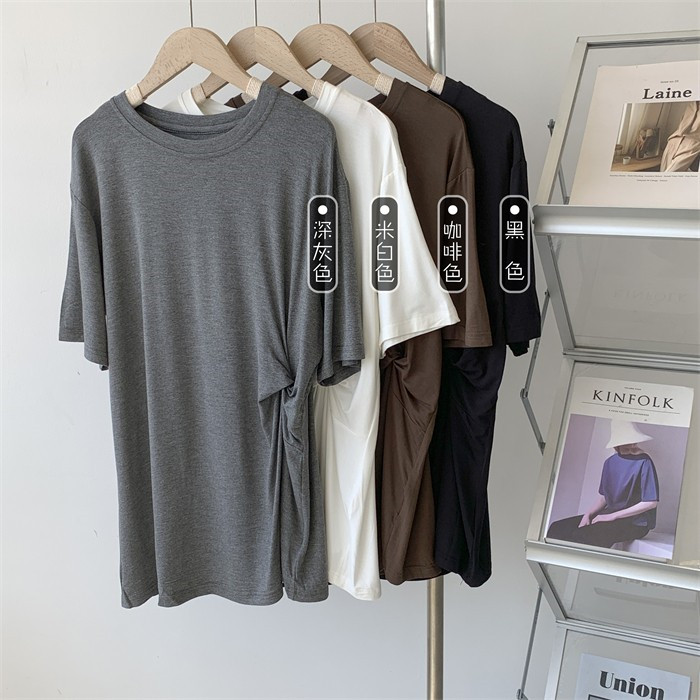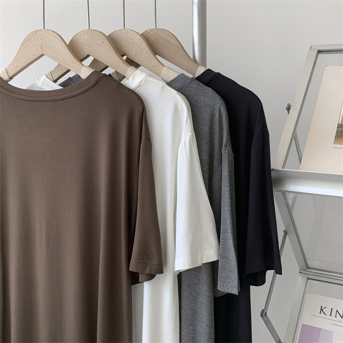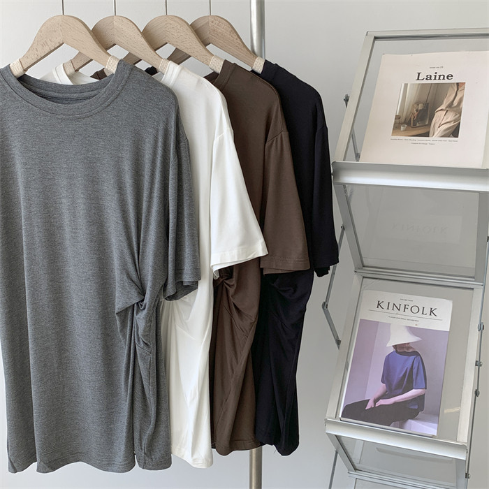 Дизайнерская тонкая летняя цветная длинная футболка с коротким рукавом, тренд сезона, в корейском стиле