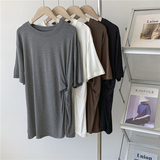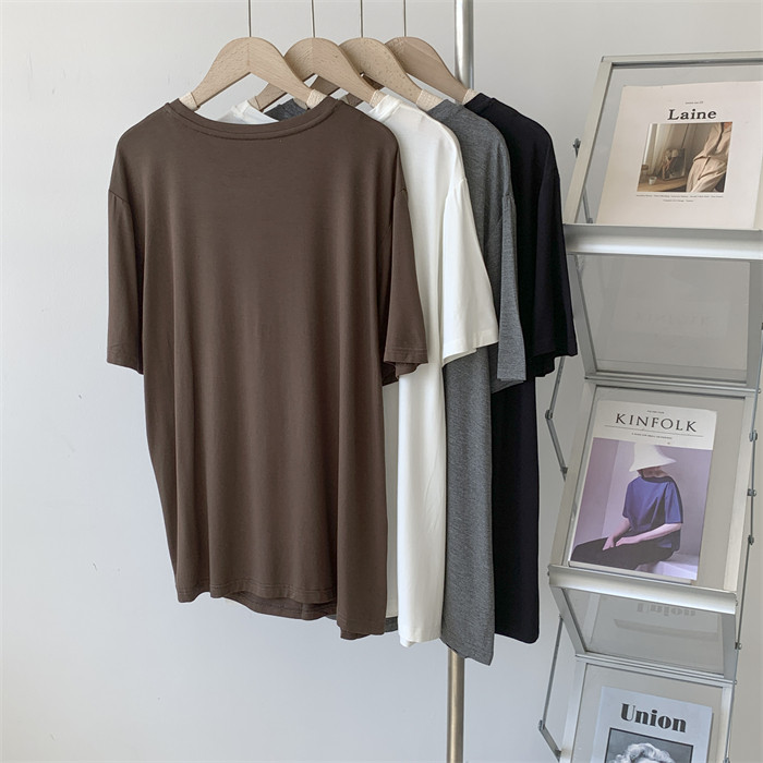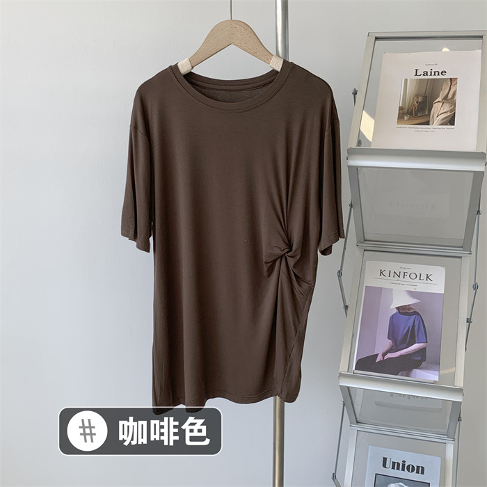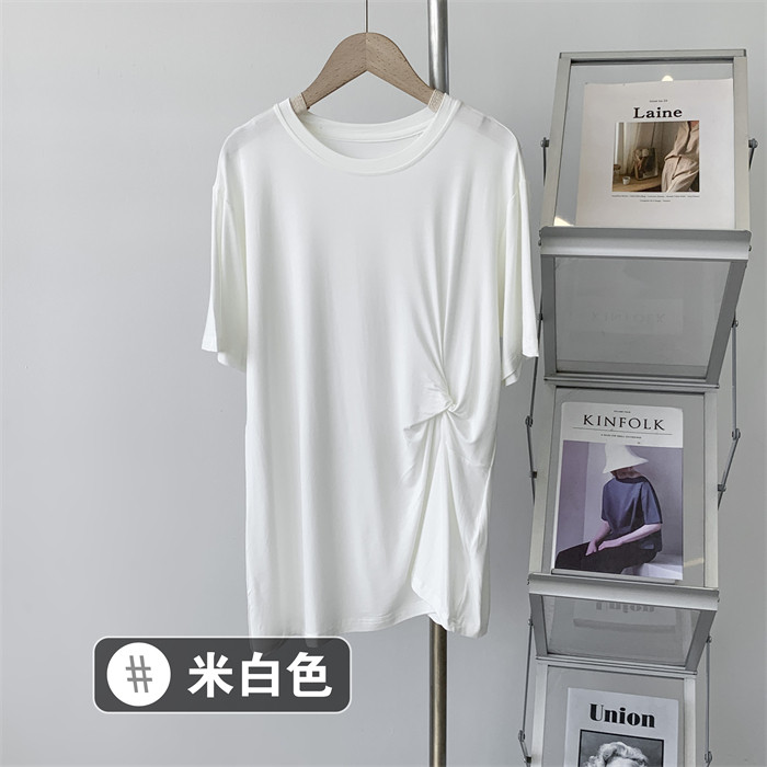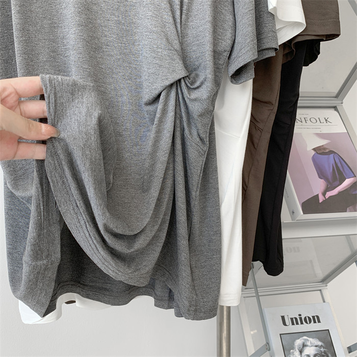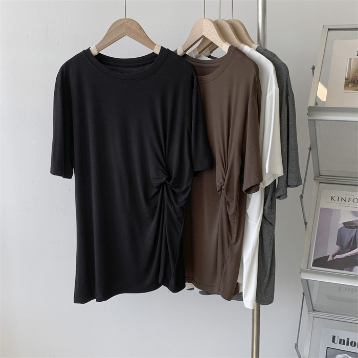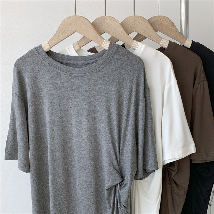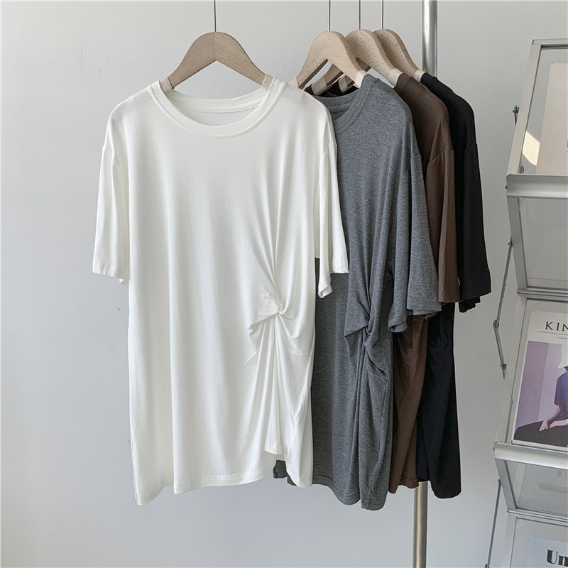 Дизайнерская тонкая летняя цветная длинная футболка с коротким рукавом, тренд сезона, в корейском стиле